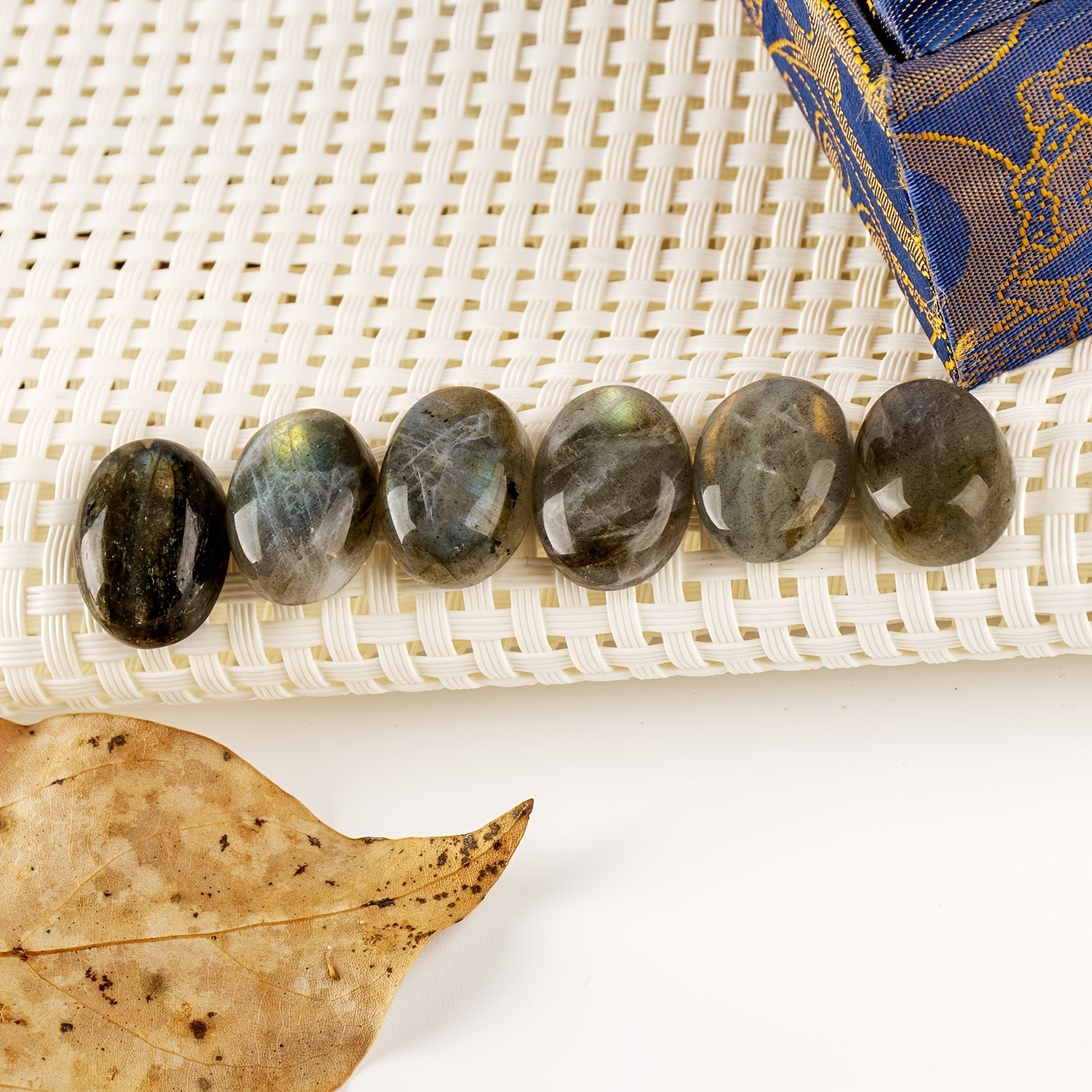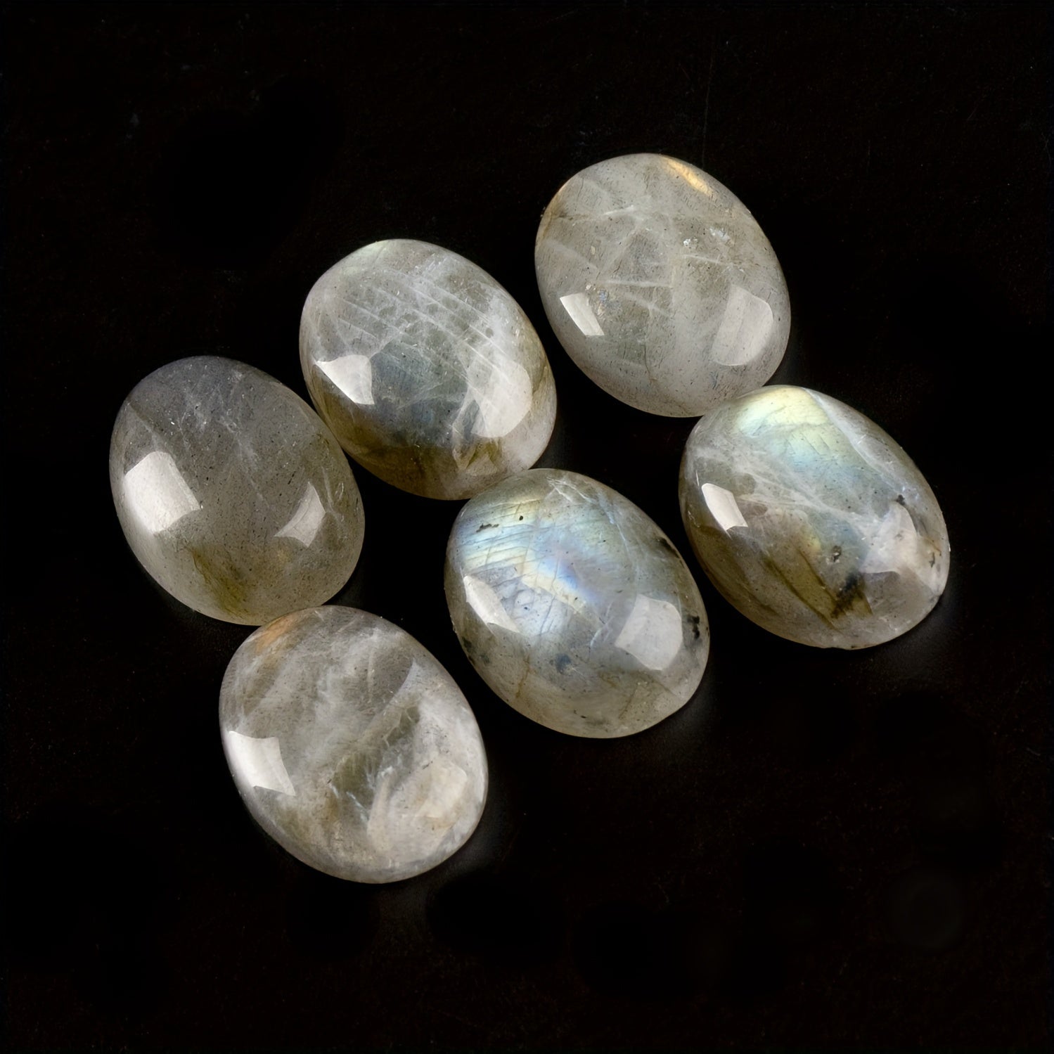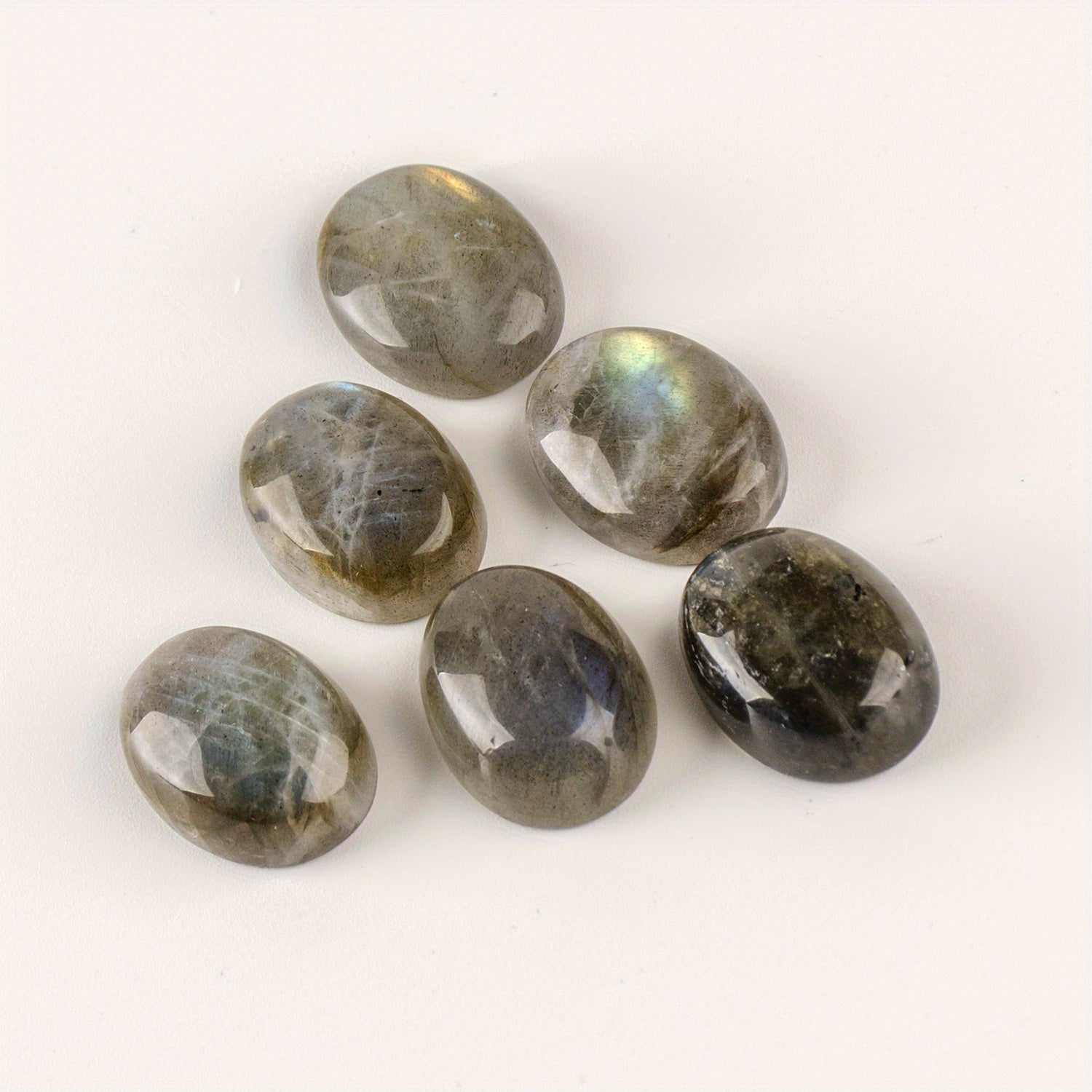 Experience the calming energy of natural Labradorite with this 6-piece set of oval pocket palm stones. Perfect for men and women, these irregular polished worry stones are ideal for meditation, relaxation, and energy healing.
