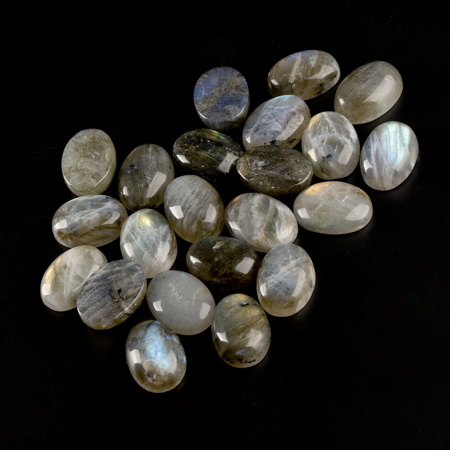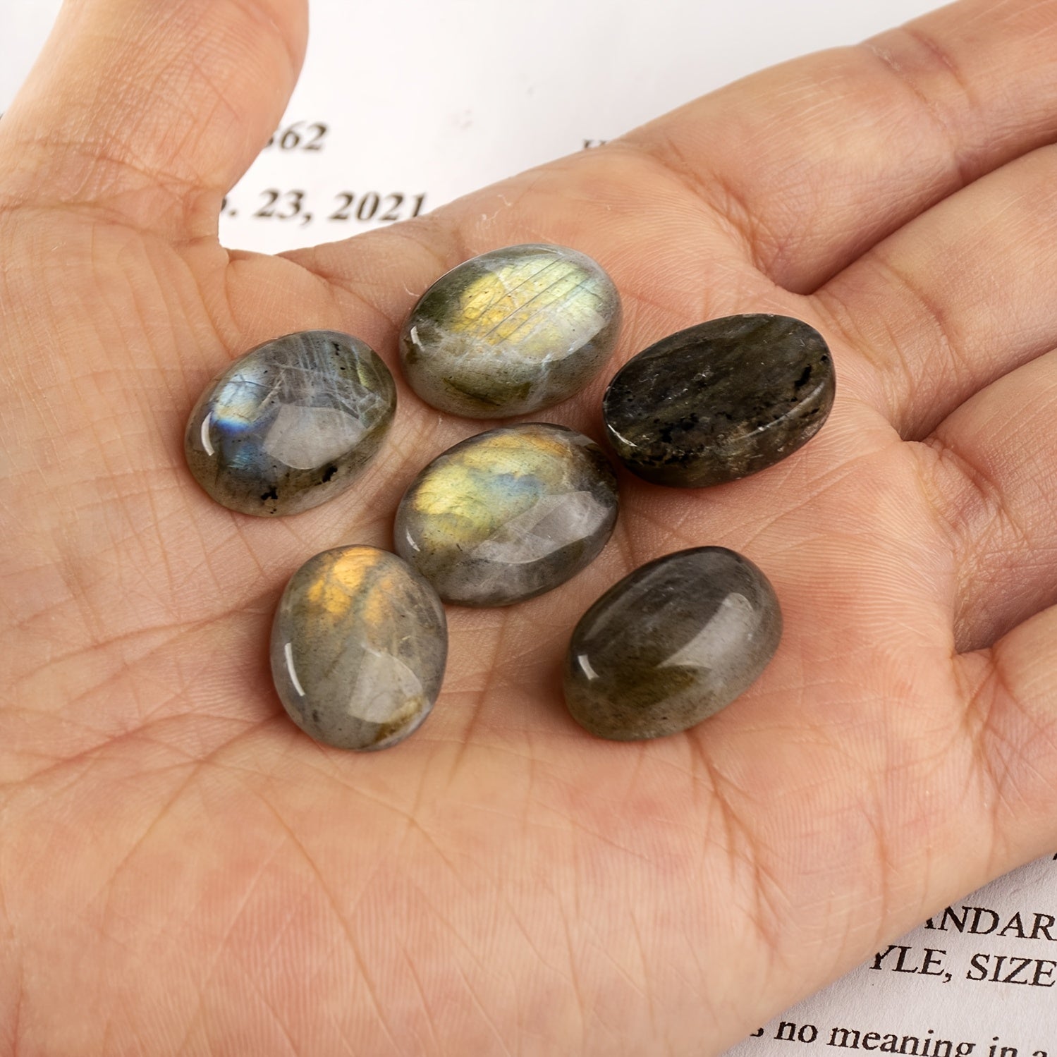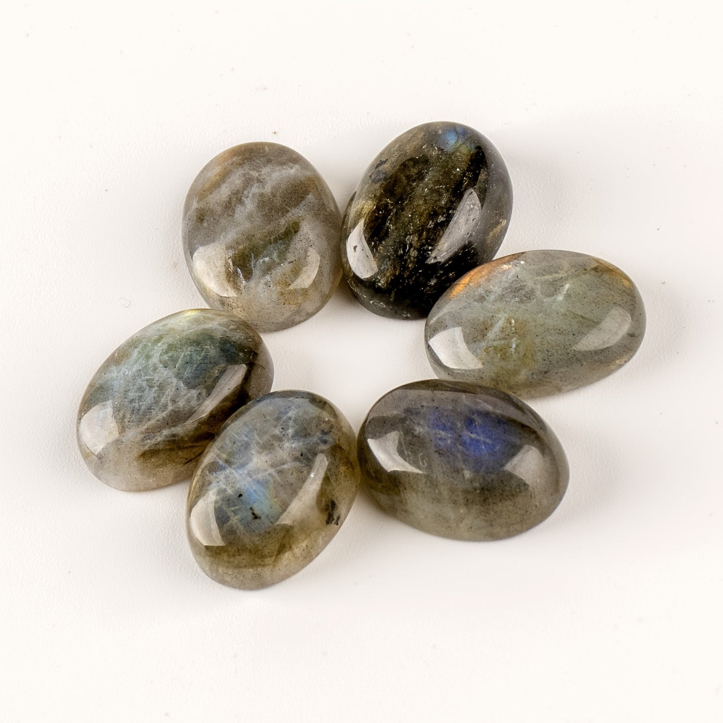 Experience the calming energy of natural Labradorite with this 6-piece set of oval pocket palm stones. Perfect for men and women, these irregular polished worry stones are ideal for meditation, relaxation, and energy healing.