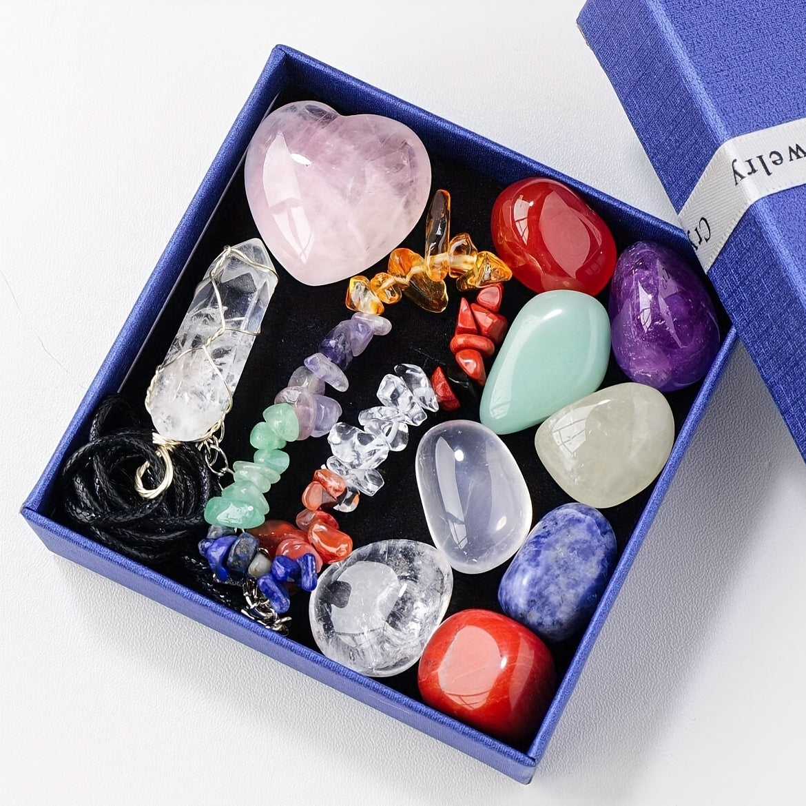 7 Chakras Crystal Quartz Pendant in Natural Crystal Box