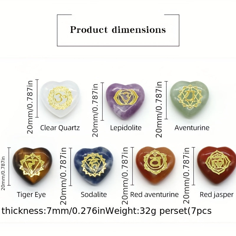 Embrace the power of 7 chakras with this heart-shaped healing crystal set. Crafted with nature's gems, it radiates positive energy and features an OM symbol for yoga practitioners.