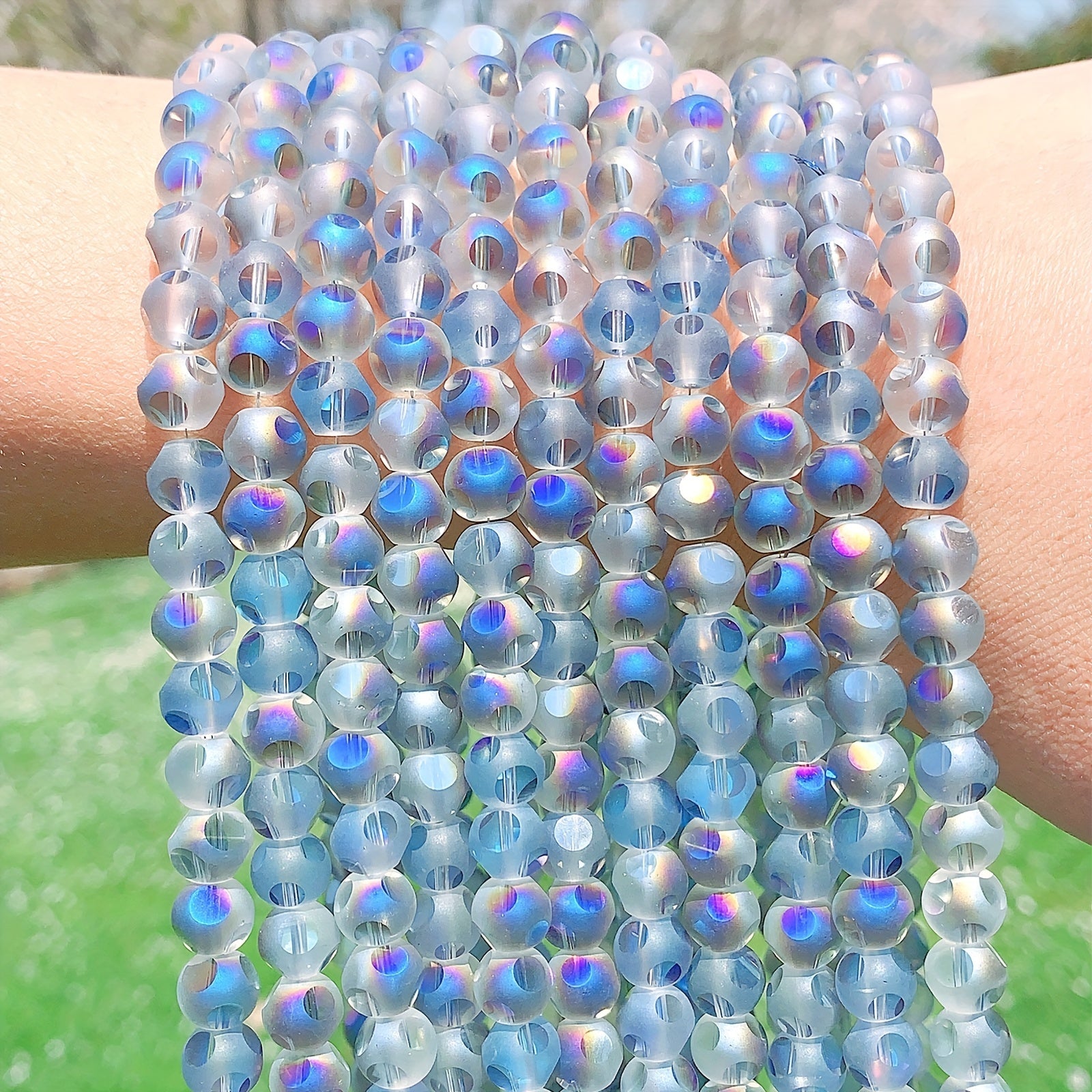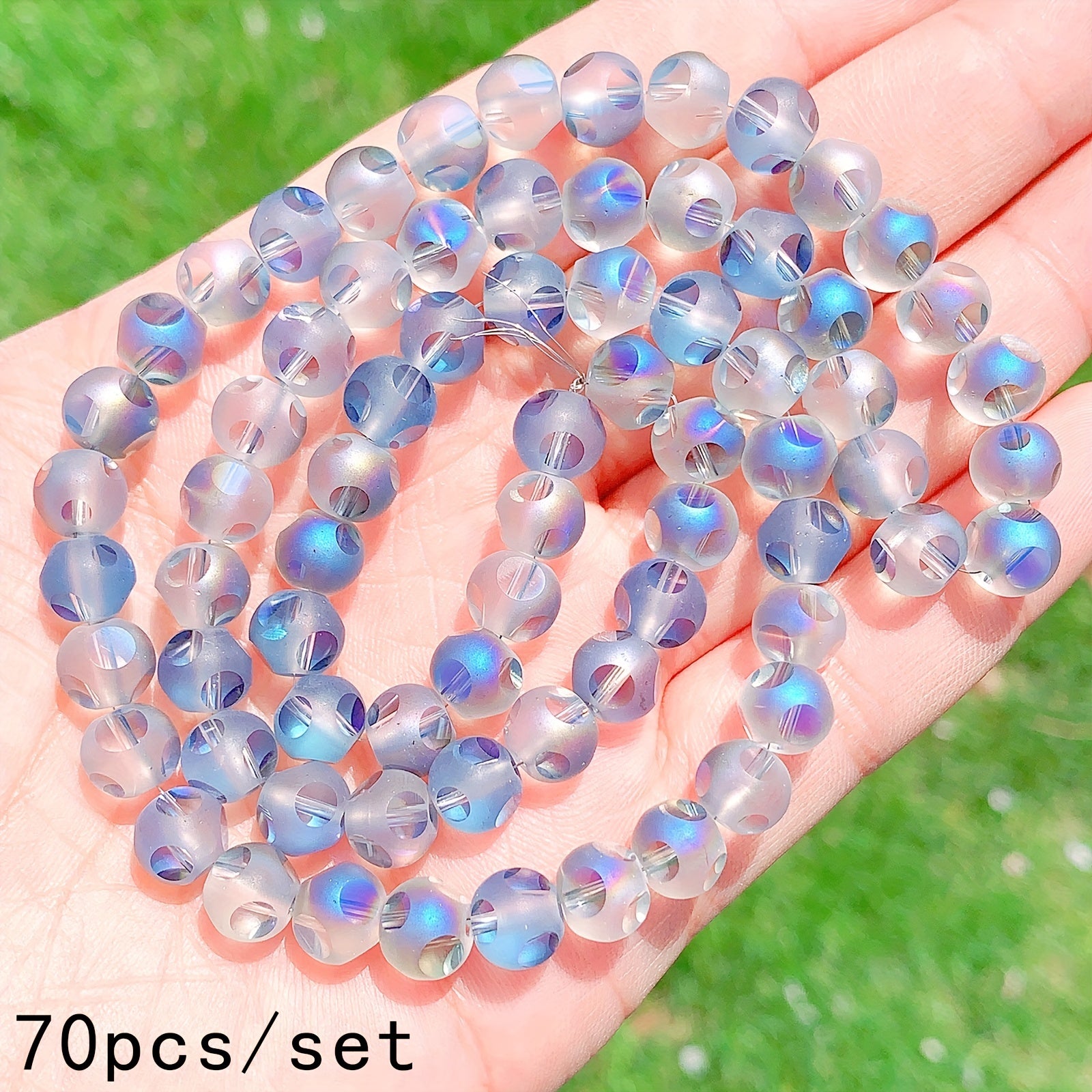 This set includes 70pcs of round faceted frosted crystal beads with a plated AB finish. These glass beads make great spacer beads and are suitable for DIY bracelet and jewelry making.
