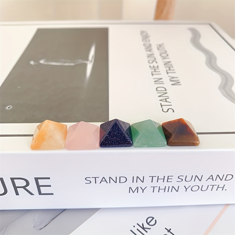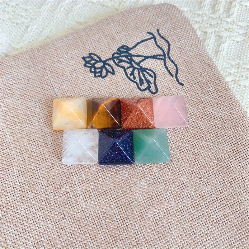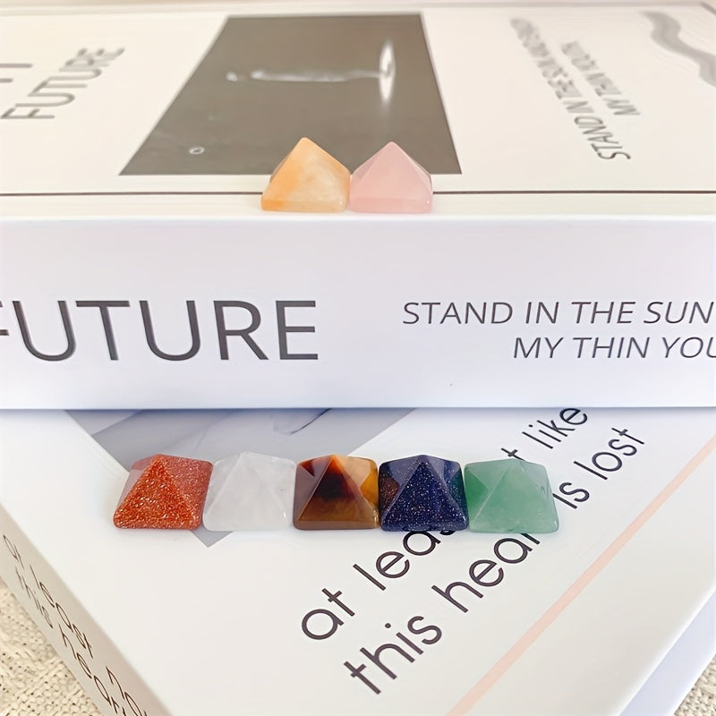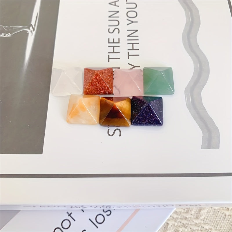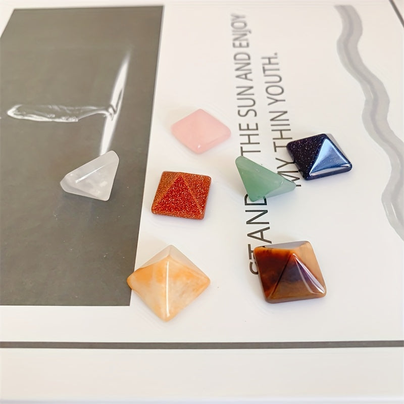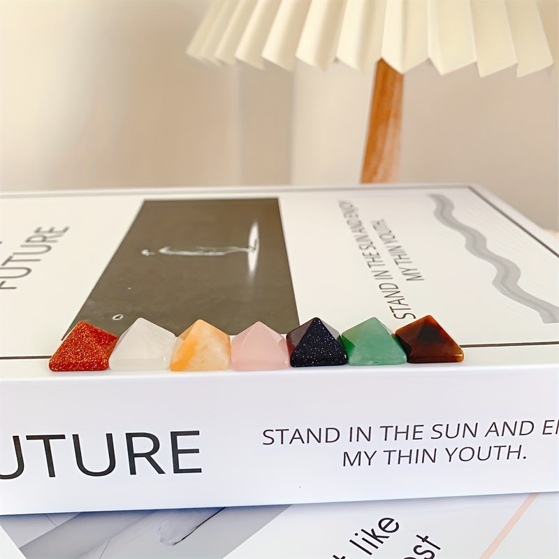 Add a touch of color and elegance to your home decor with this set of 7 colorful mini crystal pyramids. Perfect for adding a pop of style to any room.