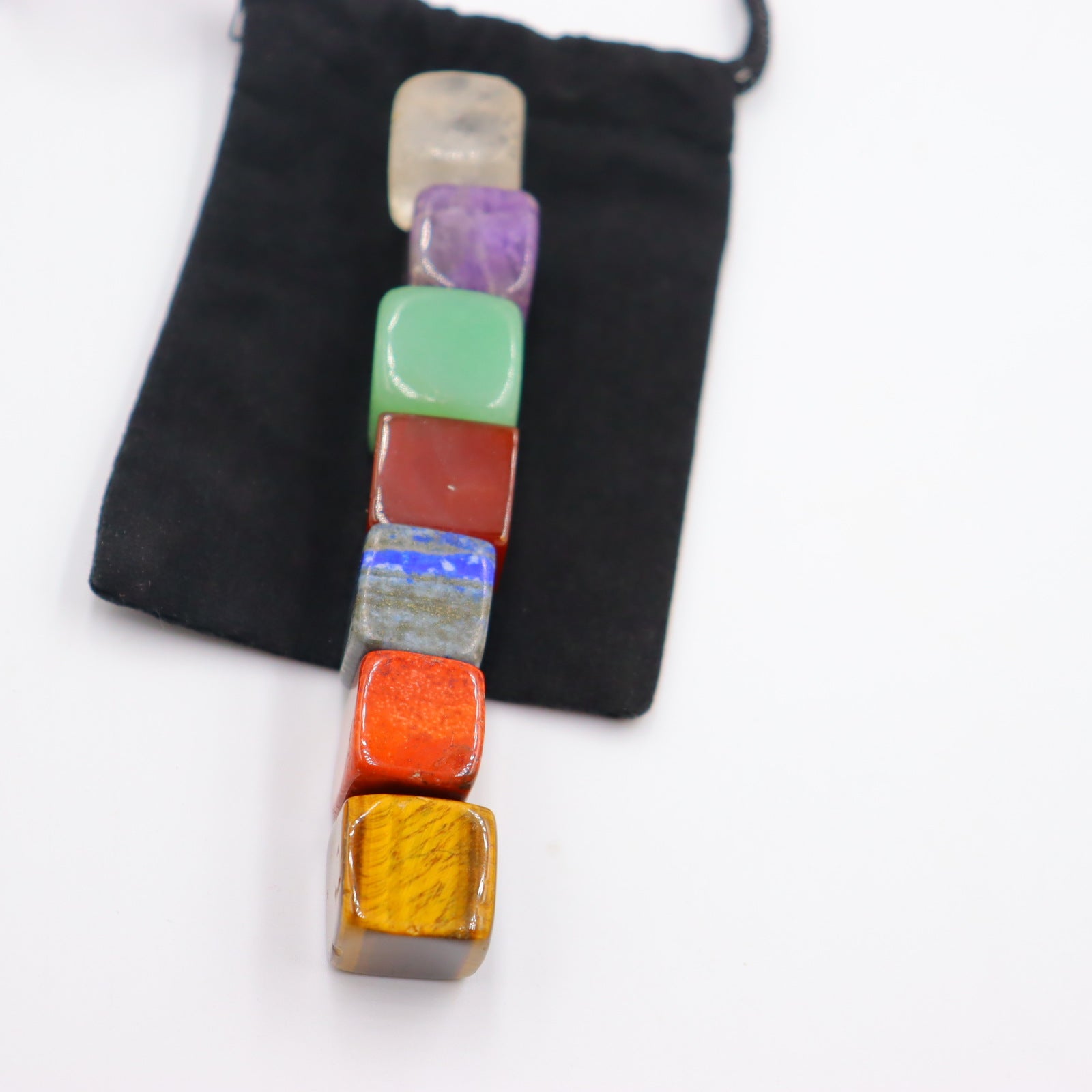 Enhance your yoga practice with this set of 7 natural crystal gemstones. Each stone represents a different chakra for healing and balance.