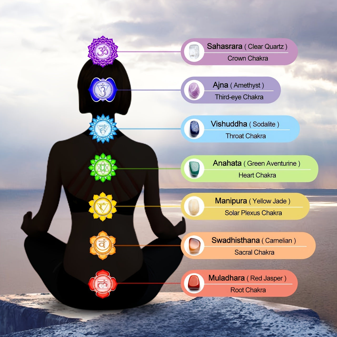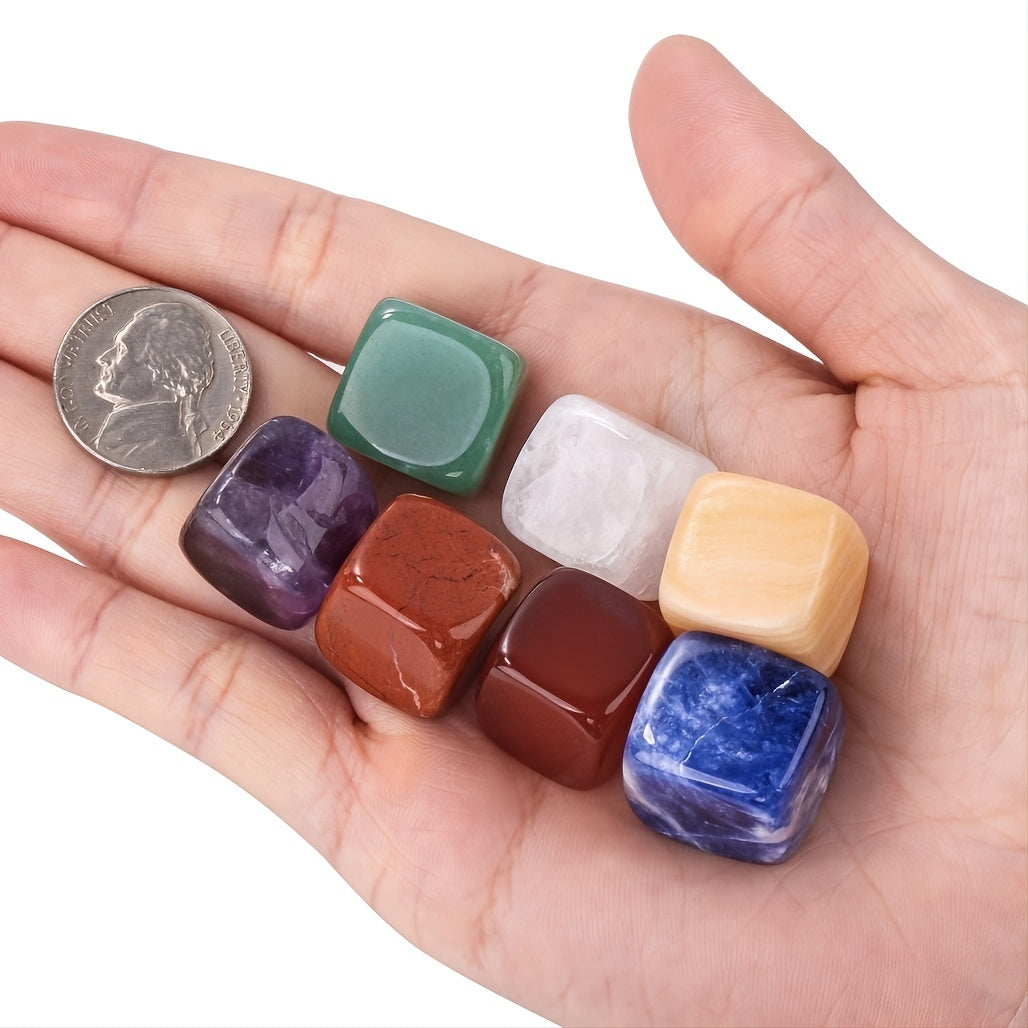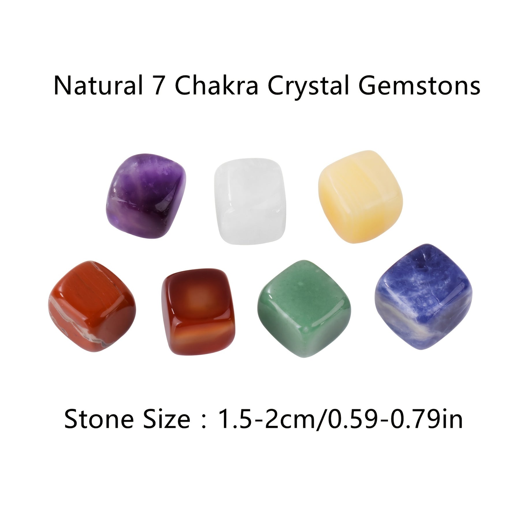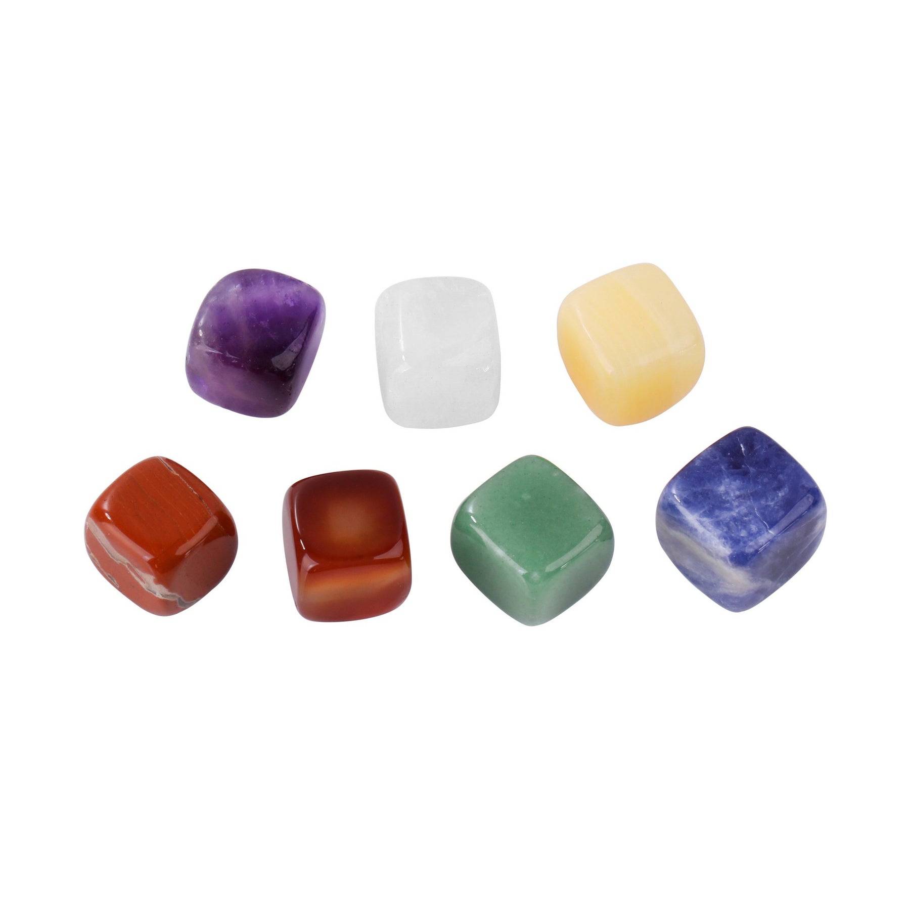 Enhance your meditation with this 7-piece set of polished chakra stones. Perfect for yoga, witchcraft, and crystal therapy.