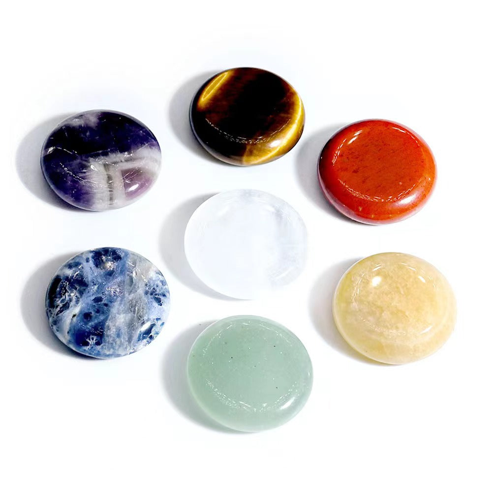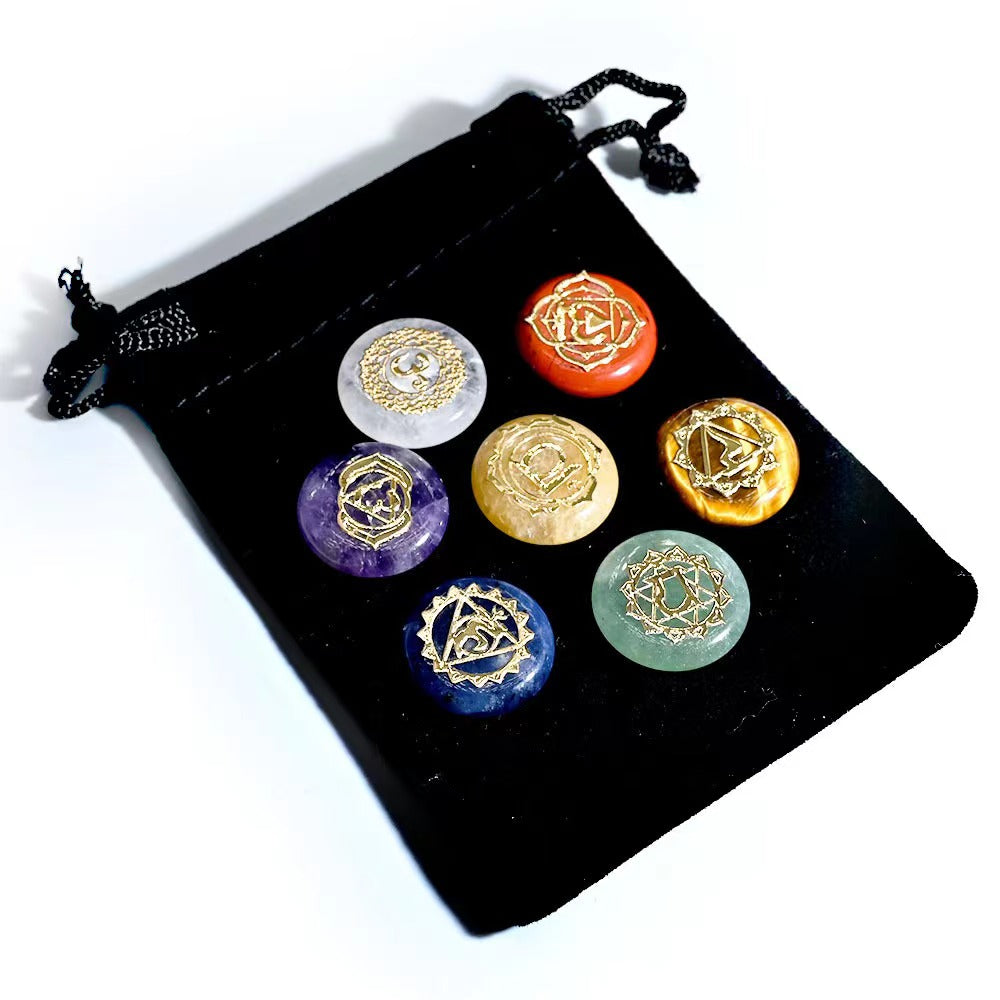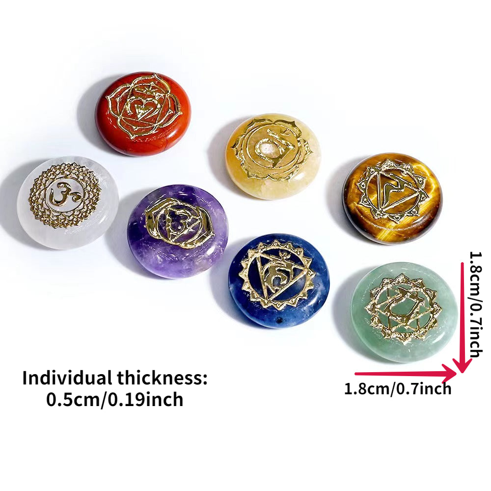 Enhance your jewelry making with this set of 7 colorful engraved runic natural crystal beads. Perfect for reiki healing and yoga.