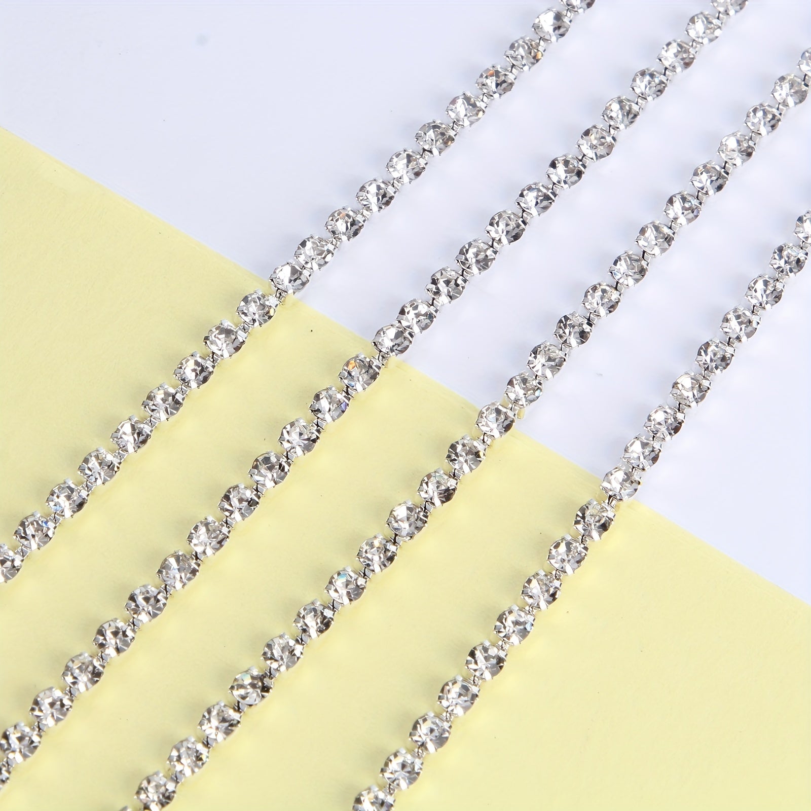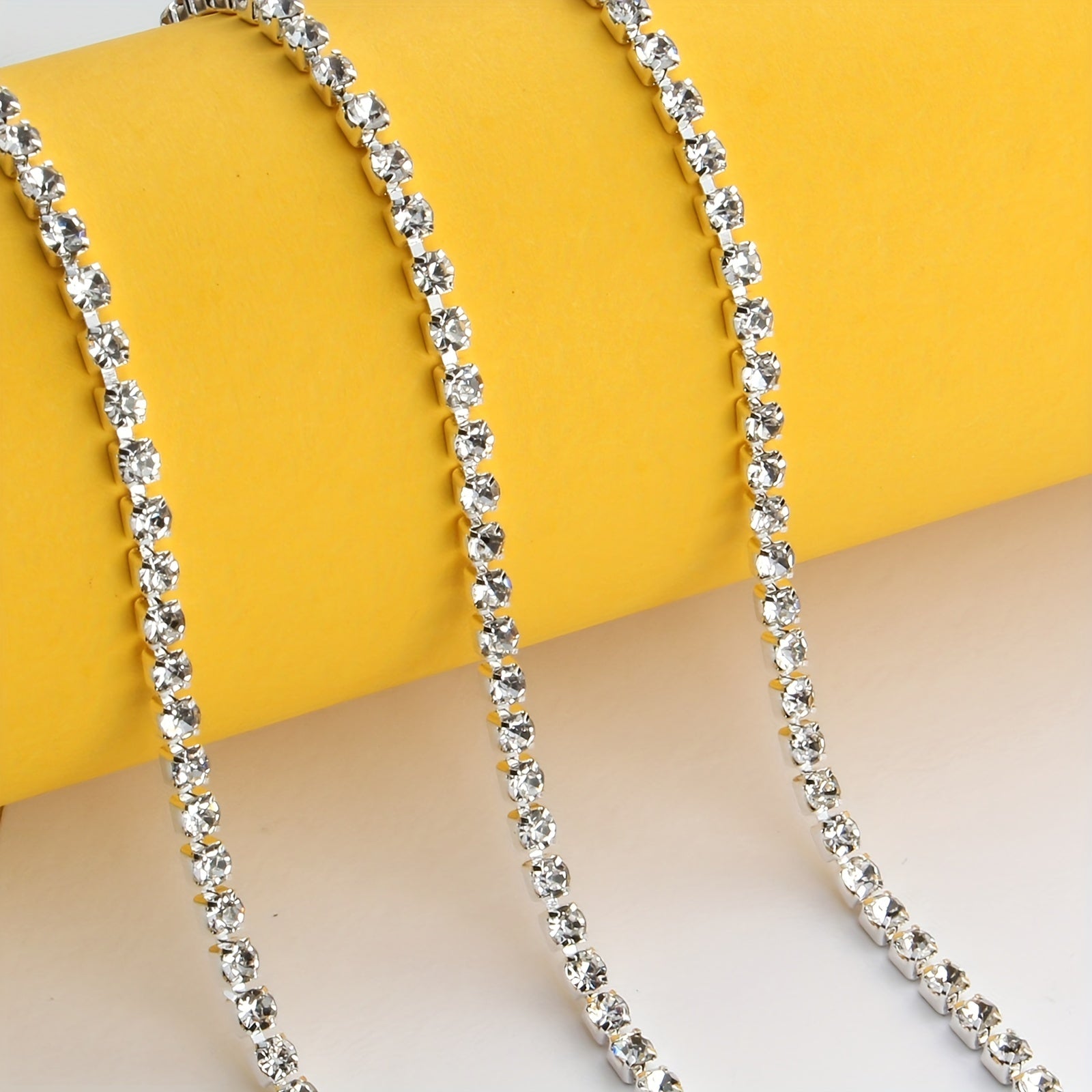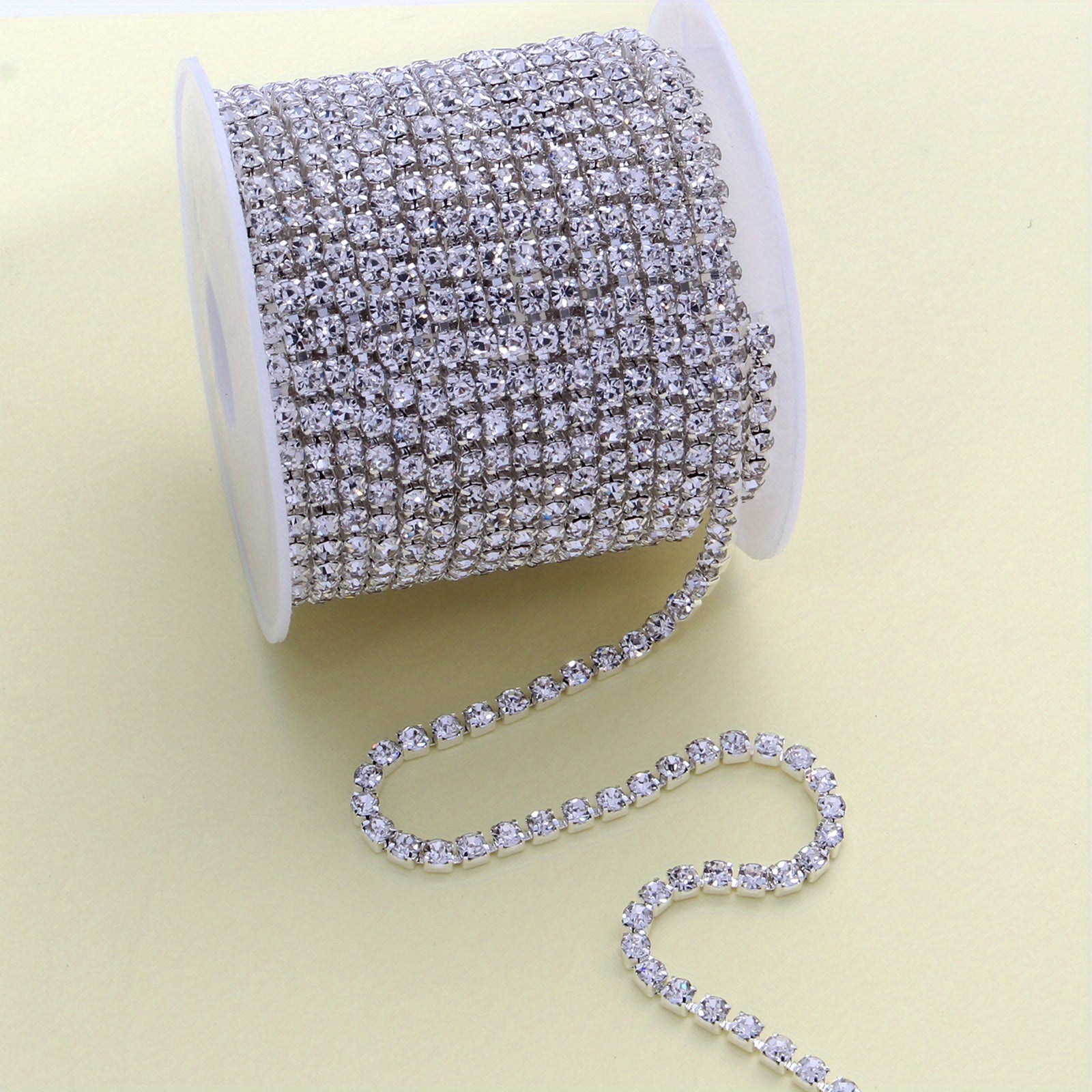 Create stunning nail, shoe, headwear, bracelet, and earring designs with this 48-inch rhinestone chain.