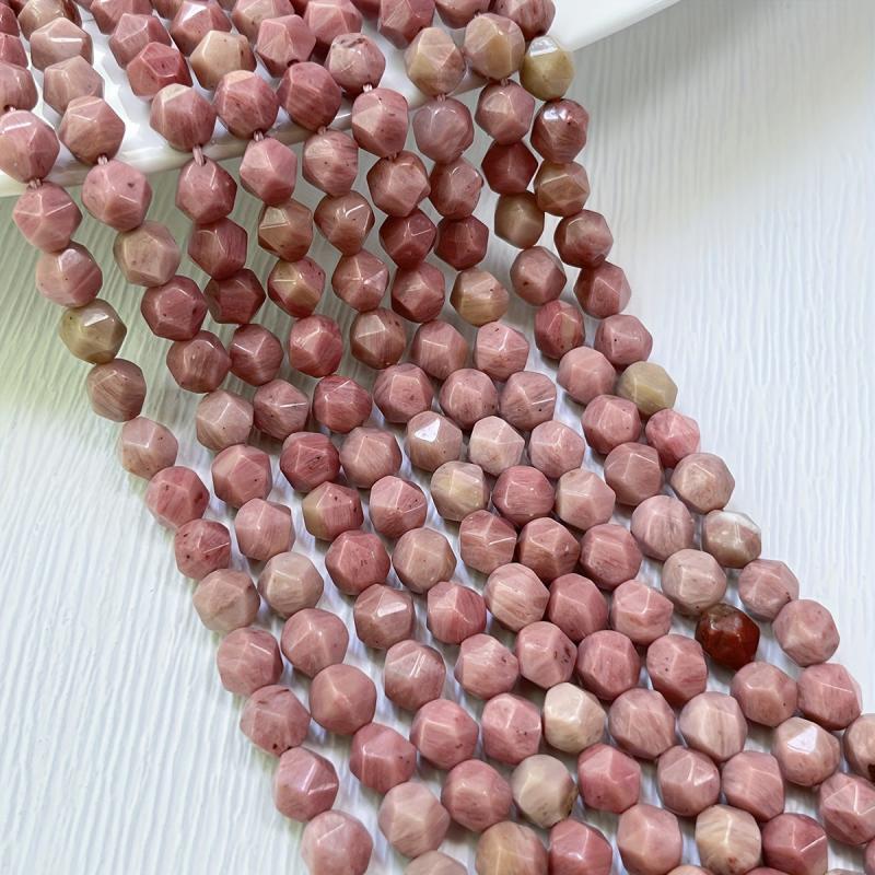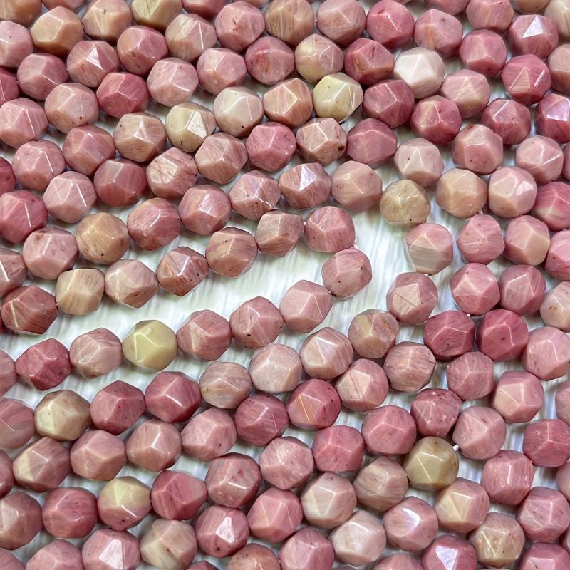 Create stunning DIY jewelry with these 8mm AAA grade rhodonite faceted beads. The beautiful natural pink color and star cut design make them perfect for bracelets, necklaces, and earrings.