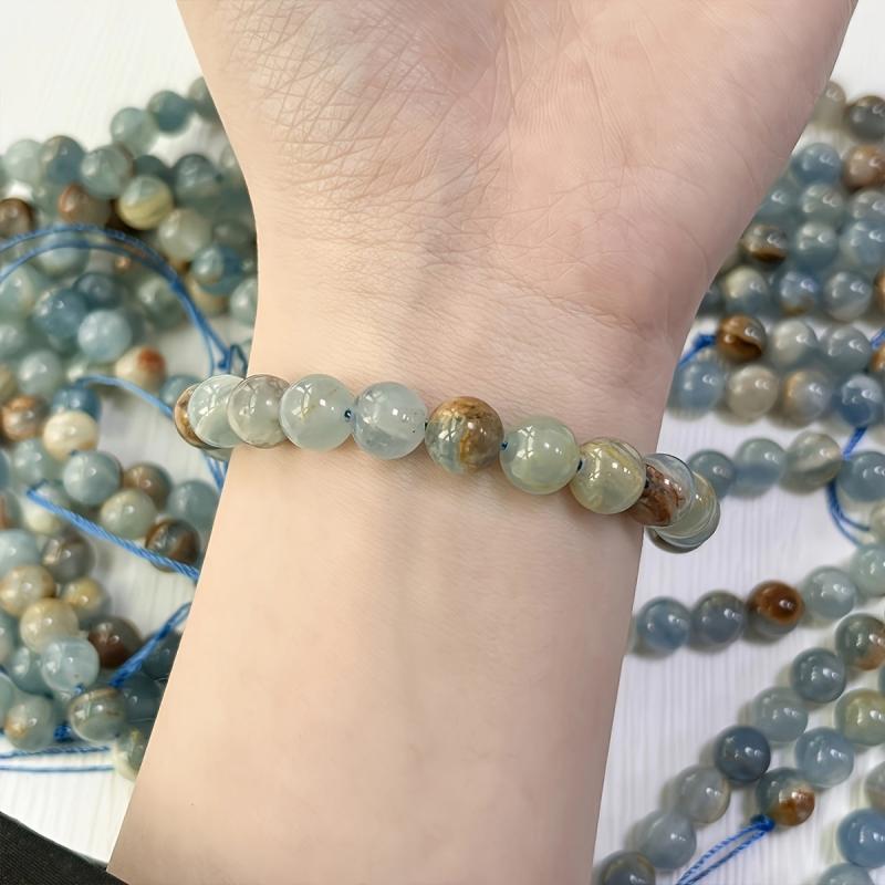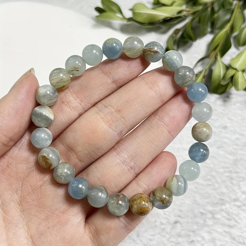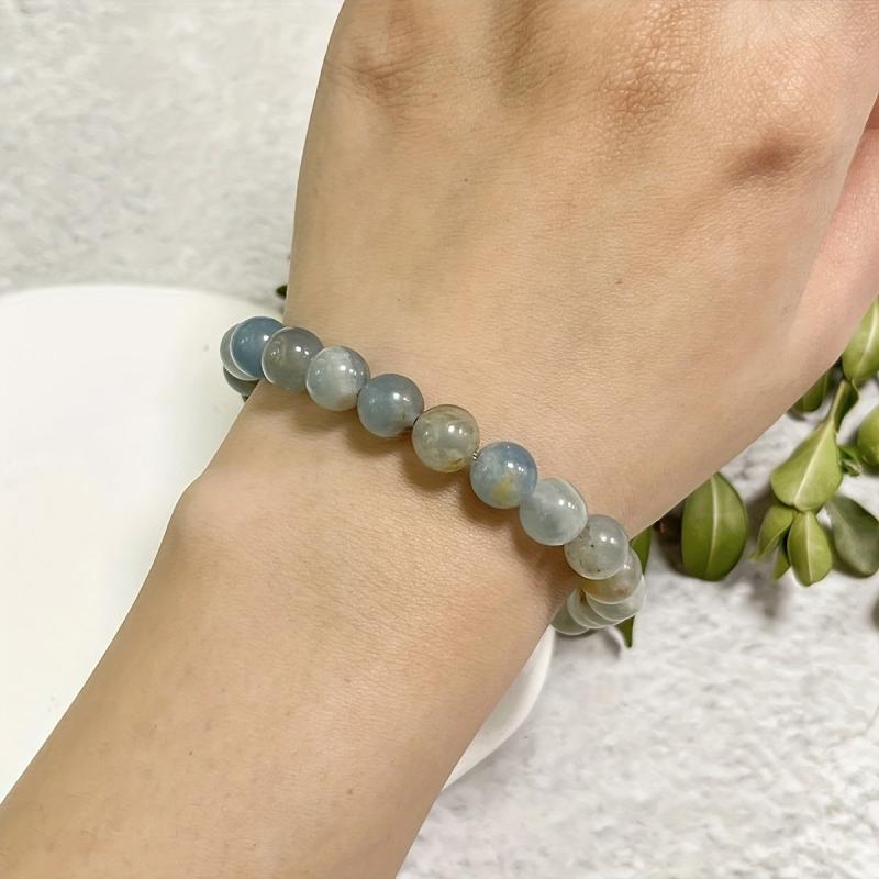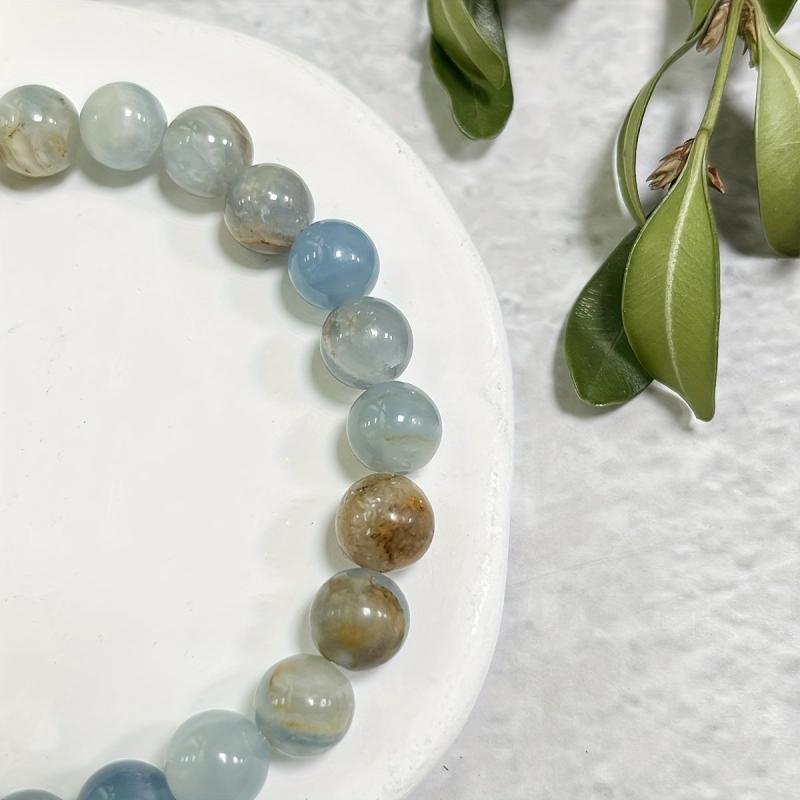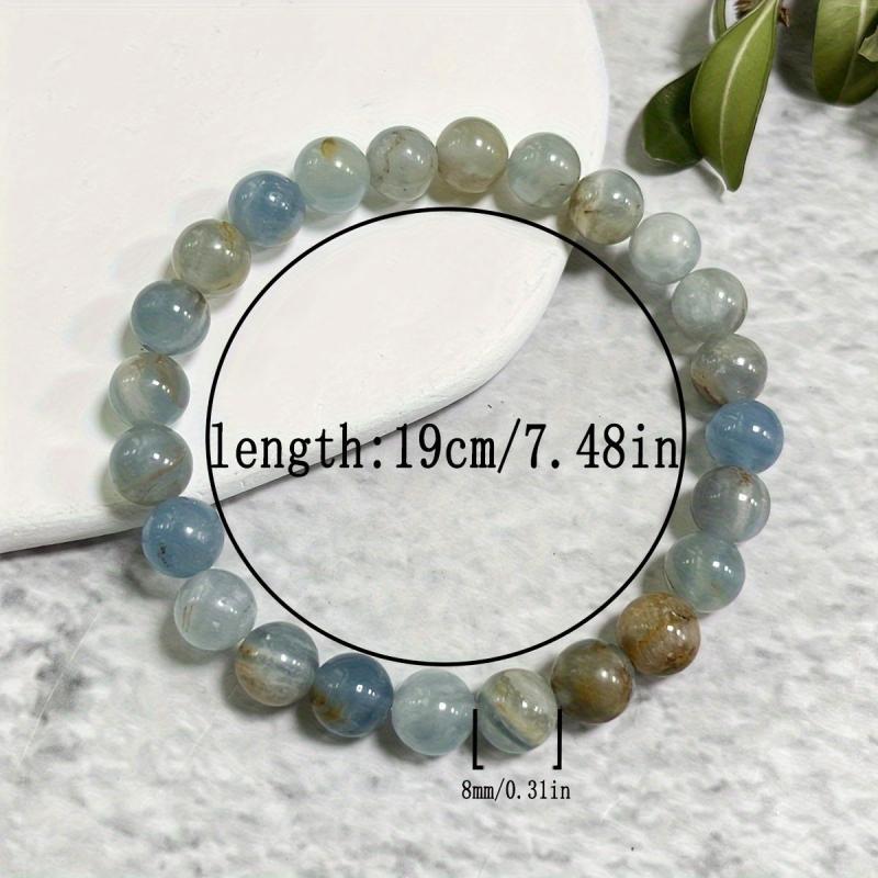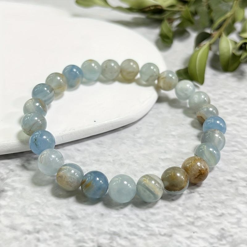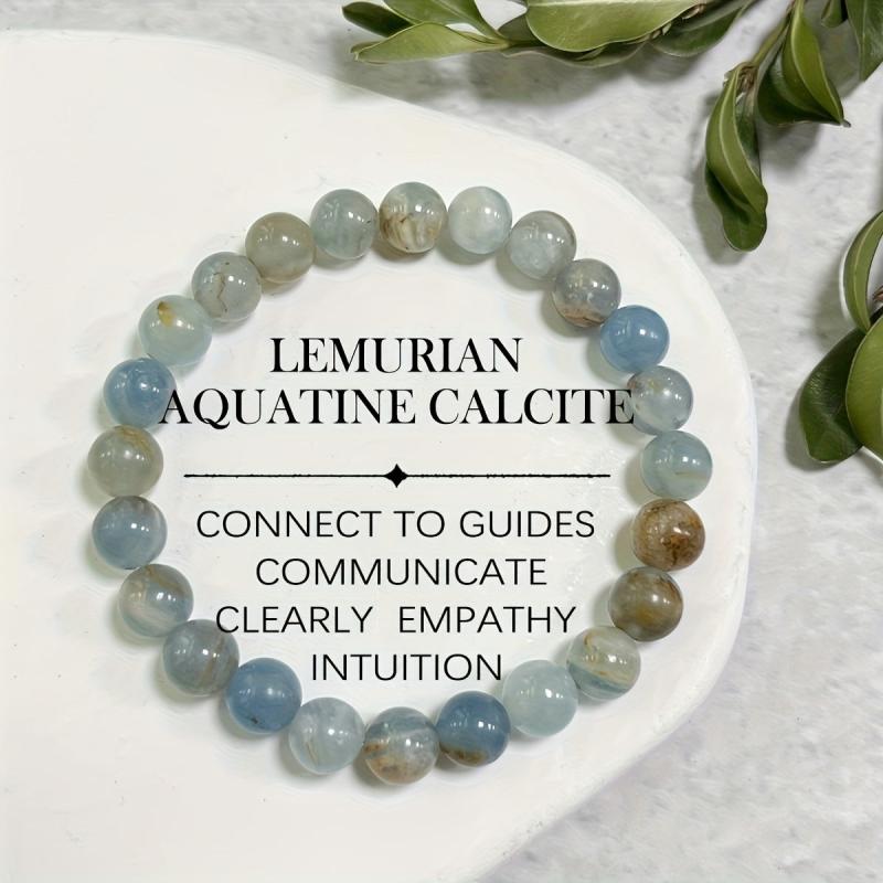 Embrace spiritual growth with this 8mm Lemurian Aquatine Calcite bracelet. It enhances inner strength and balances the top chakra. Perfect as a bohemian gift for Mother's or Father's Day.