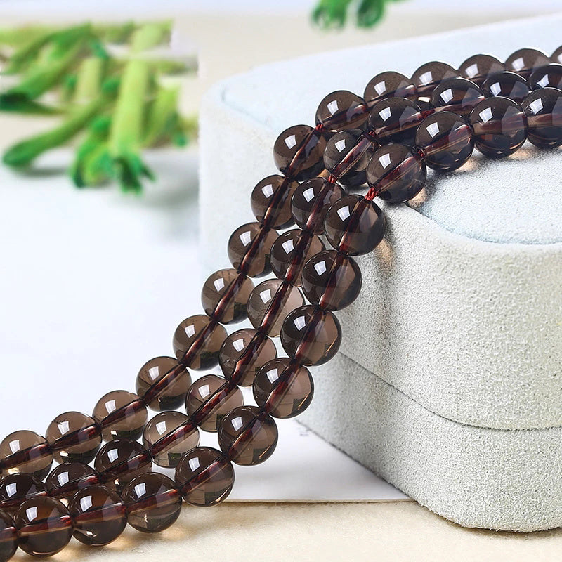 Create stunning jewelry with these 31in natural smoky quartz stone round beads. Perfect for charm bracelets, necklaces, and other accessories.
