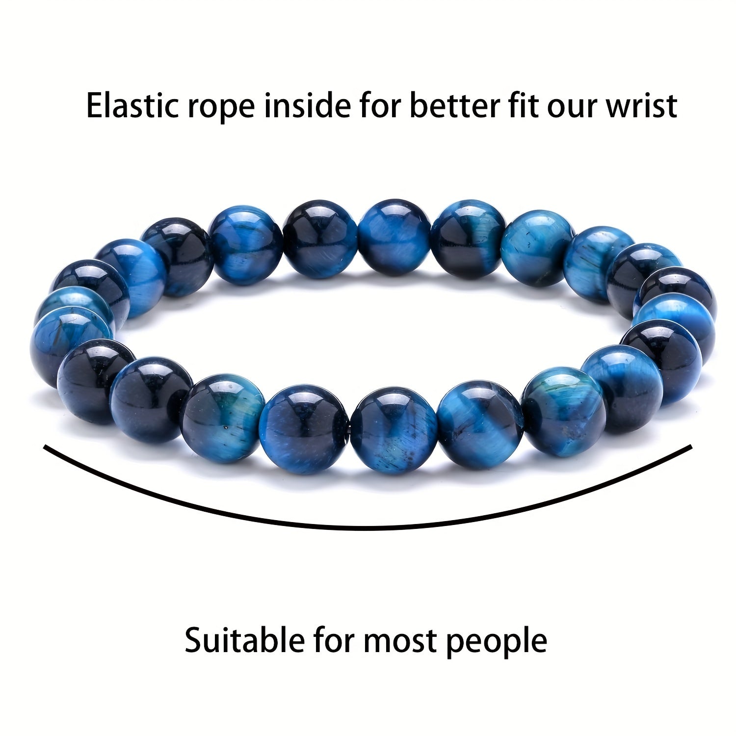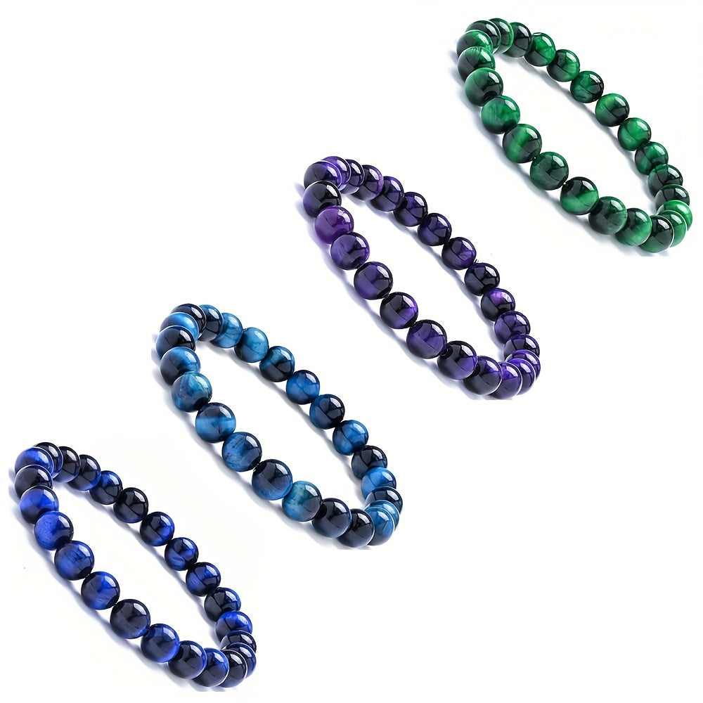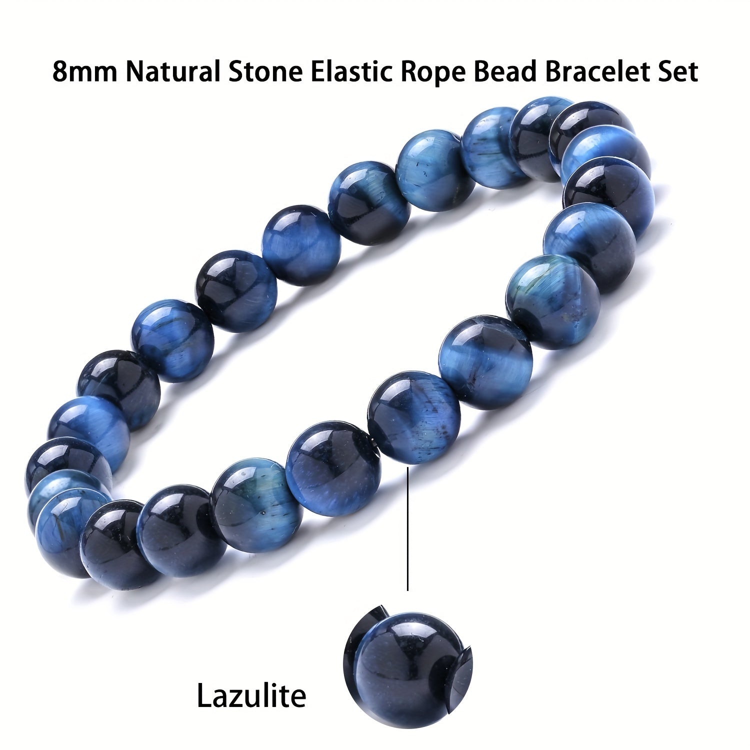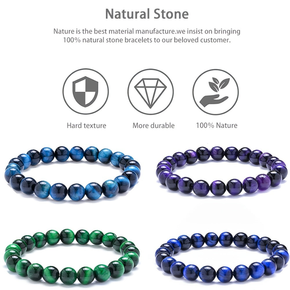 This elastic rope bracelet set features natural stones in 8mm beads. Perfect for both women and men.