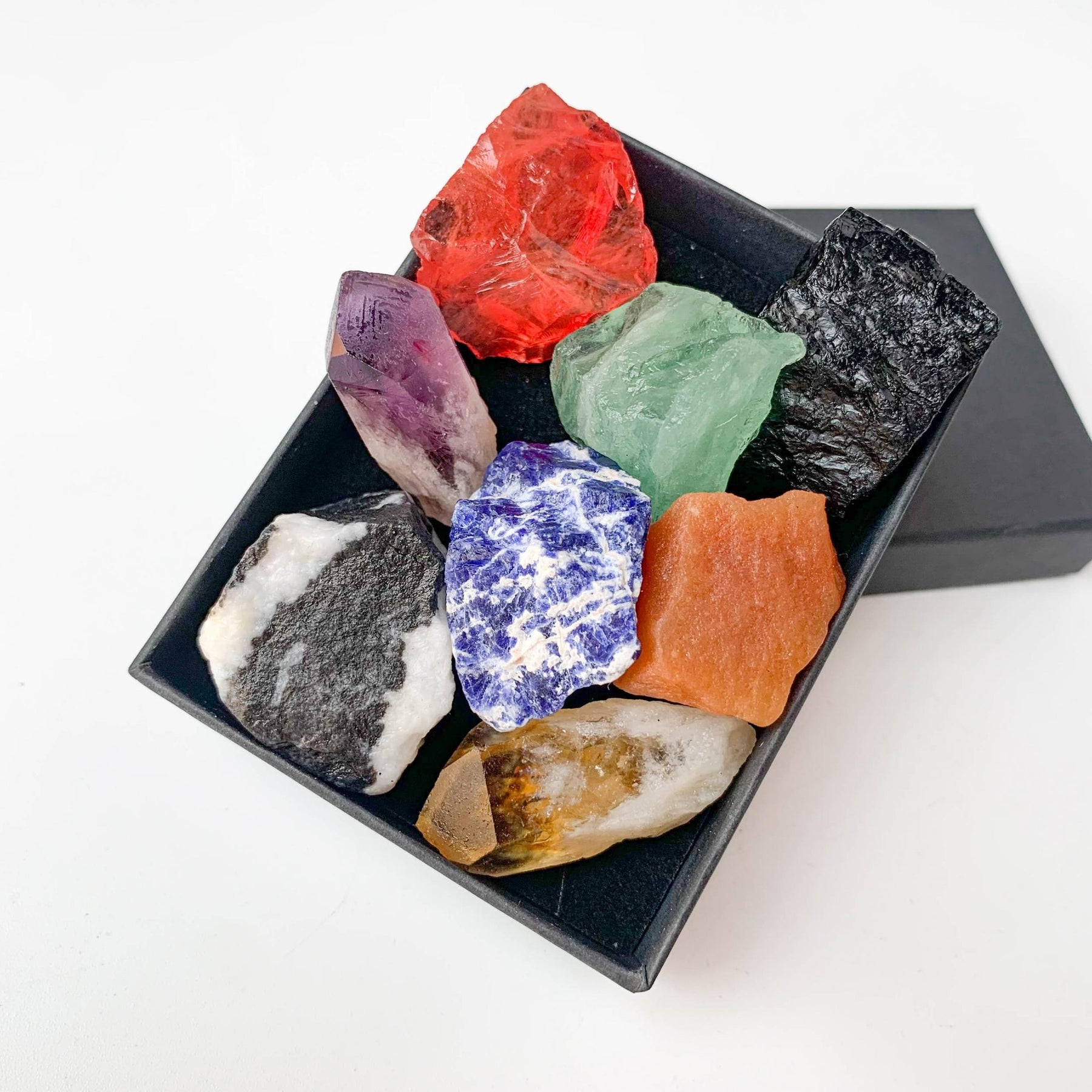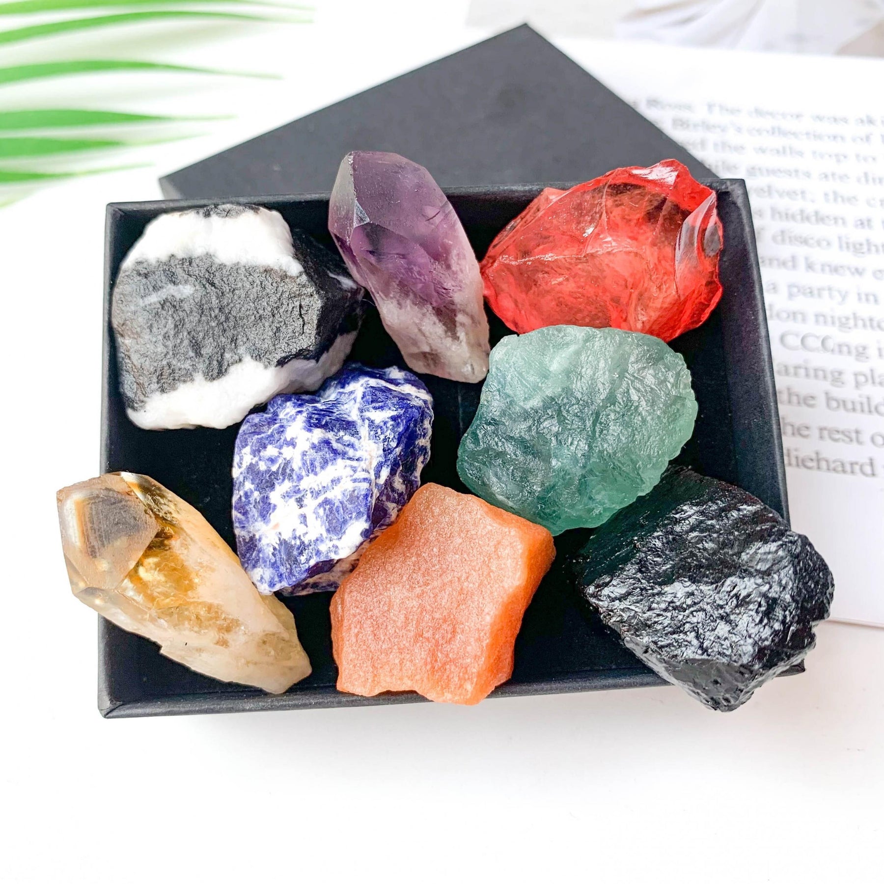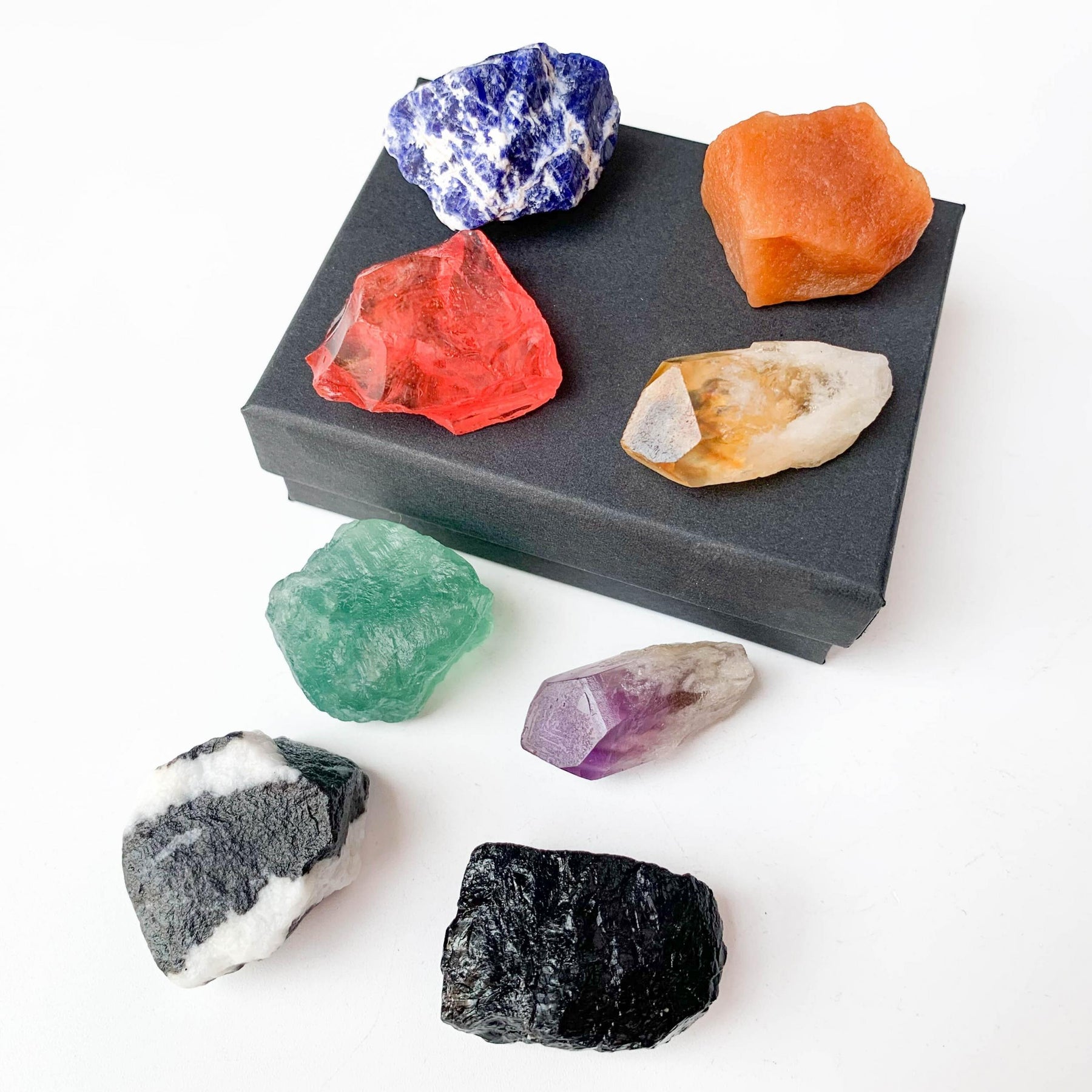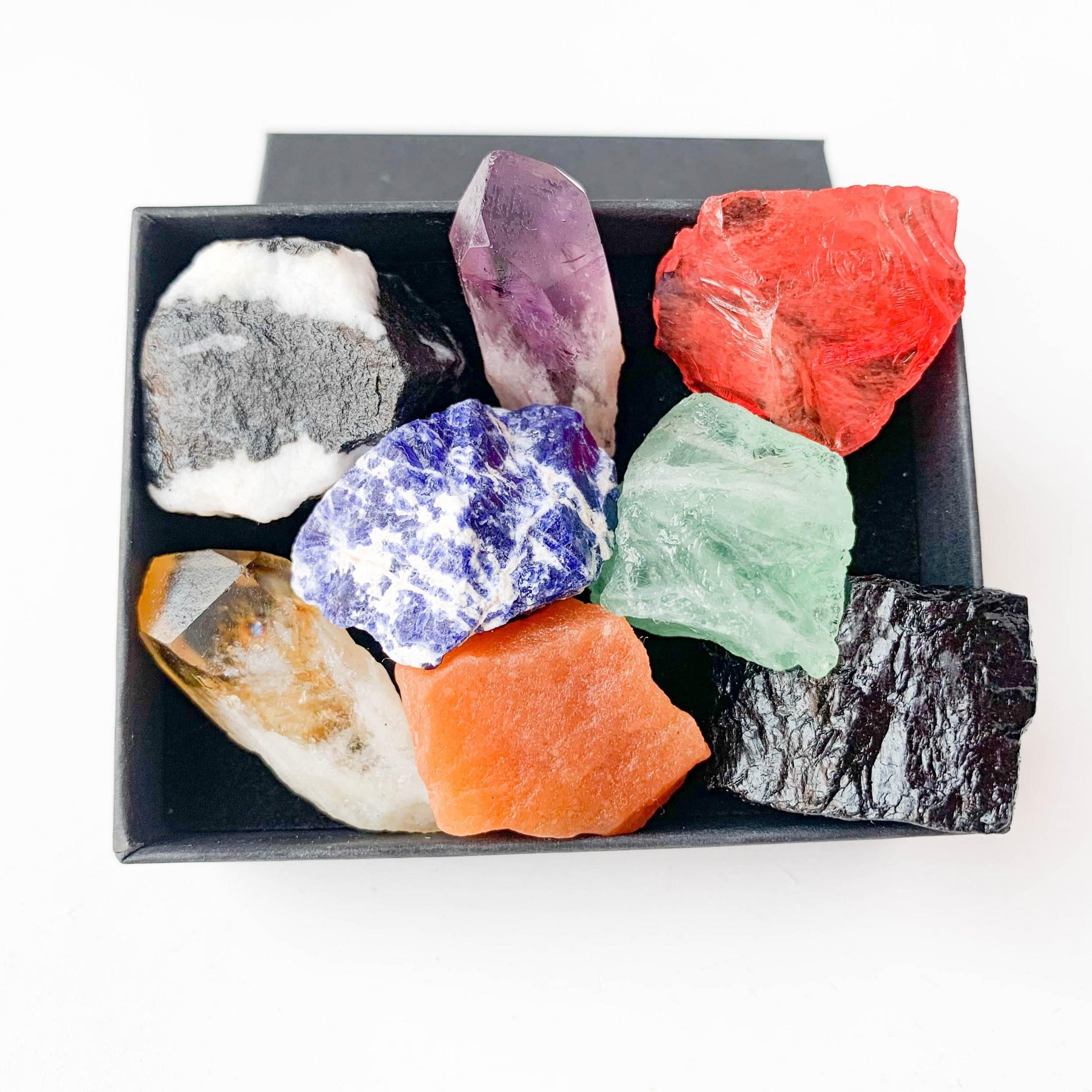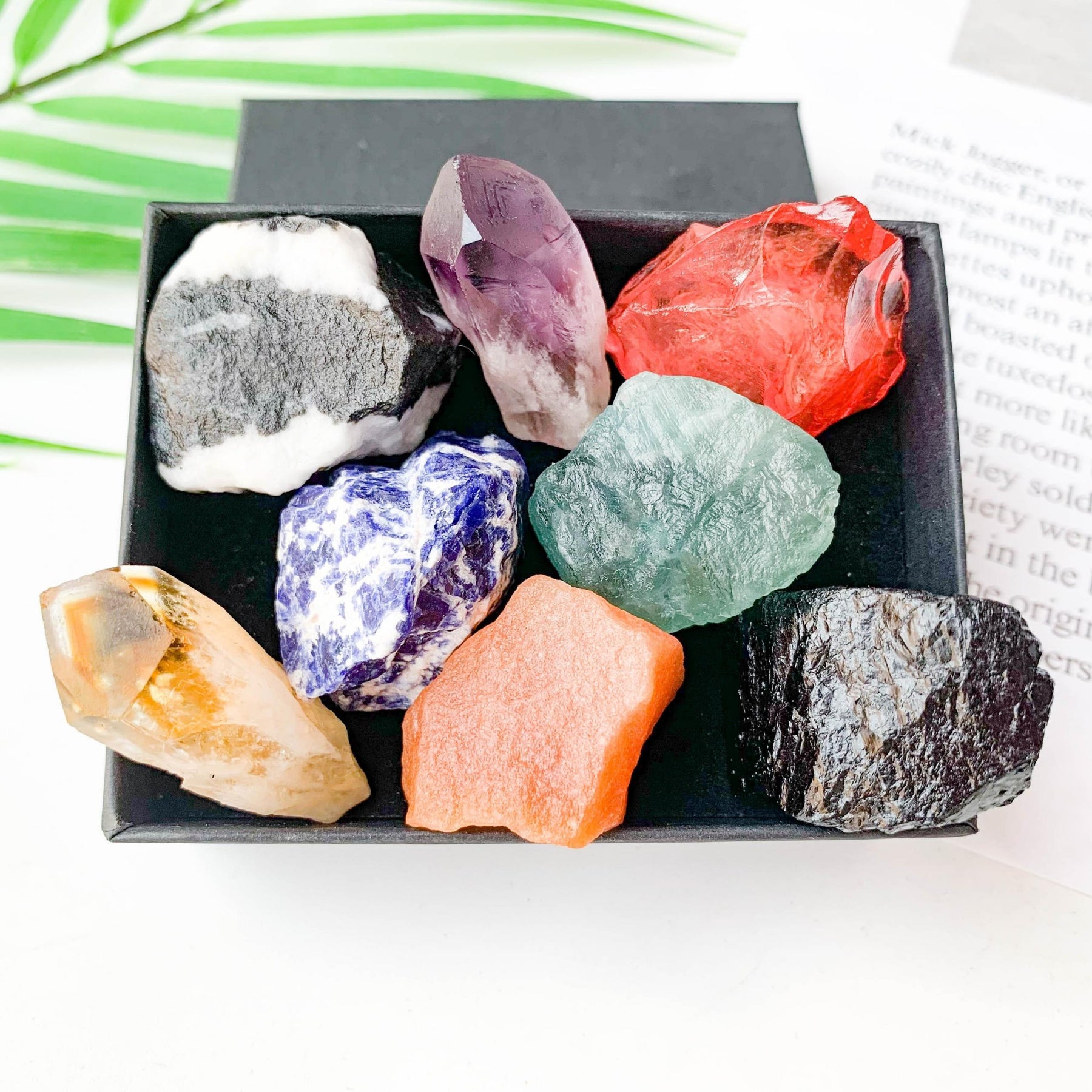 This set includes 8 large rare crystals for chakra healing. Perfect as a gift for crystal enthusiasts or spiritual practitioners.