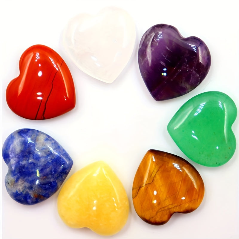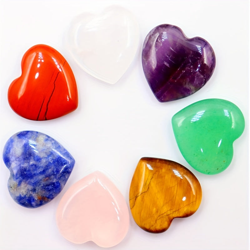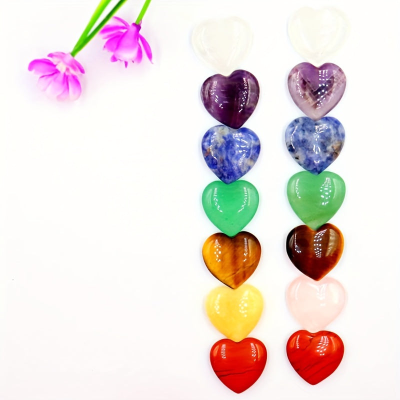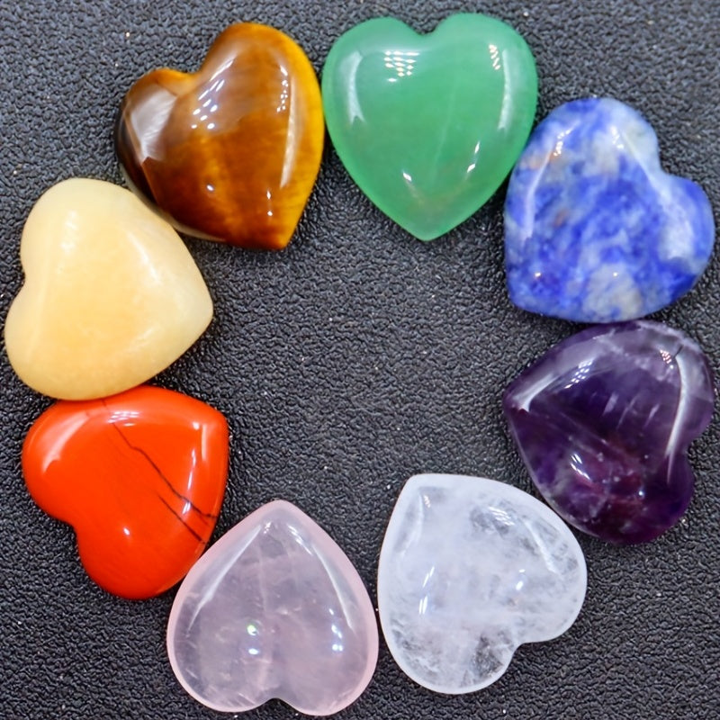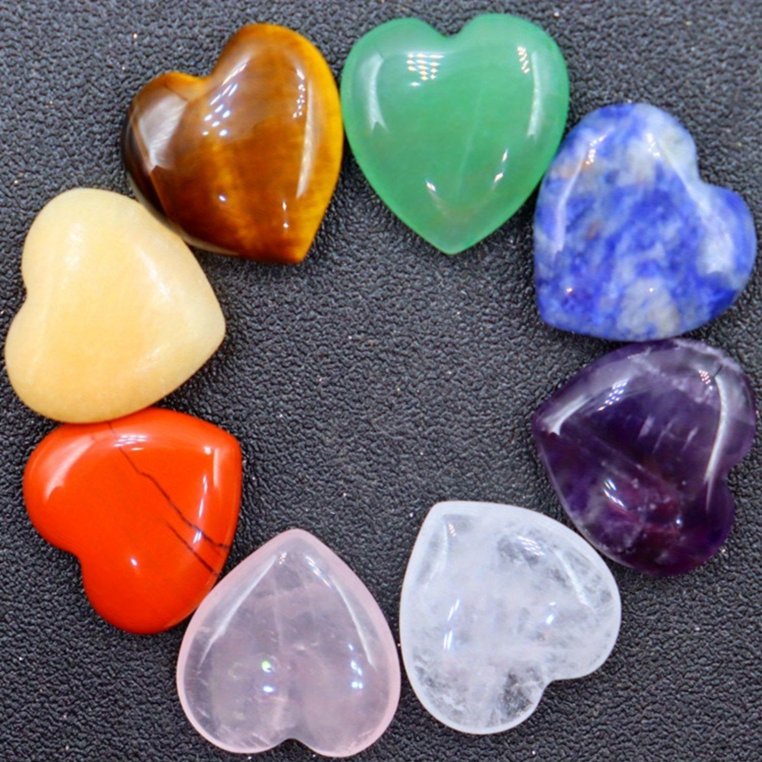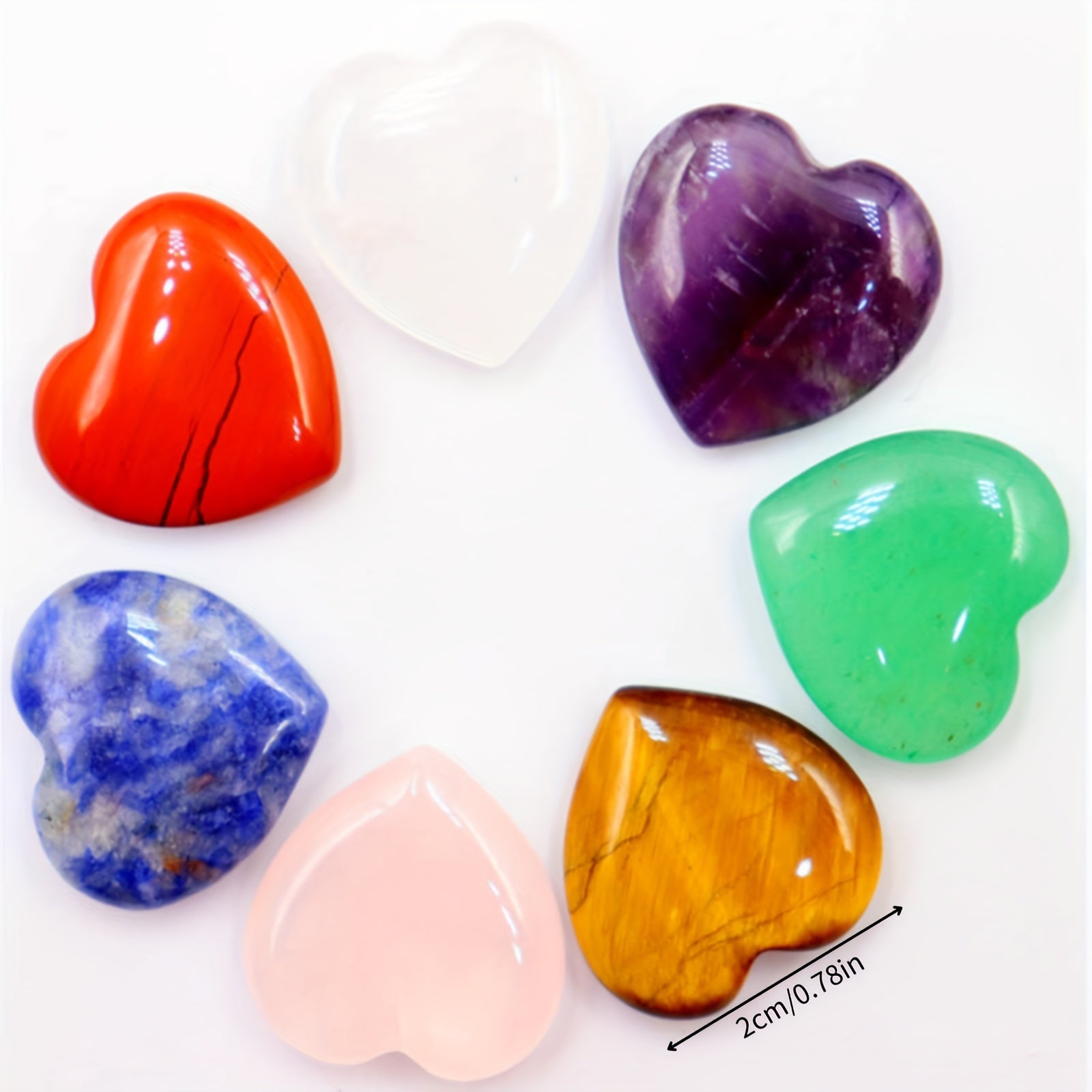 This set includes 8 pieces of natural crystal stone love heart shaped ornaments. Each stone is approximately 0.79 inches in size and made of seven different gemstones. Perfect for decoration and energy healing practices.