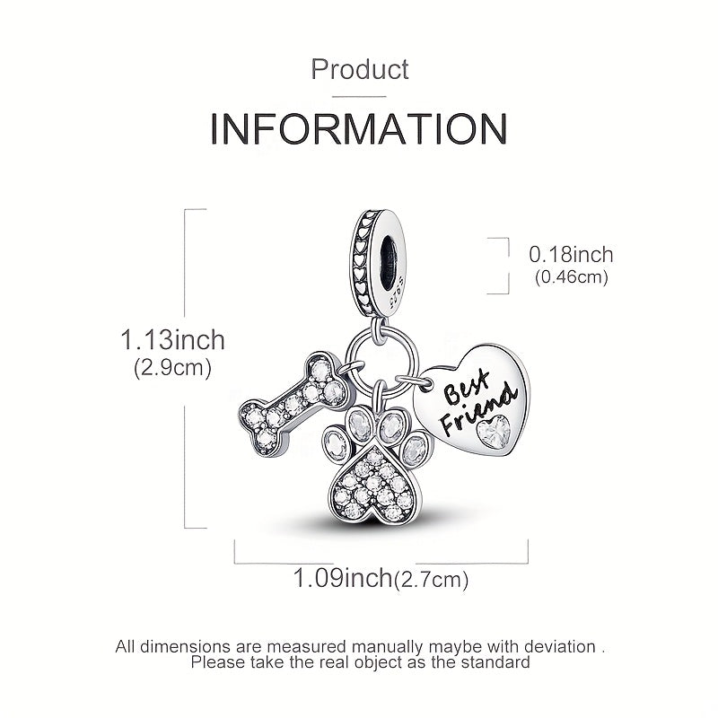 This 925 silver bead features a bone paw love design, making it suitable for daily wear, parties, and as a charming gift for women. Weighs 3.6g.