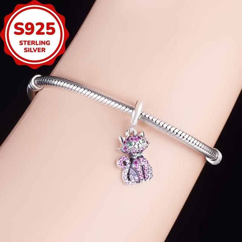 This adorable 925 sterling silver cat pendant charm is perfect for creating unique gifts. It is a great addition to any jewelry project.