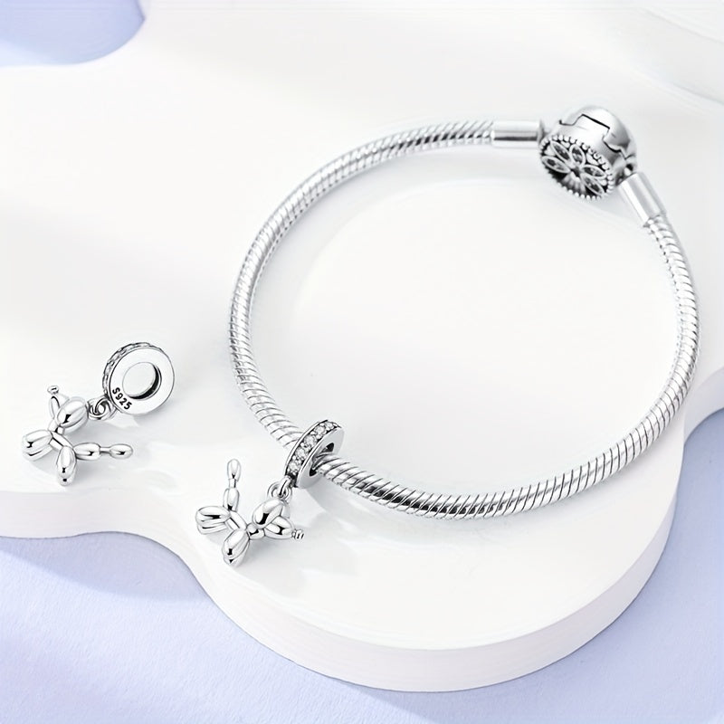 Add a touch of whimsy to your jewelry collection with this adorable dog-shaped charm. Made of durable 925 sterling silver and adorned with sparkling rhinestones, this charm is perfect for women's bracelets. The playful design will bring a smile to your face every time you wear it.