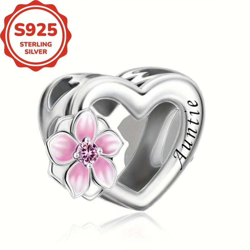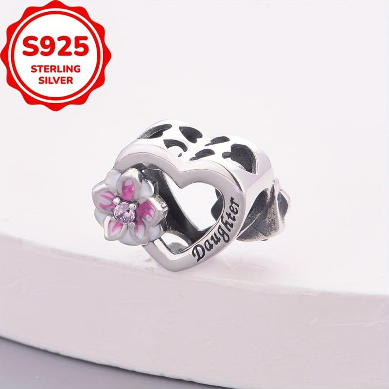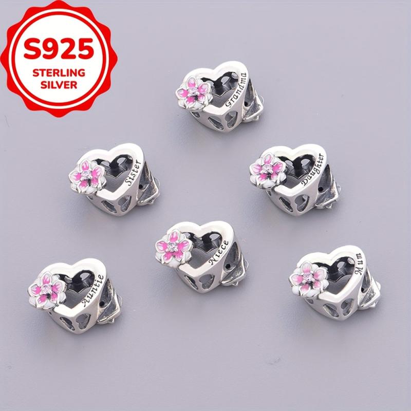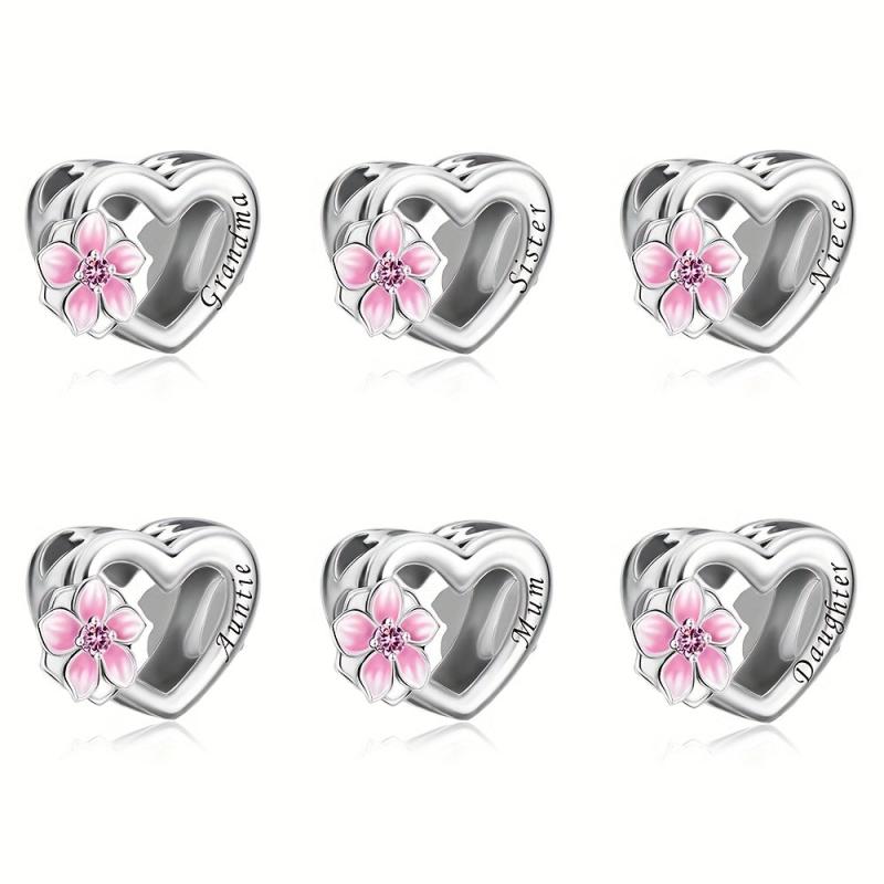 This 925 sterling silver pendant features a family love heart design with pink gradient flower accents, perfect for home address decoration or jewelry making for daily wear and holidays.