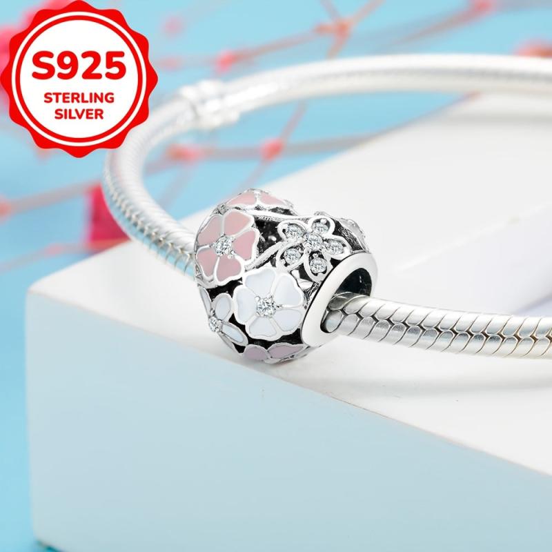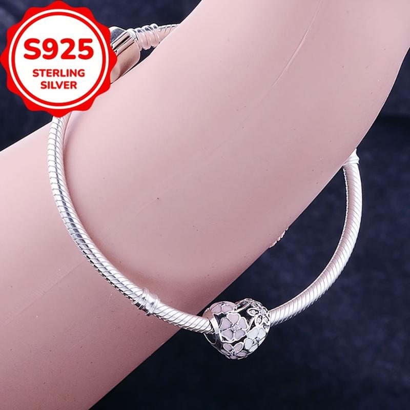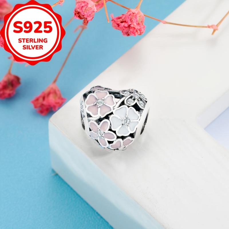925 Silver Heart Charm Flower Pattern Zircon DIY Jewelry Gift Making