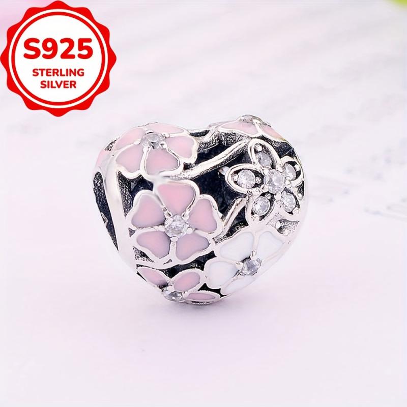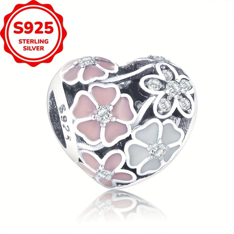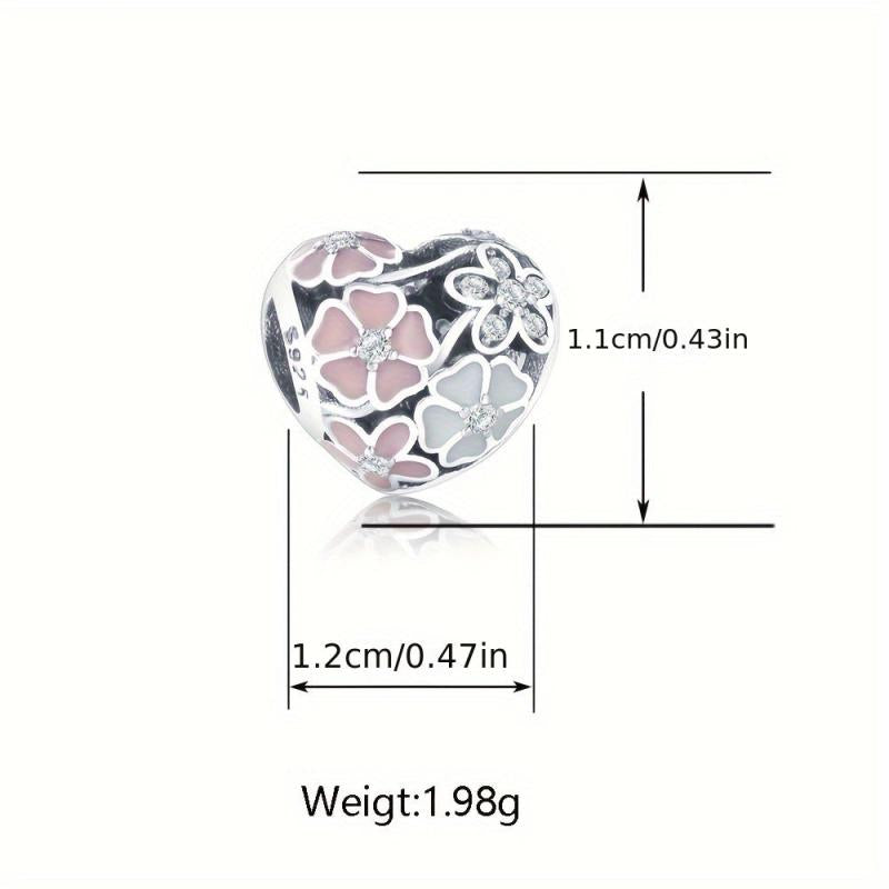 This 925 sterling silver heart charm features a synthetic zircon flower pattern design, perfect for creating your own unique jewelry pieces. Ideal for gift-giving or personal use.