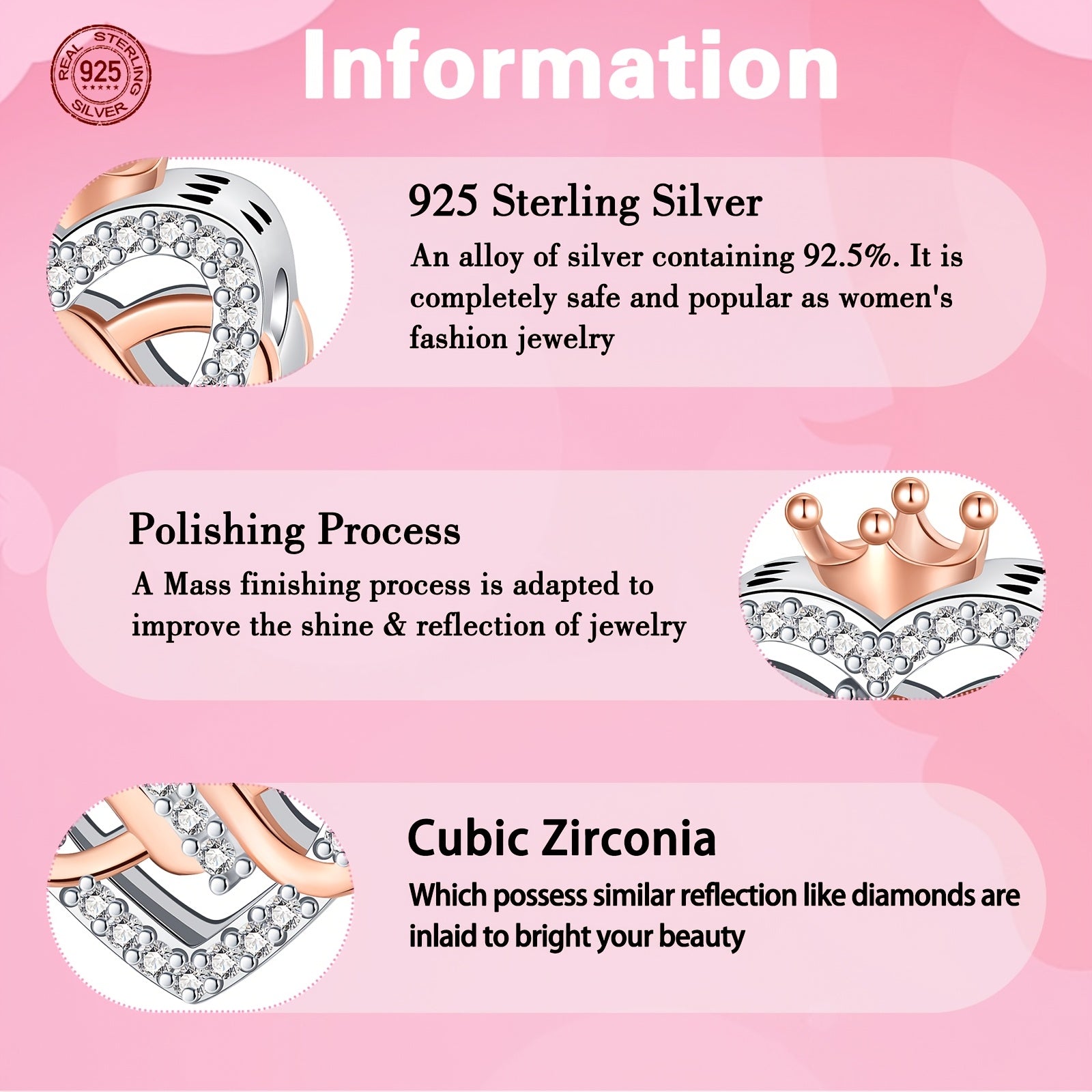 A stunning 925 silver pendant featuring a heart and crown design adorned with sparkling CZ stones.