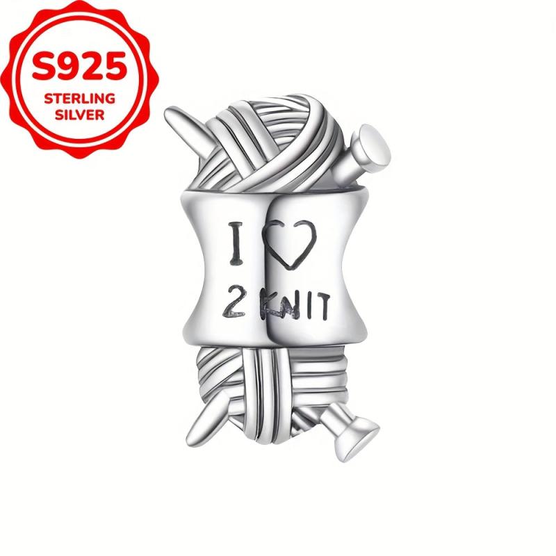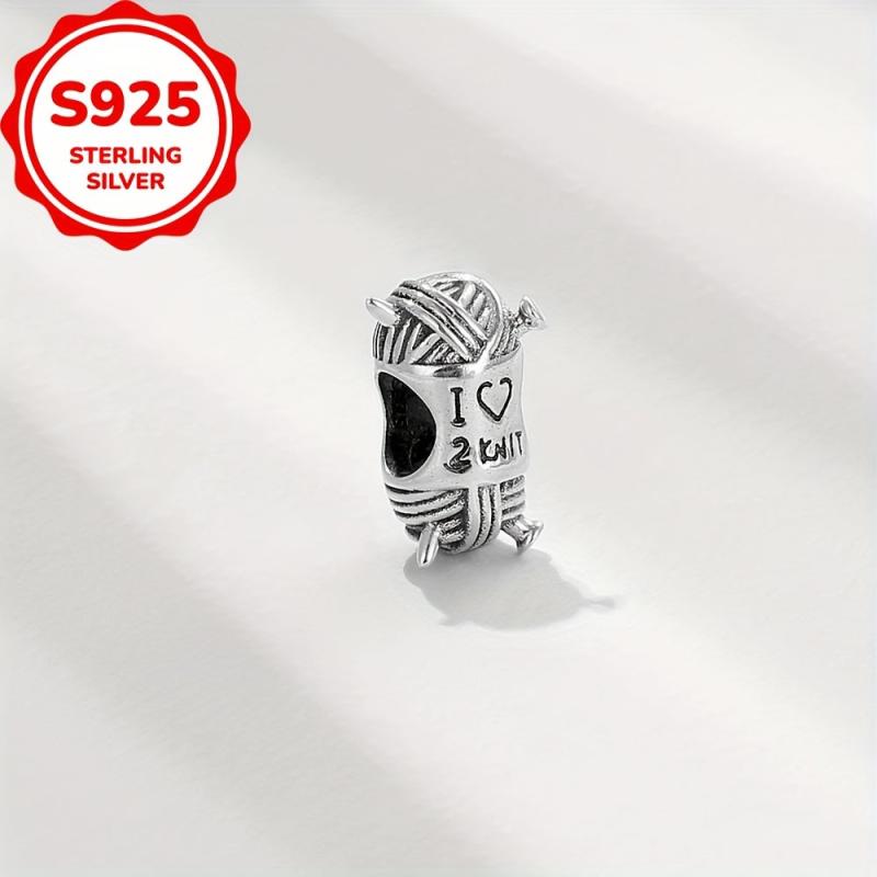 Add a touch of handmade charm to your jewelry with this 925 sterling silver charm bead, perfect for knitters. Ideal for bracelet or necklace creations.