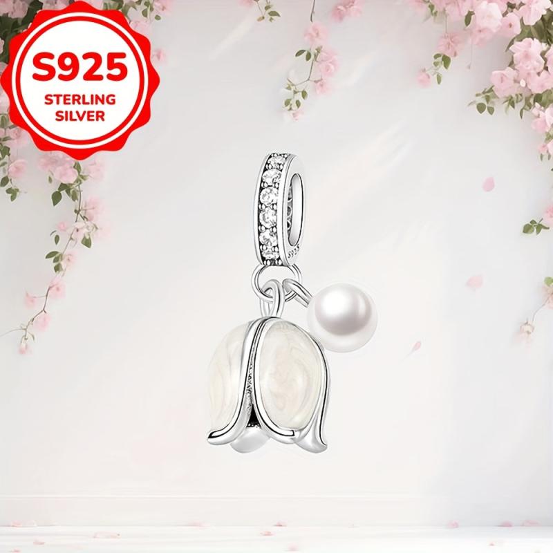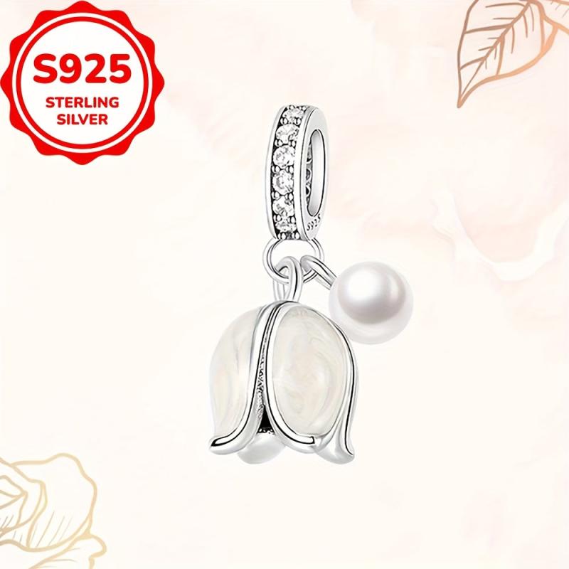 This elegant pendant bead is crafted from 925 pure silver, featuring a romantic Lily of the Valley design. Perfect for creating beautiful bracelets and necklaces for daily wear or as a birthday gift.