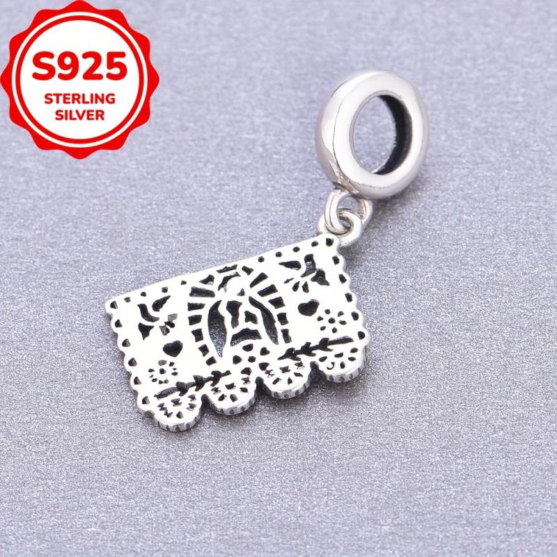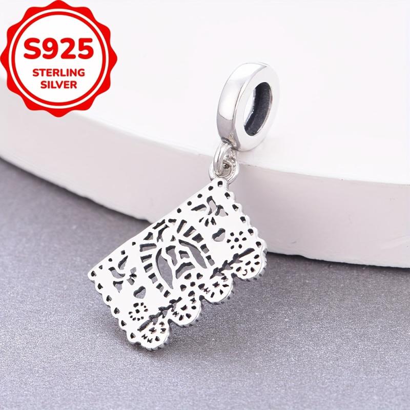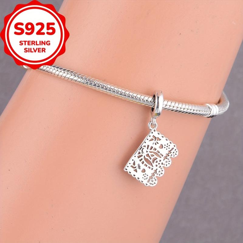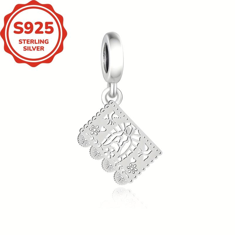 Commemorate the Dead with this 925 Sterling Silver Paper Cuttings Art Square Bracelet/Necklace Charm Beads for DIY Jewelry Making.