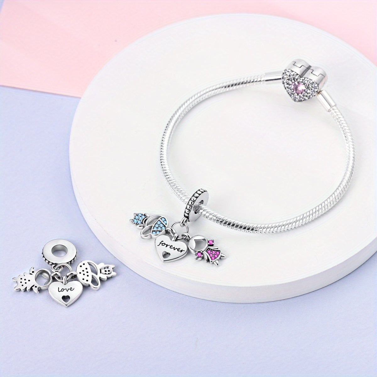 This 925 silver pendant features a cute little girl and little boy design. Perfect for a young girl or as a gift for a lady. Can be worn as a pendant, bracelet or necklace.