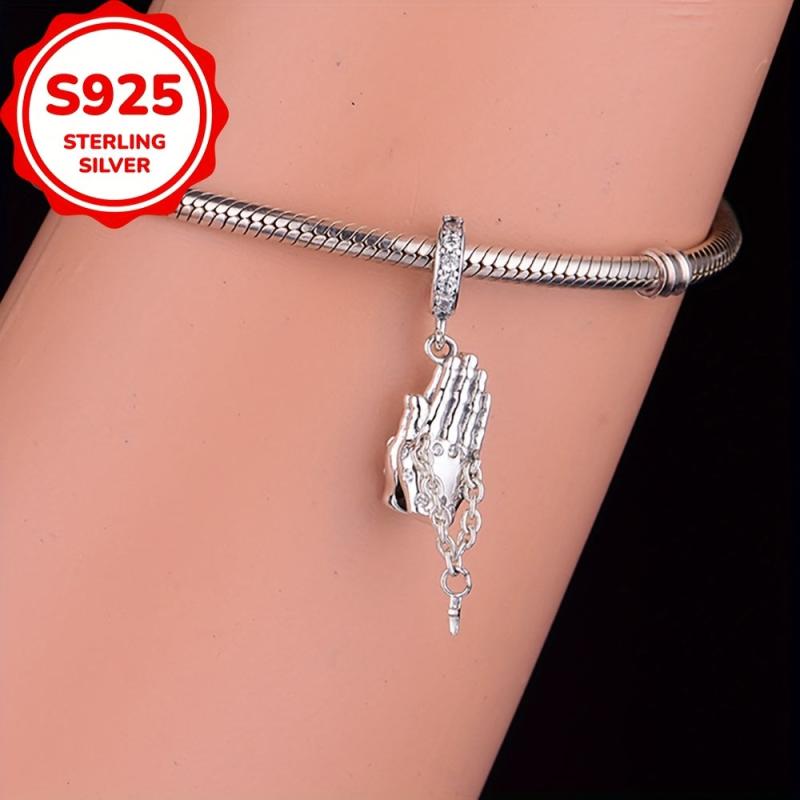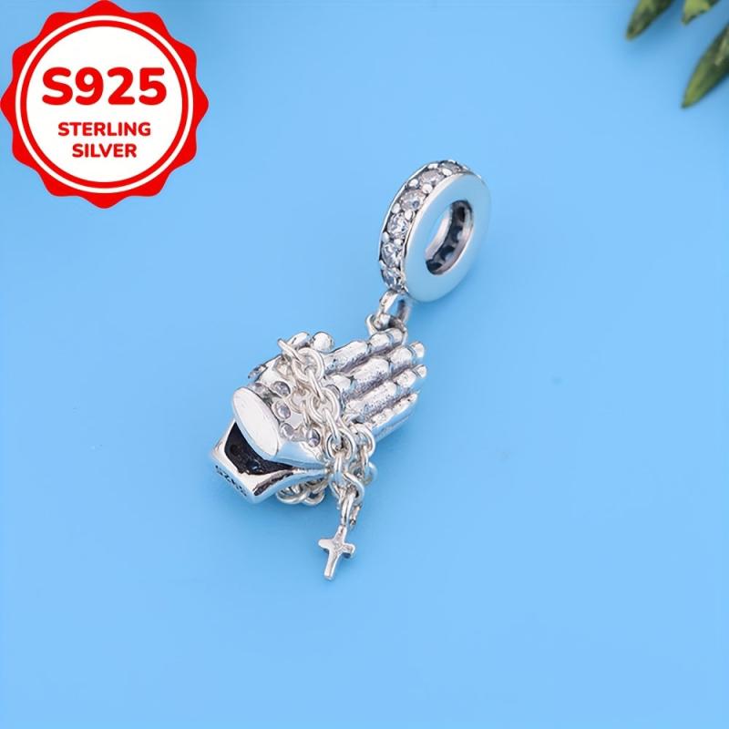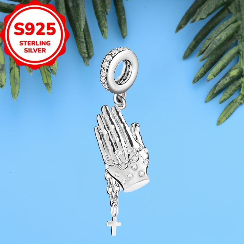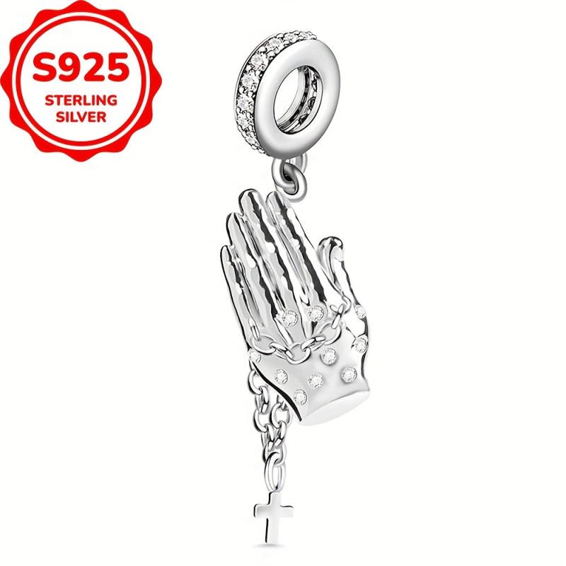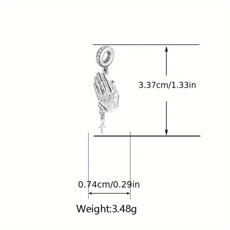 This 925 Sterling Silver pendant features a combination of hands and cross design with synthetic cubic zirconia gems. Perfect for Birthday or Easter jewelry making.
