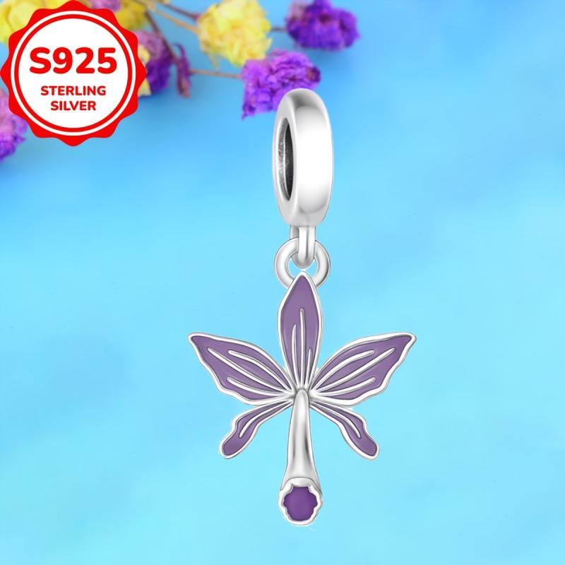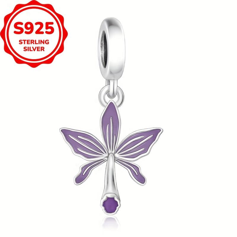 This 925 sterling silver purple orchid charm pendant is perfect for creating your own bracelet or necklace. It makes a great gift for birthdays, Mother's Day, or Easter.
