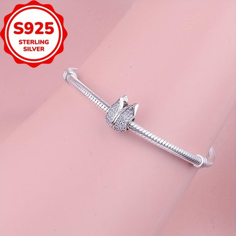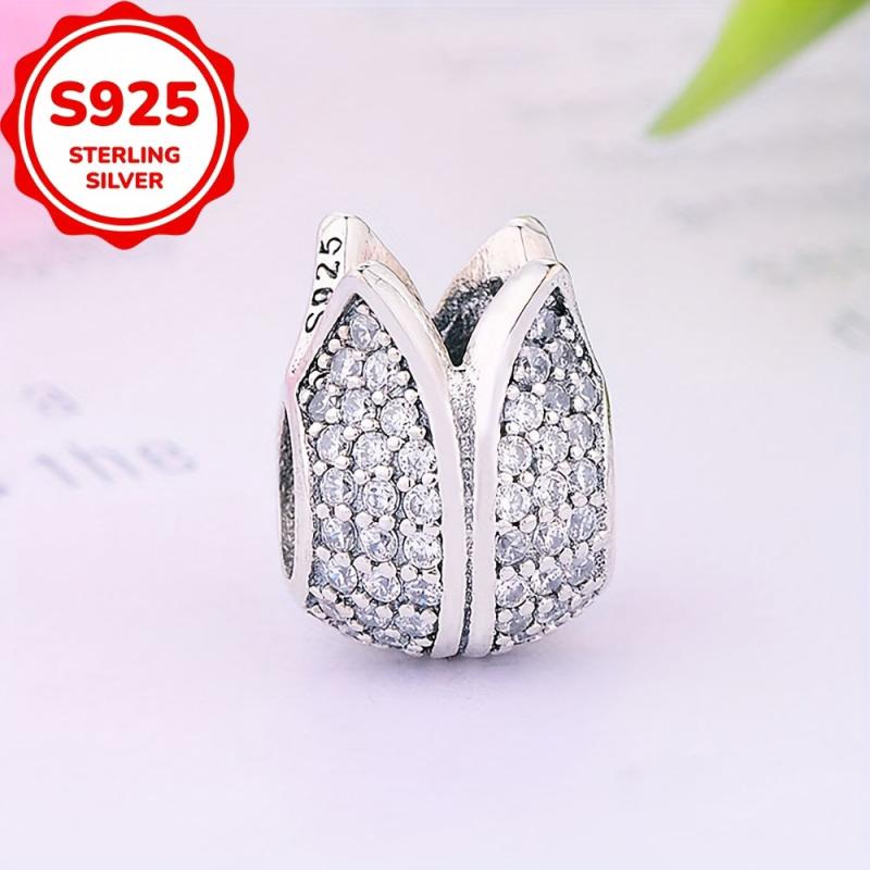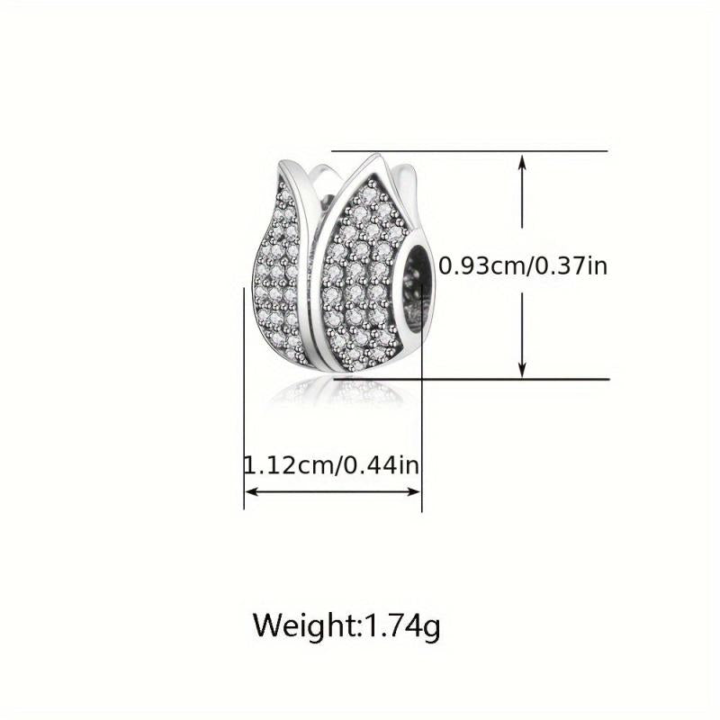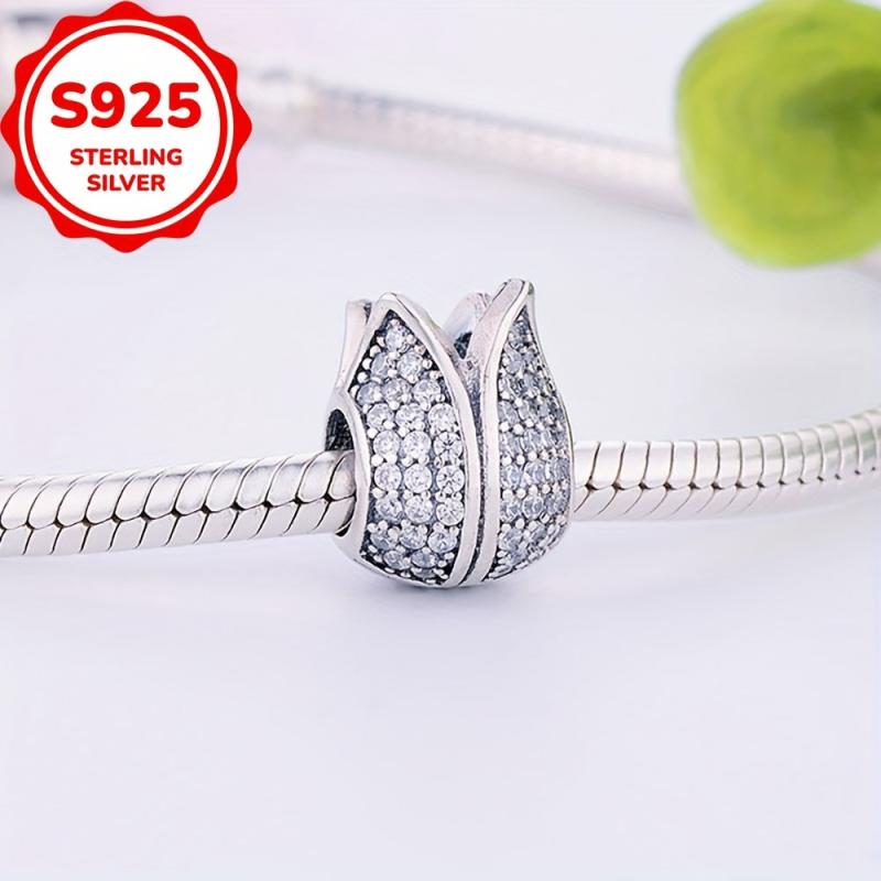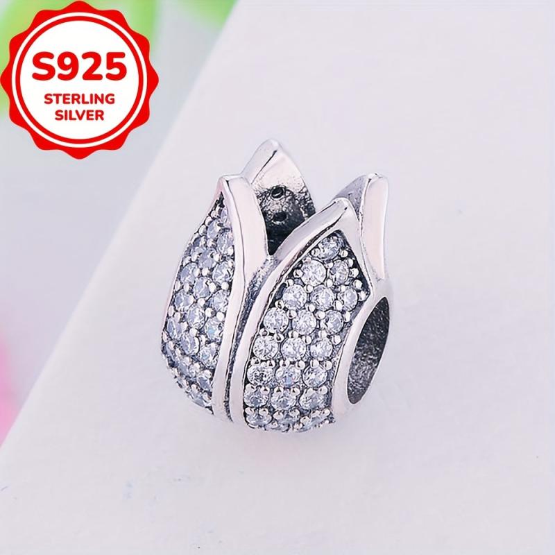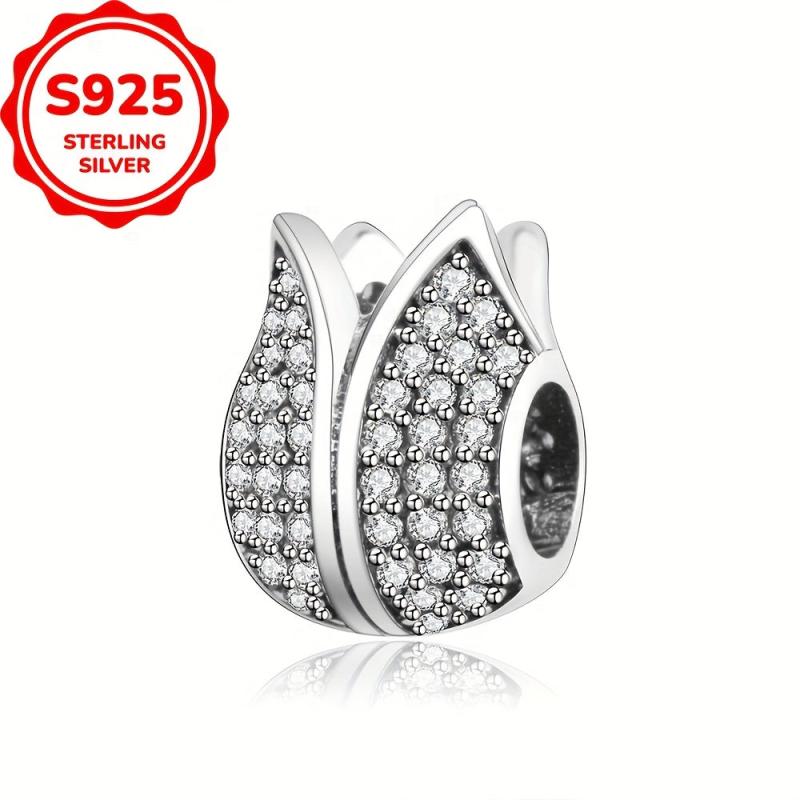 Elegant tulip bead charm made of 925 sterling silver with synthetic zircon, perfect for crafting unique jewelry pieces and gifting.