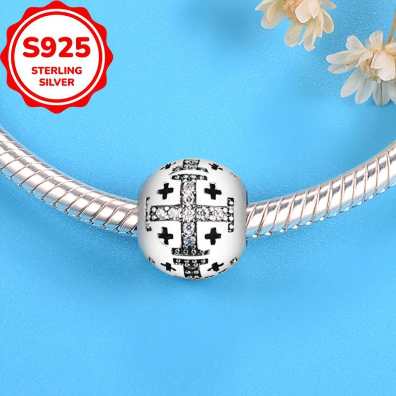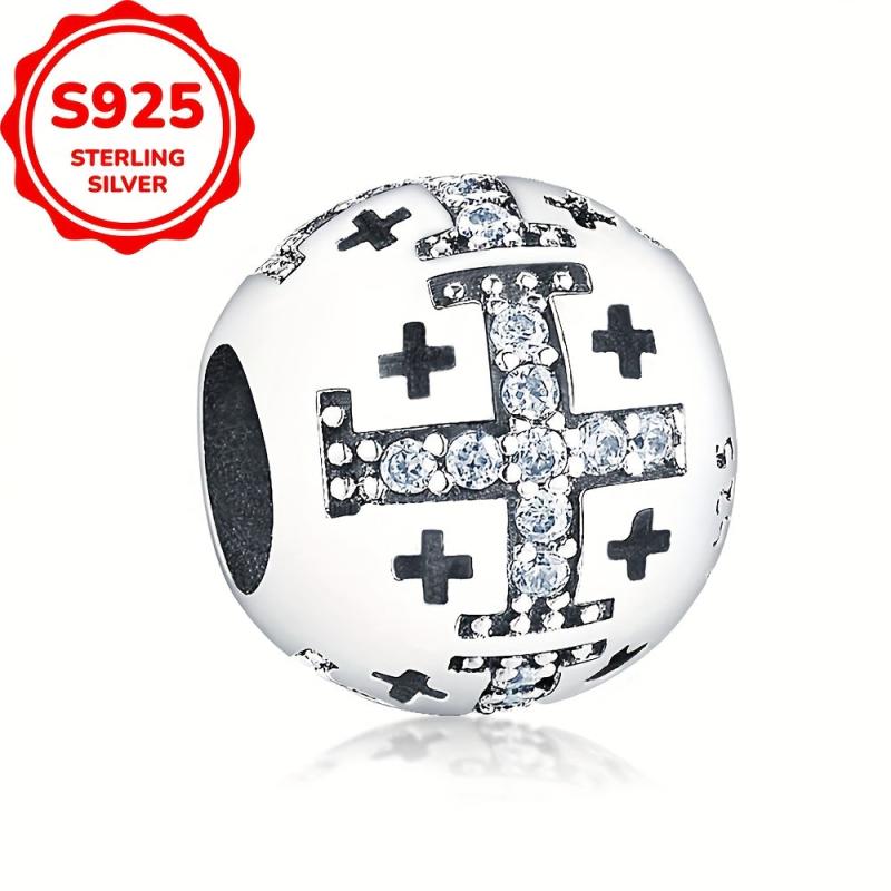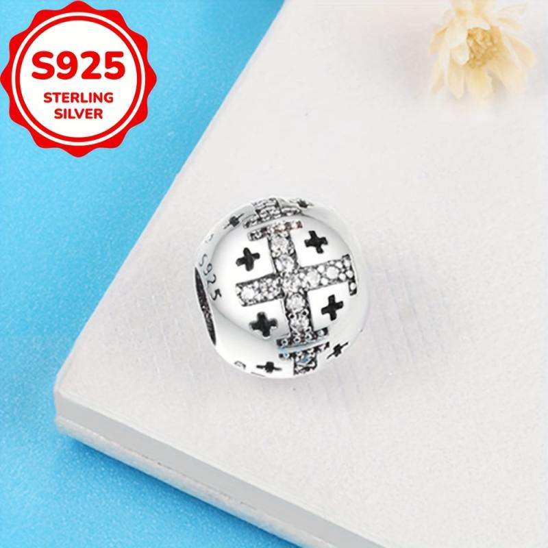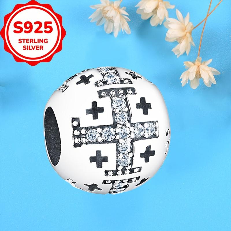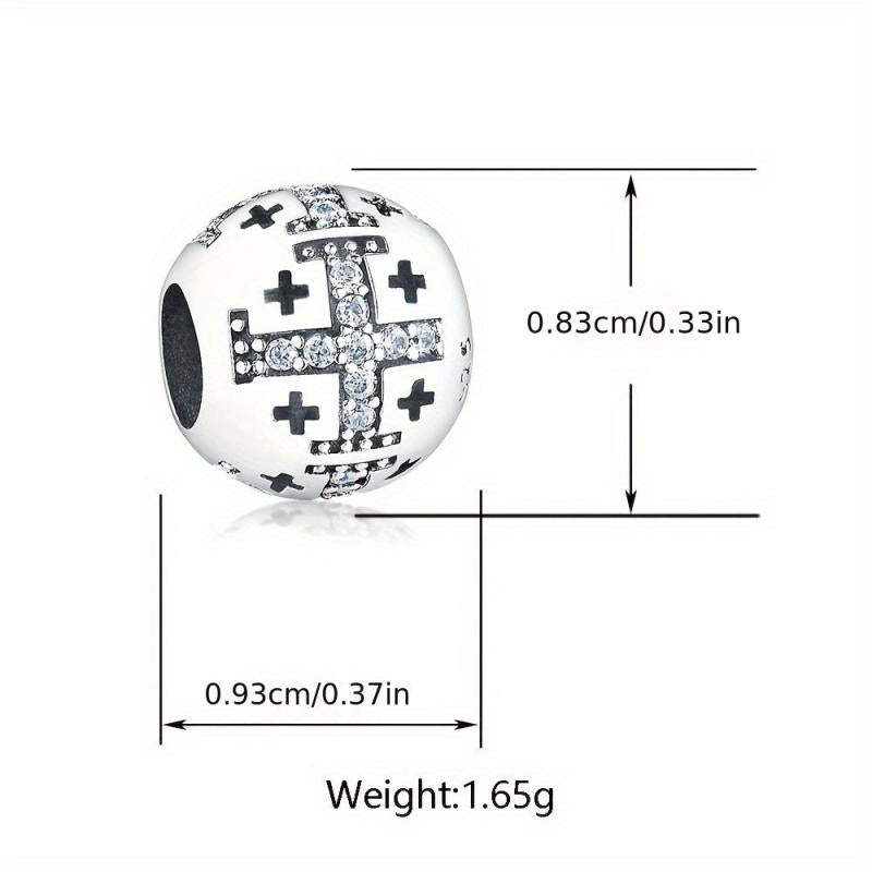 This 925 sterling silver bead charm features a synthetic zircon cross pattern, ideal for jewelry making and gifting. Perfect for DIY projects.