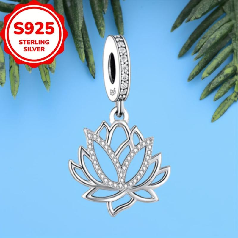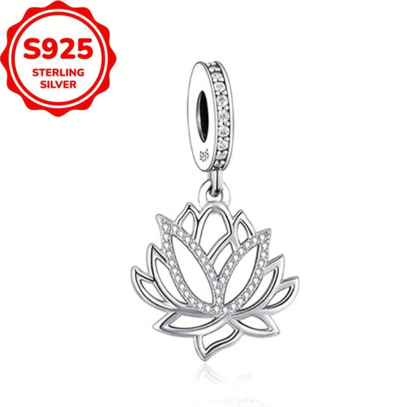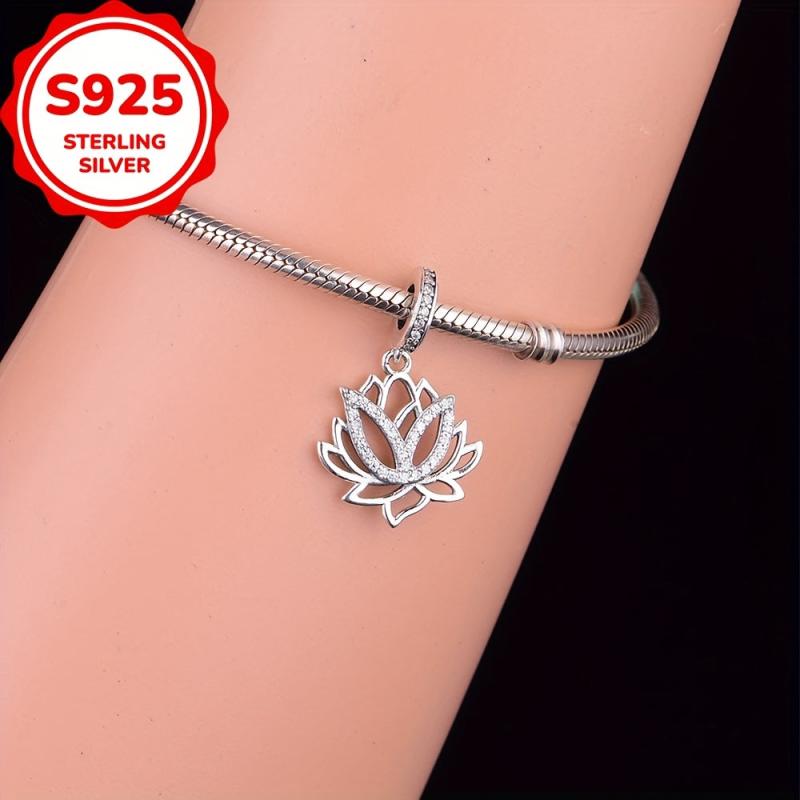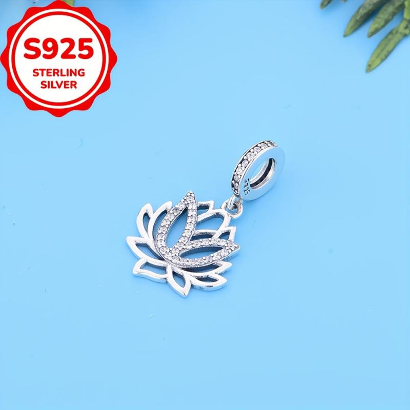 This 925 sterling silver lotus pendant features synthetic zircon, perfect for DIY jewelry projects. Ideal as a gift for jewelry making enthusiasts.