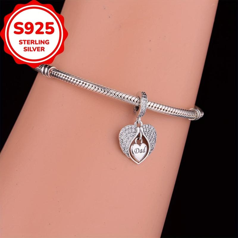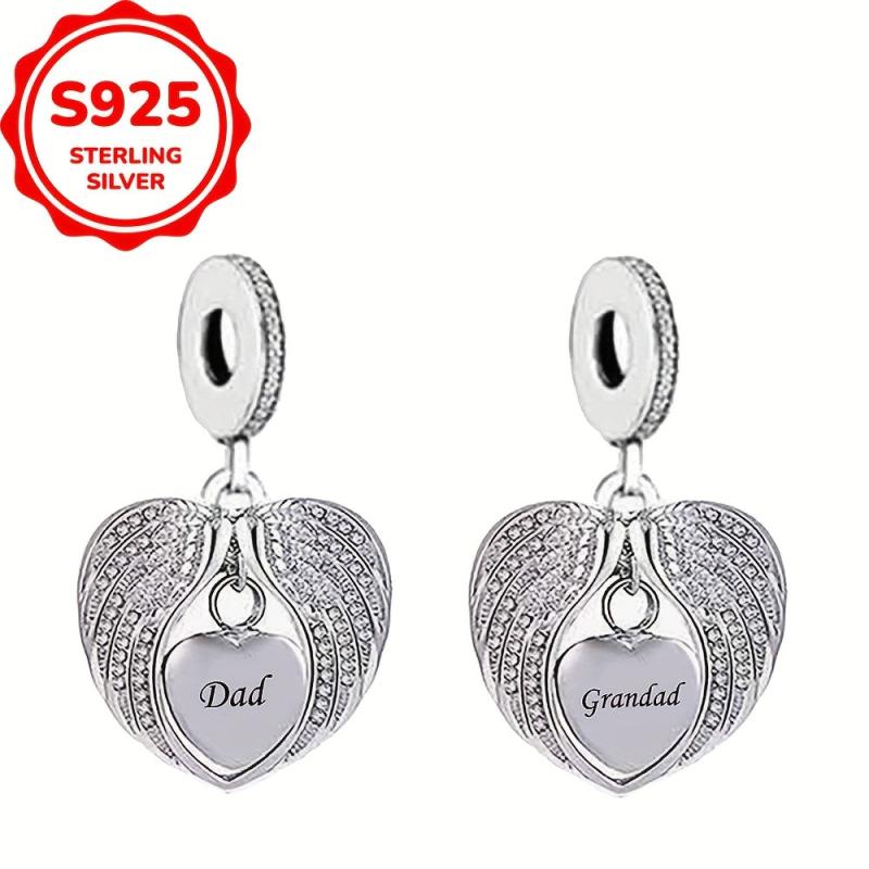 This exquisite pendant is crafted from 925 sterling silver and features a heart-shaped design with intricate feather wings. It is perfect for making personalized jewelry or as a thoughtful gift for dad or grandad on Father's Day or their birthday.