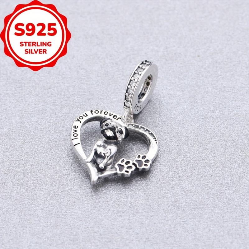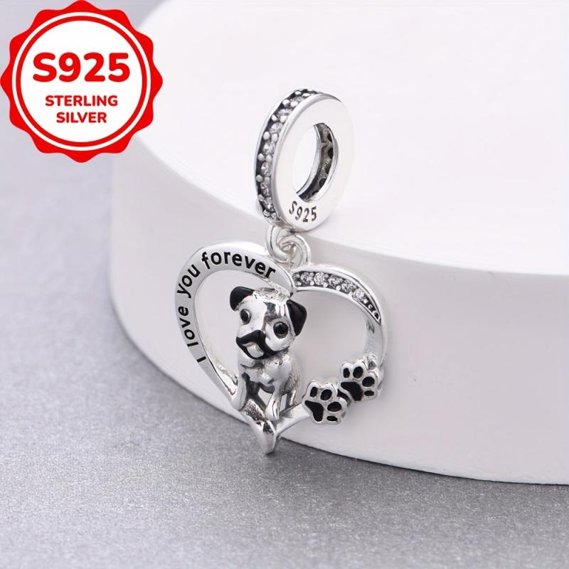 Add a touch of love to your DIY jewelry with this charming dog paw heart pendant. Made of 925 sterling silver and featuring synthetic zirconia, it's perfect for bracelets or necklaces. Ideal as a Christmas gift!