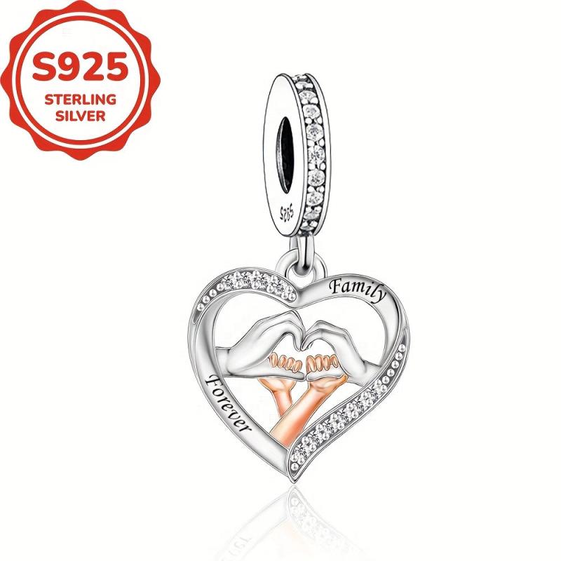 925 Sterling Silver Family Heart Gesture Pendant with Cubic Zirconia
