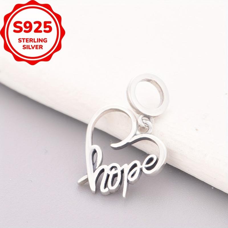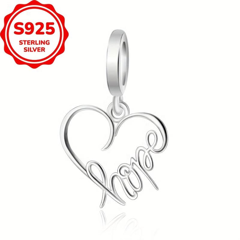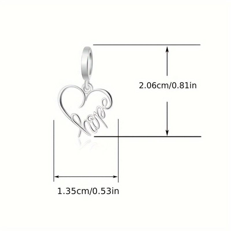 925 Sterling Silver Hope Heart Bracelet Charm DIY Jewelry Breast Hope Gift