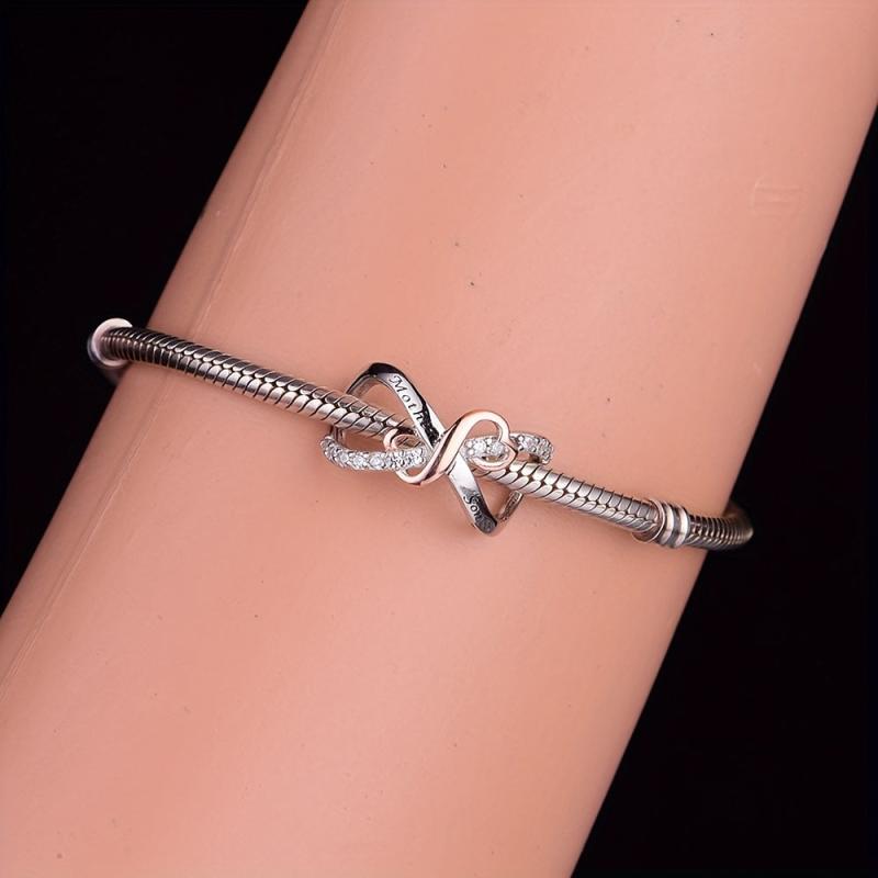 This sterling silver charm bead features an infinity symbol with a mother and son silhouette. Perfect for making meaningful jewelry gifts.