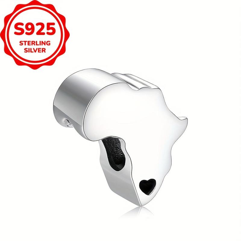 925 Sterling Silver South African Map Pendant Bead for Jewelry Making