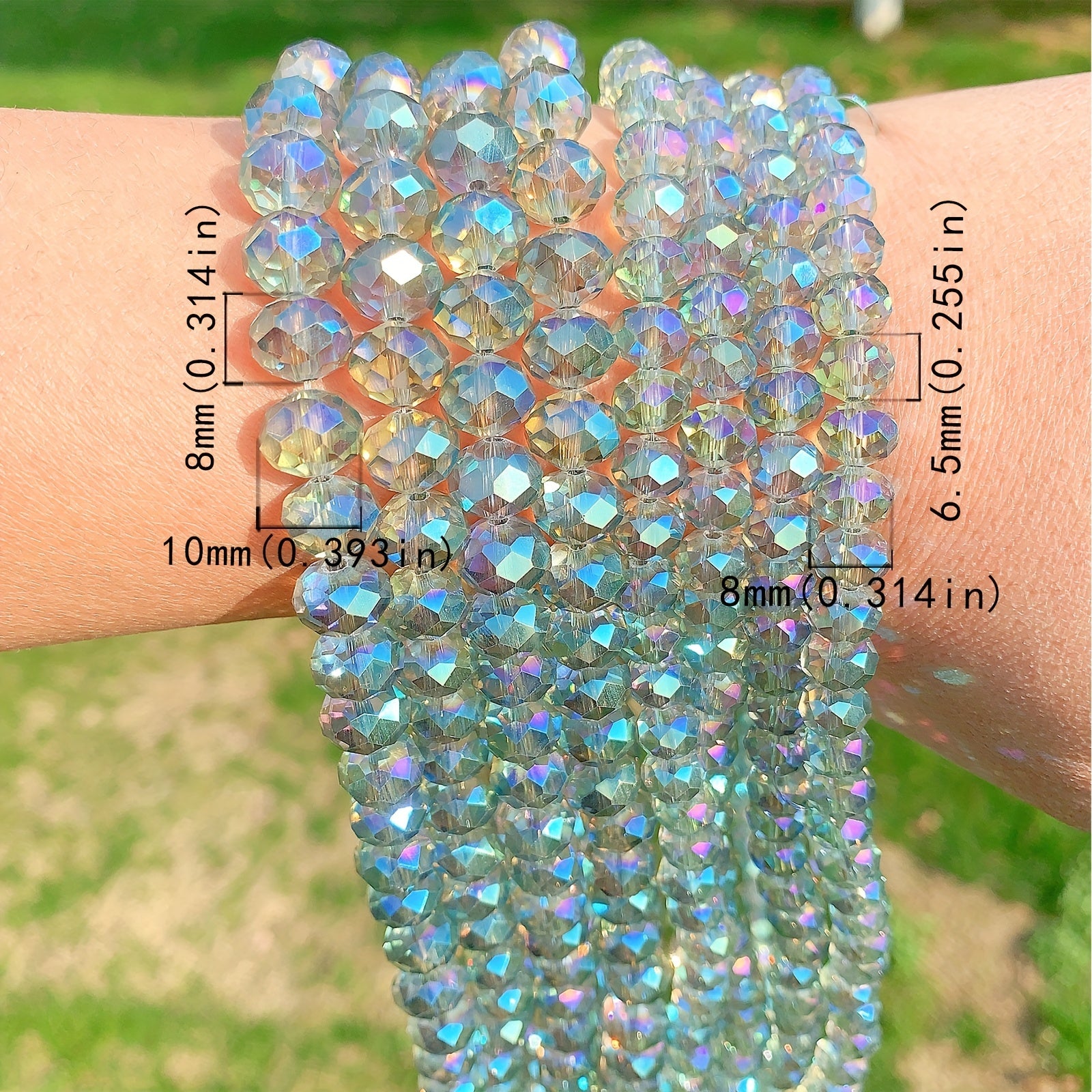 Elevate your jewelry-making with this set of crystal beads plated with AB finish, perfect for creating stunning bracelets and accessories.