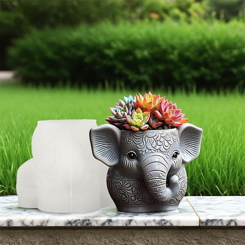 This intricate embossed silicone mold is perfect for creating a desk organizer or decorative makeup holder in the shape of an elephant. Suitable for plaster, clay, ABS, and resin crafting.