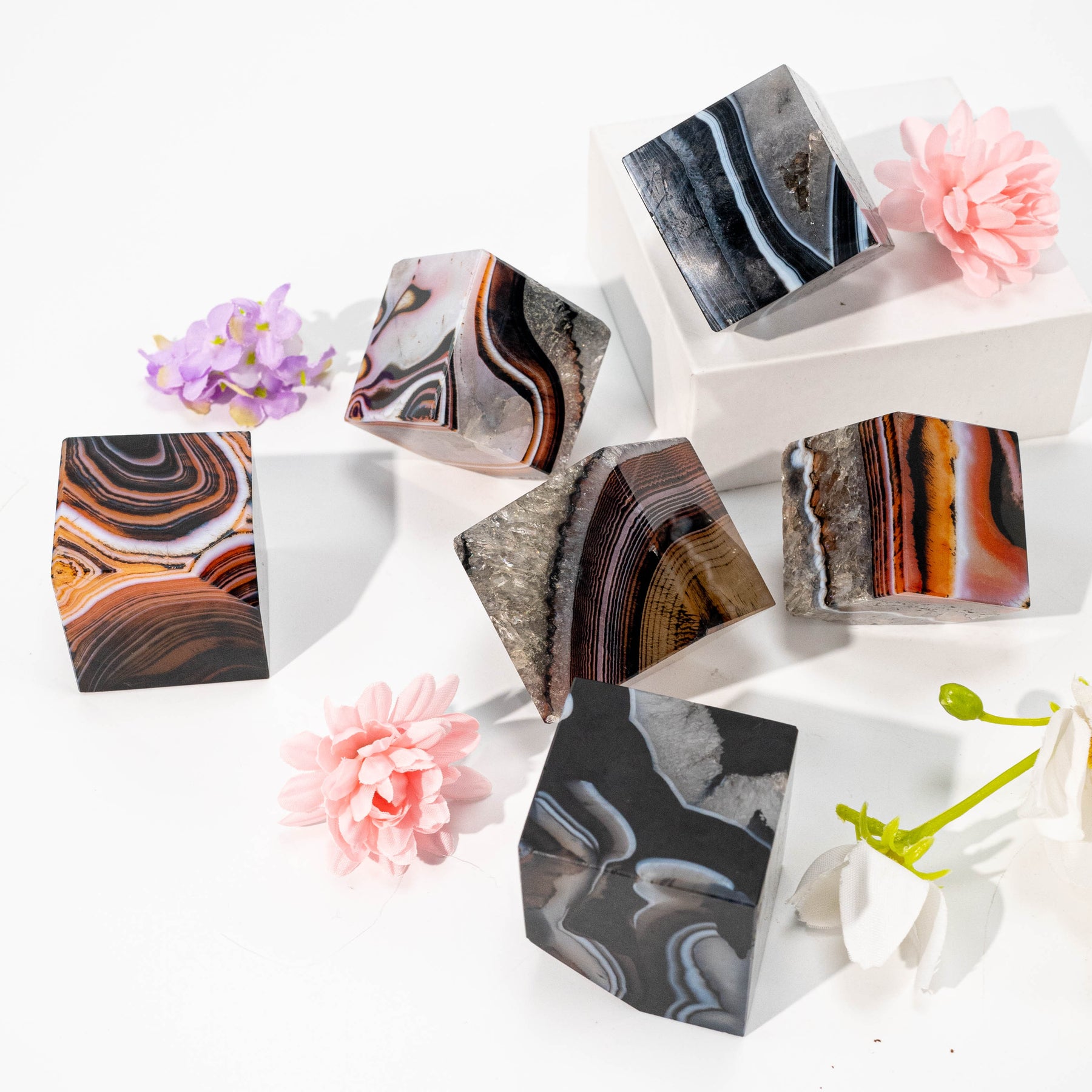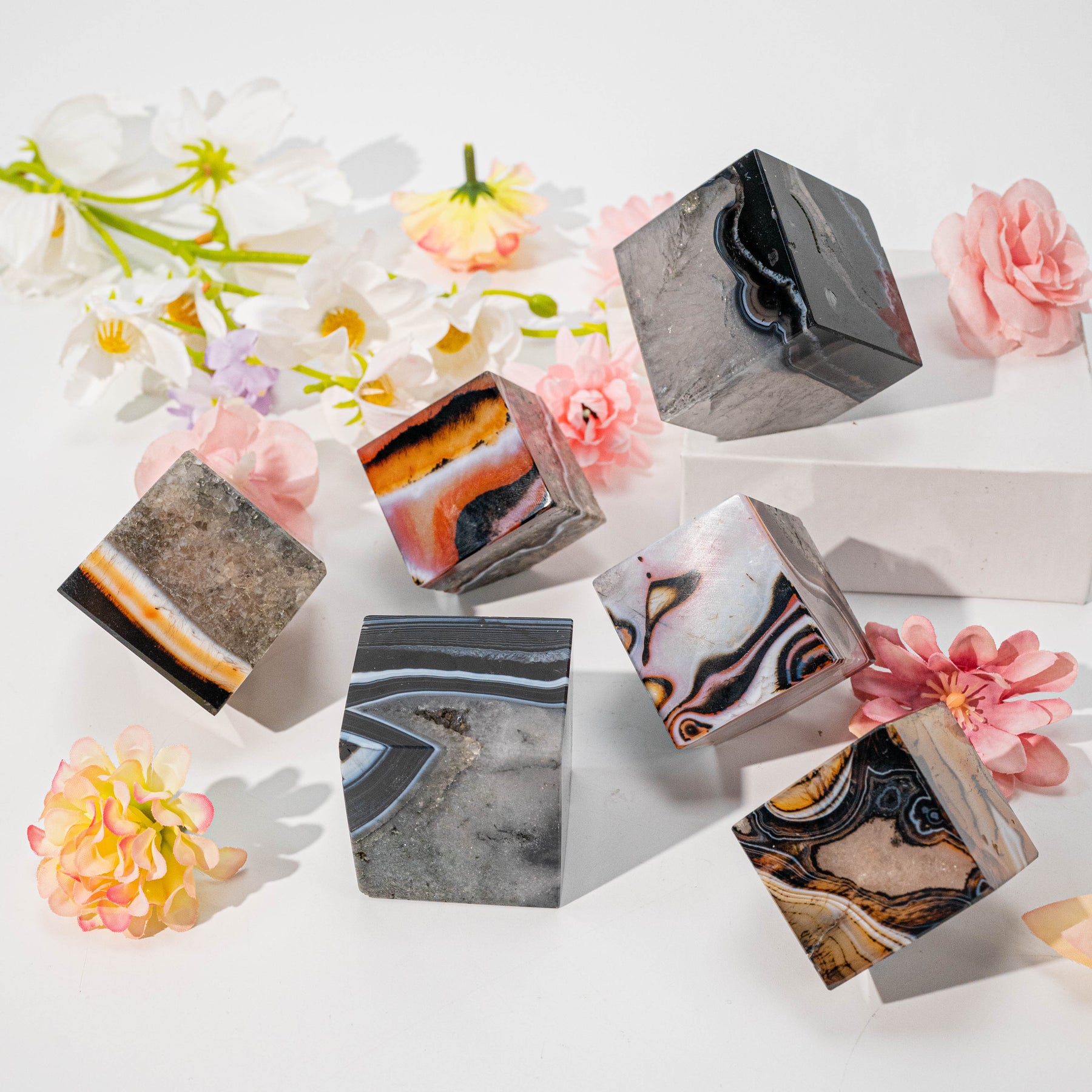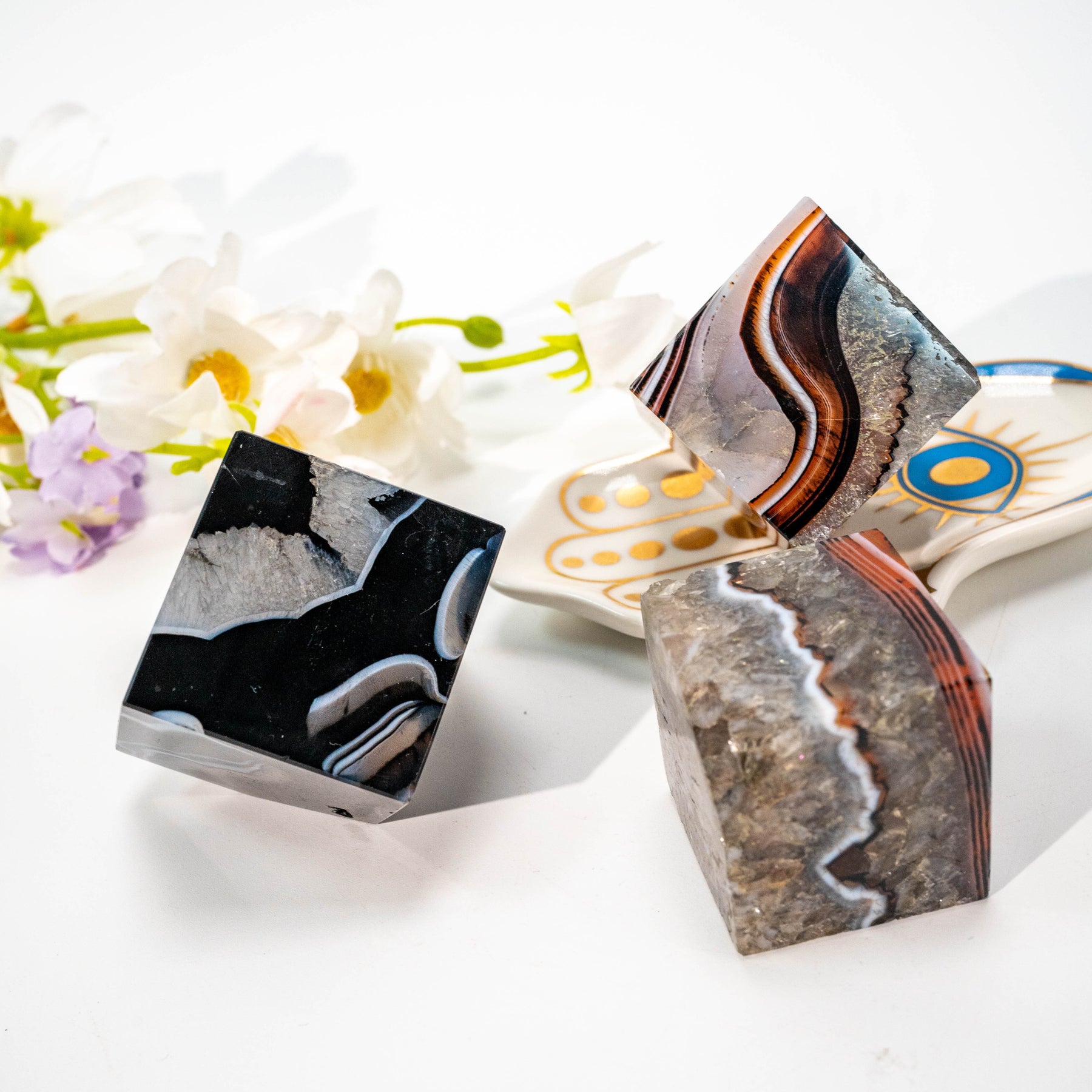 This set includes 3pcs of agate cubes measuring 1.6 inches each, perfect for home decoration or as a holiday gift. Add to your agate collection with these unique pieces.