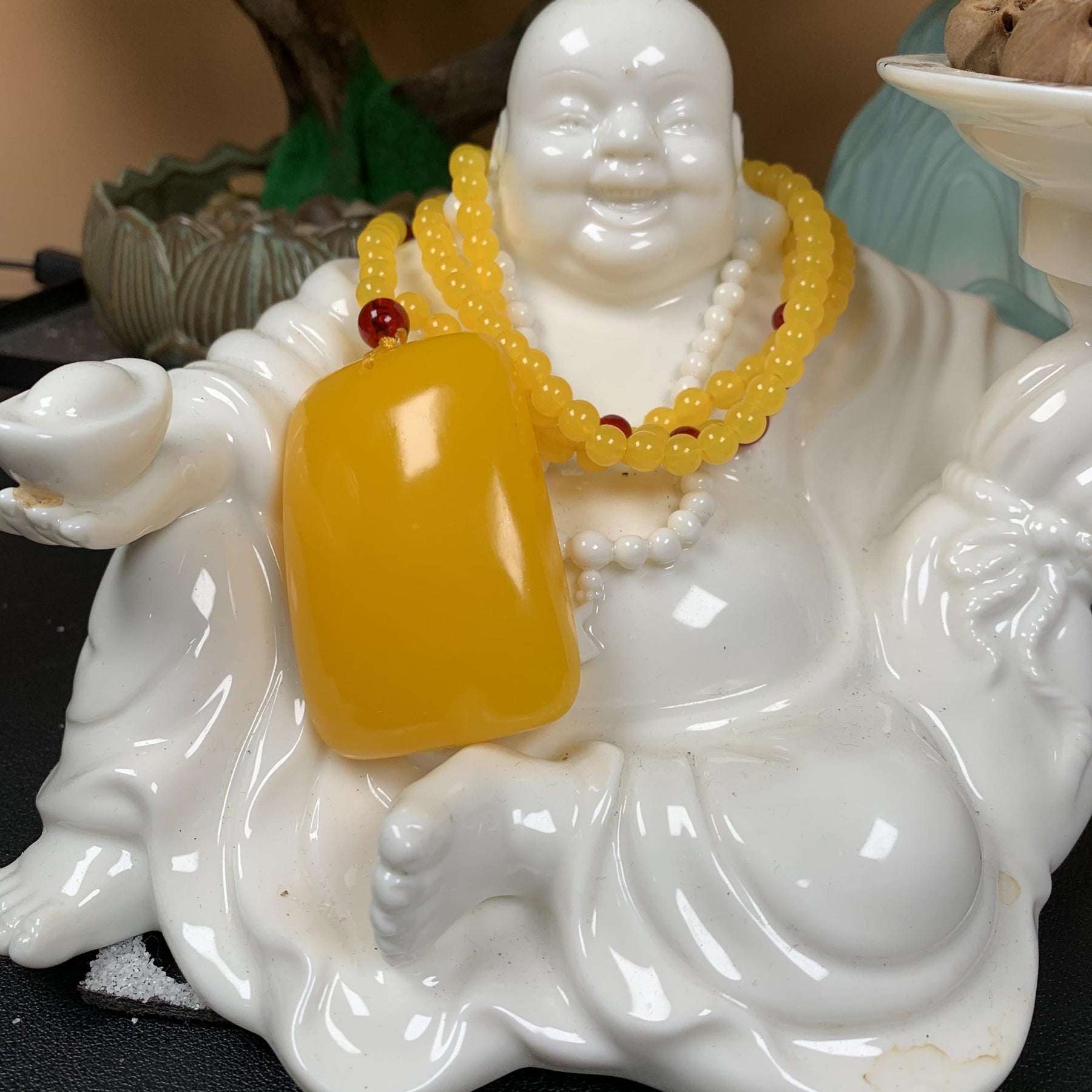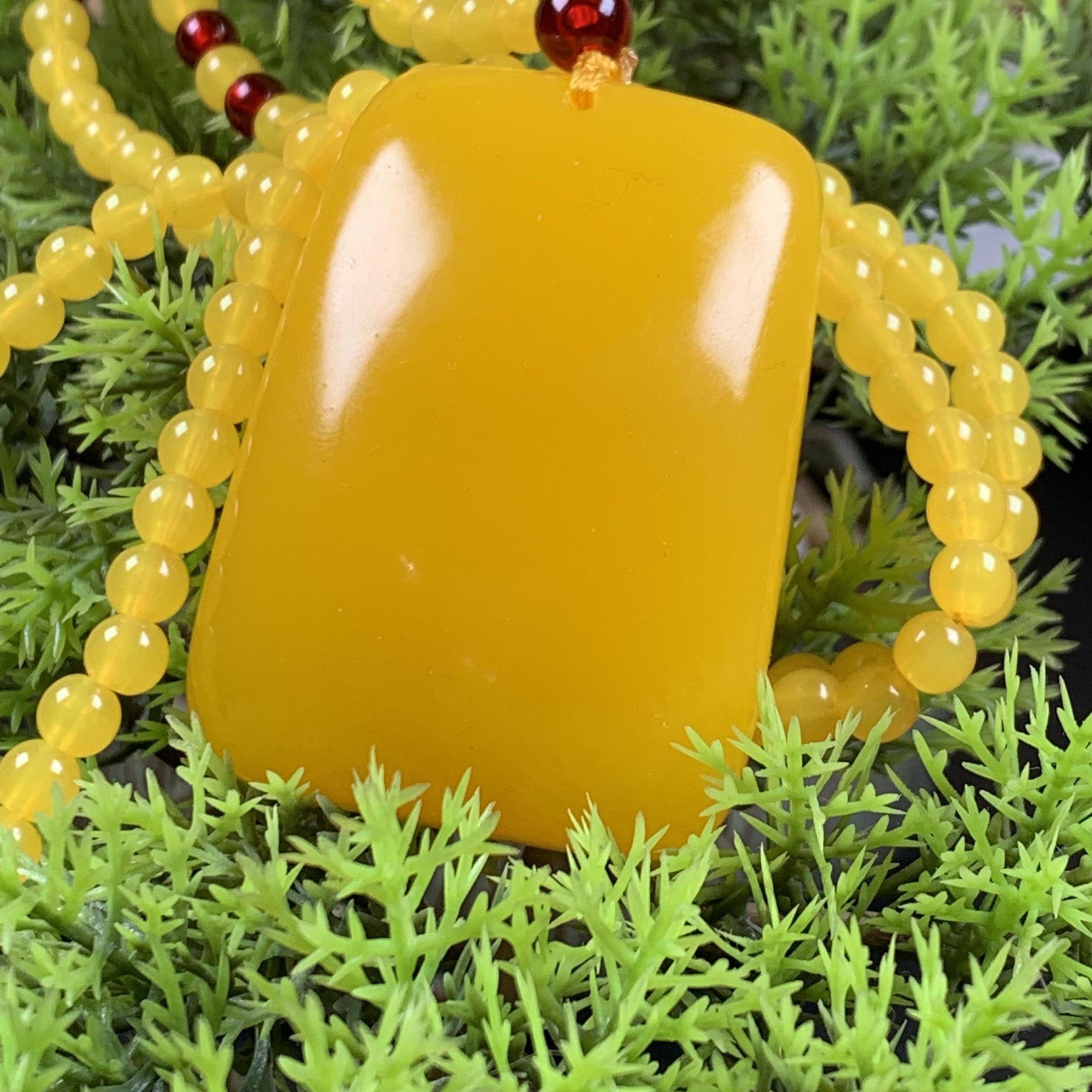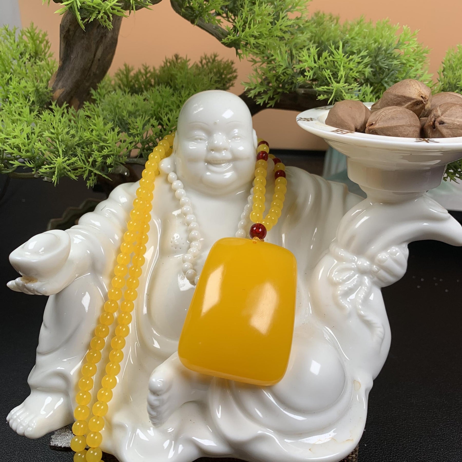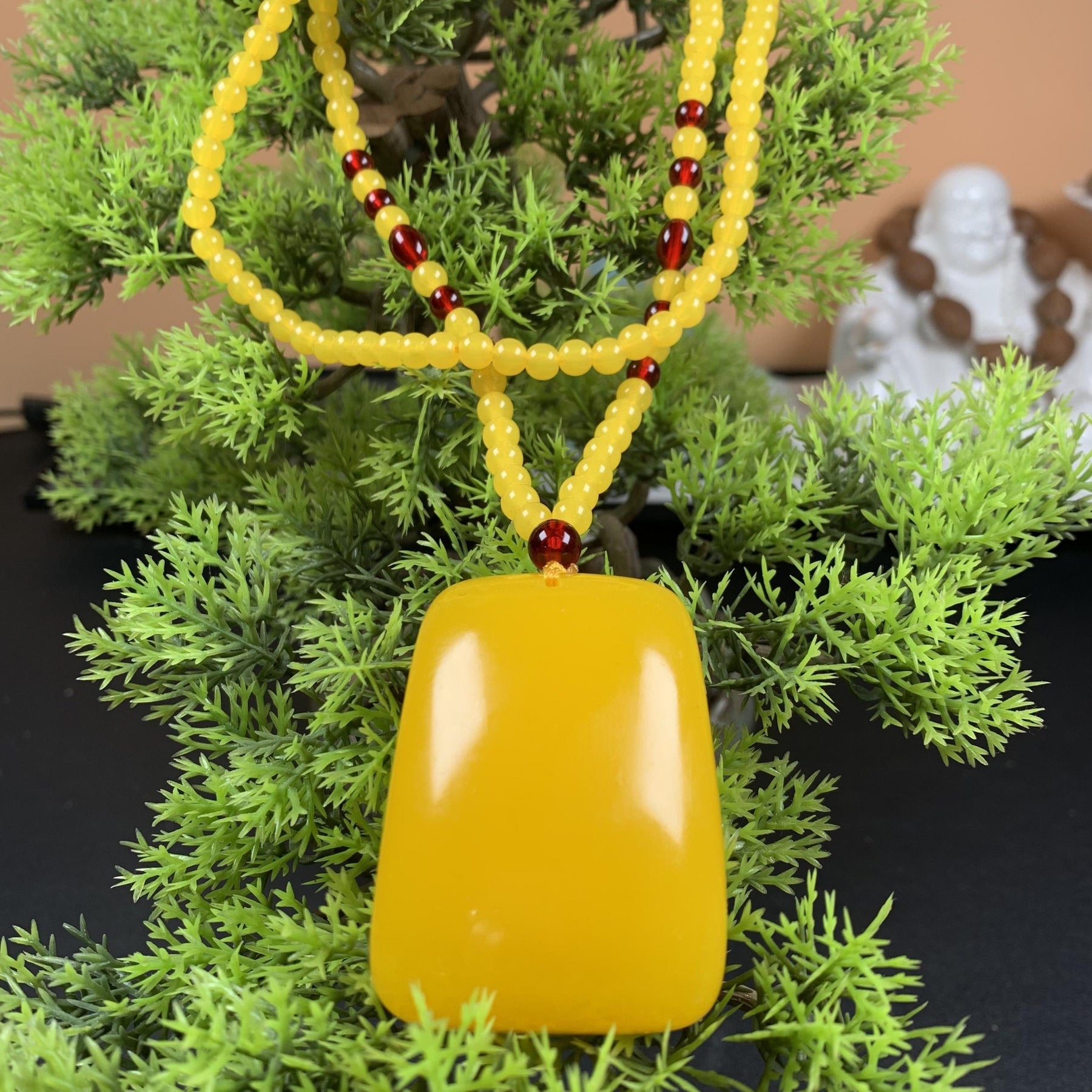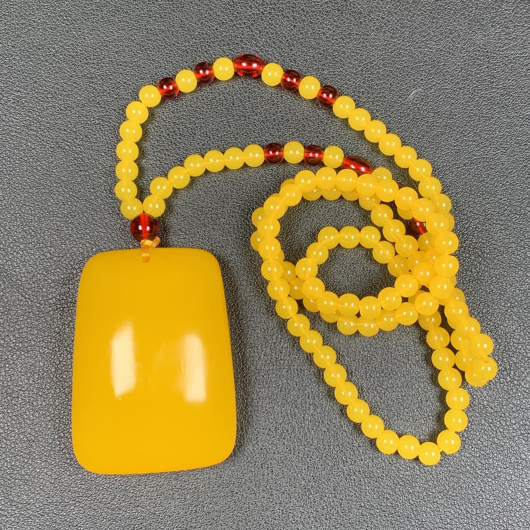 This stylish pendant necklace features an amber pendant on a sweater chain, suitable for both men and women.