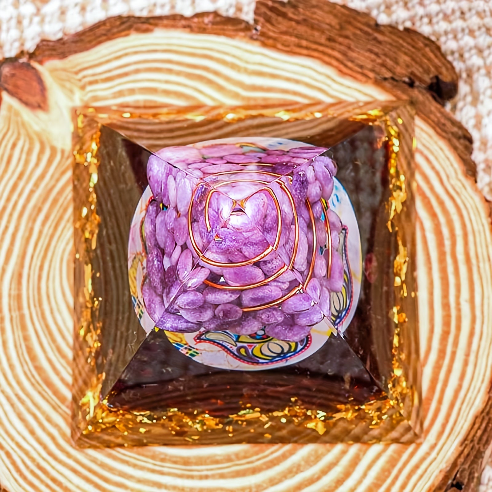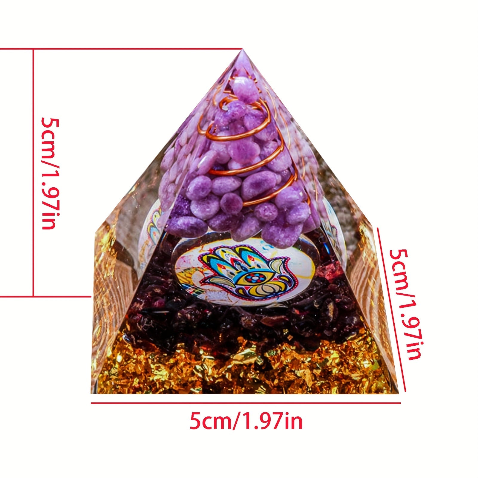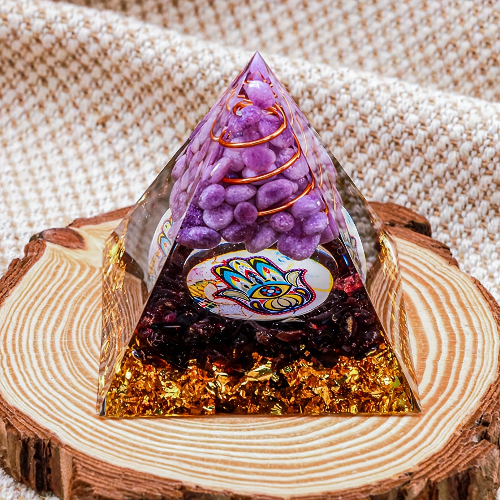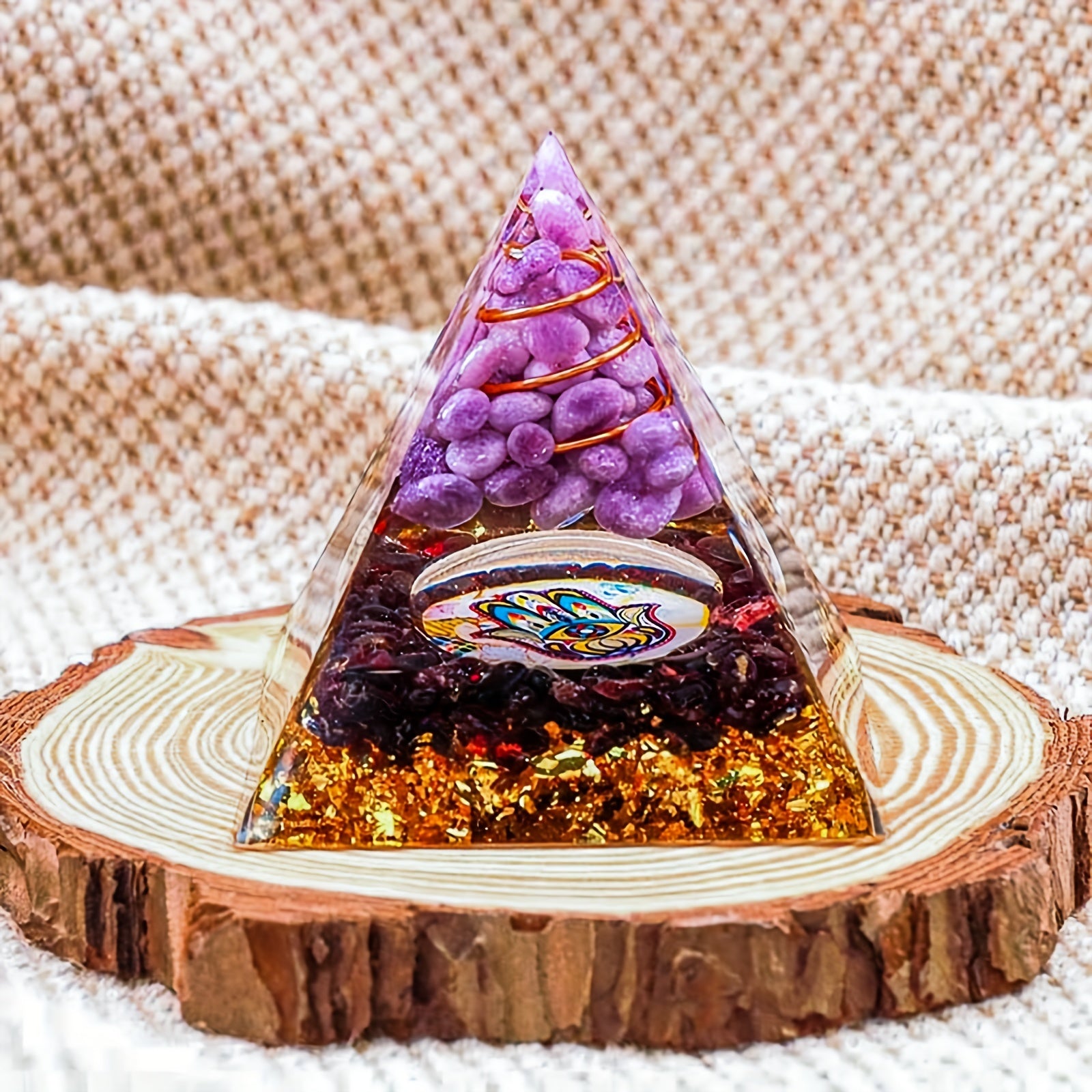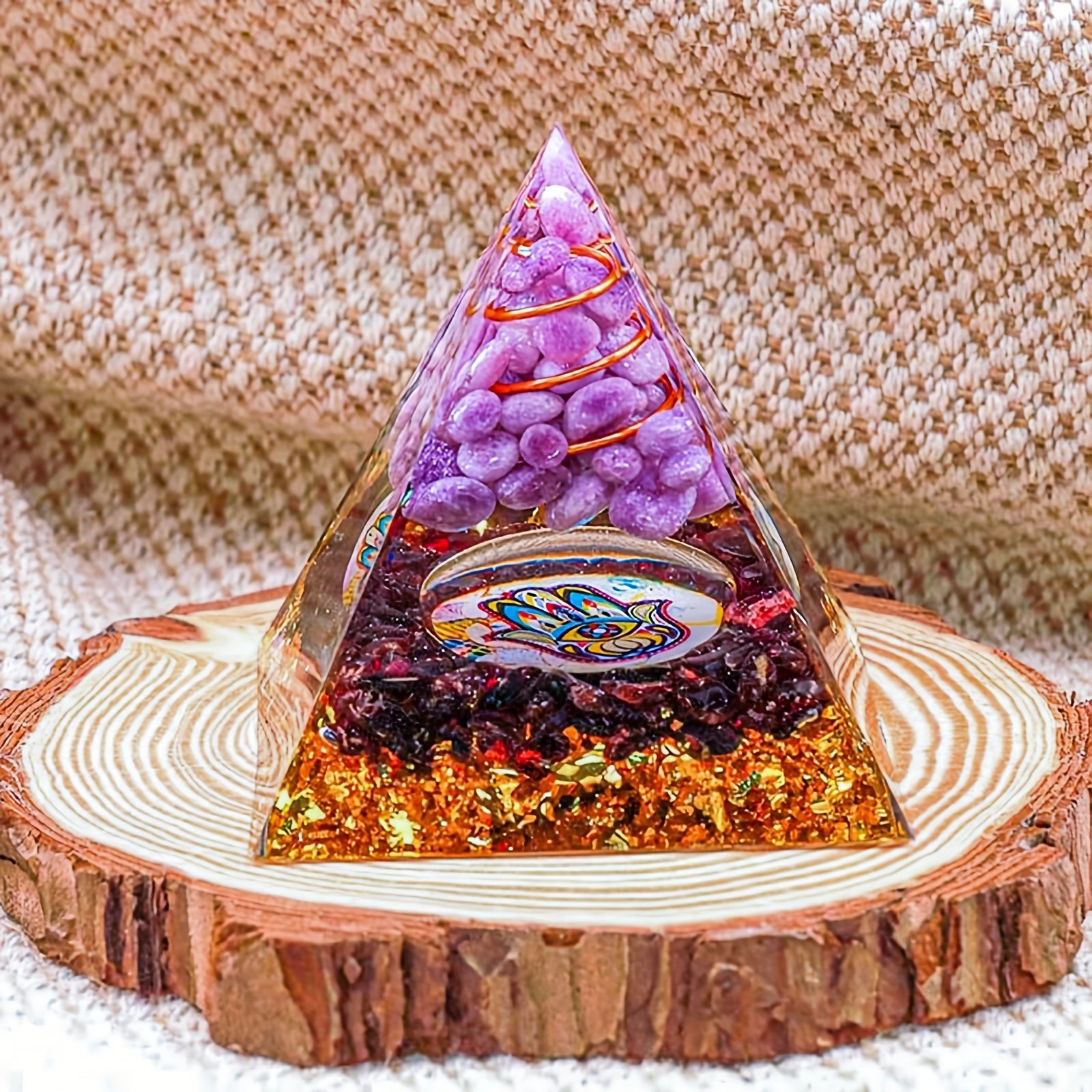Enhance your spiritual energy with this orgone pyramid featuring amethyst and garnet. Experience protection and healing benefits.