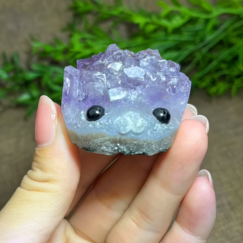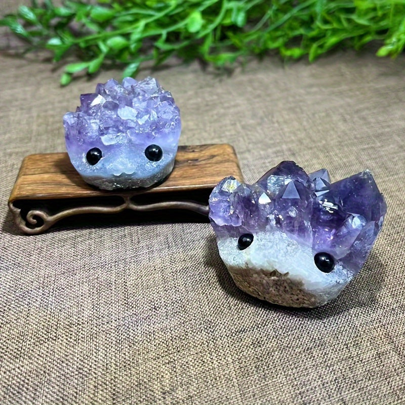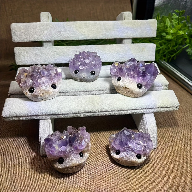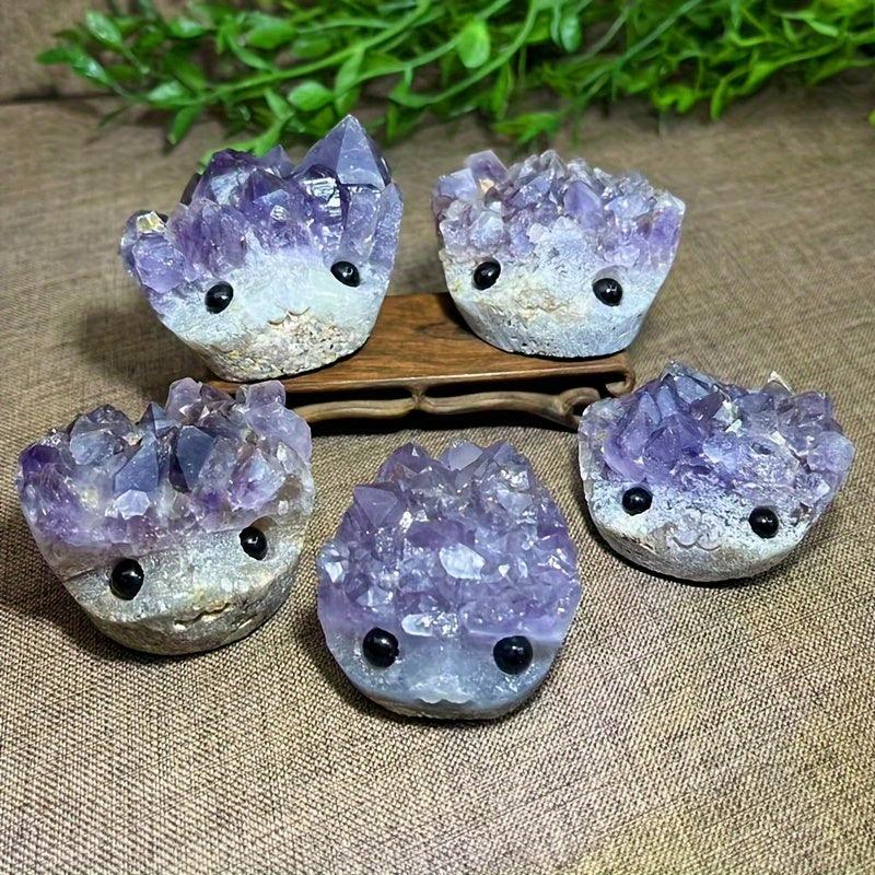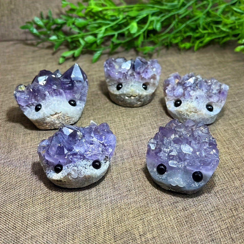 Enhance your yoga and meditation practice with this beautiful amethyst hedgehog quartz crystal chakra stone. Perfect gift for Halloween and Christmas rock crystal decor.