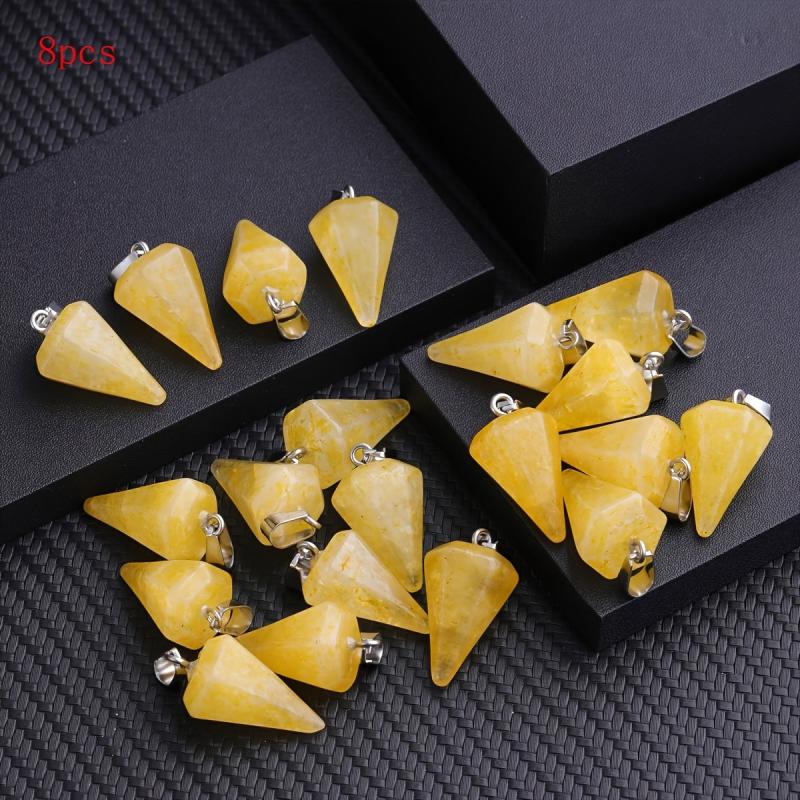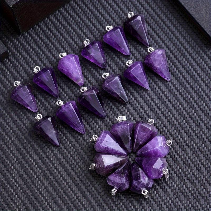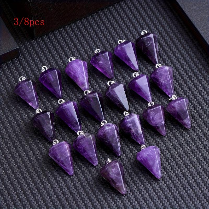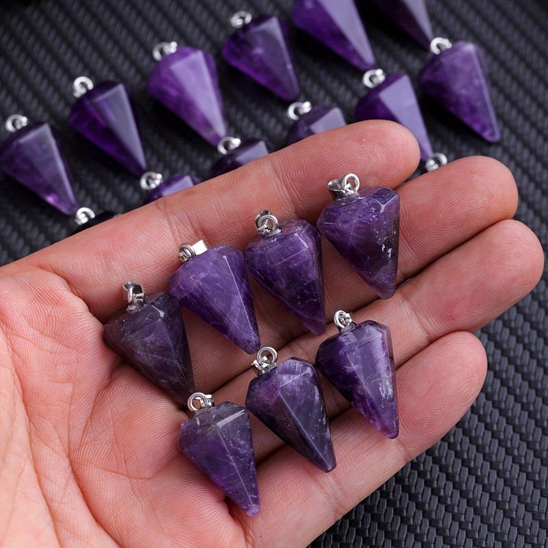 Get 8pcs of bulk natural stone amethyst tapered hexagonal pillar pendants to create unique witchcraft-inspired crystal jewelry. Suitable for men and women.