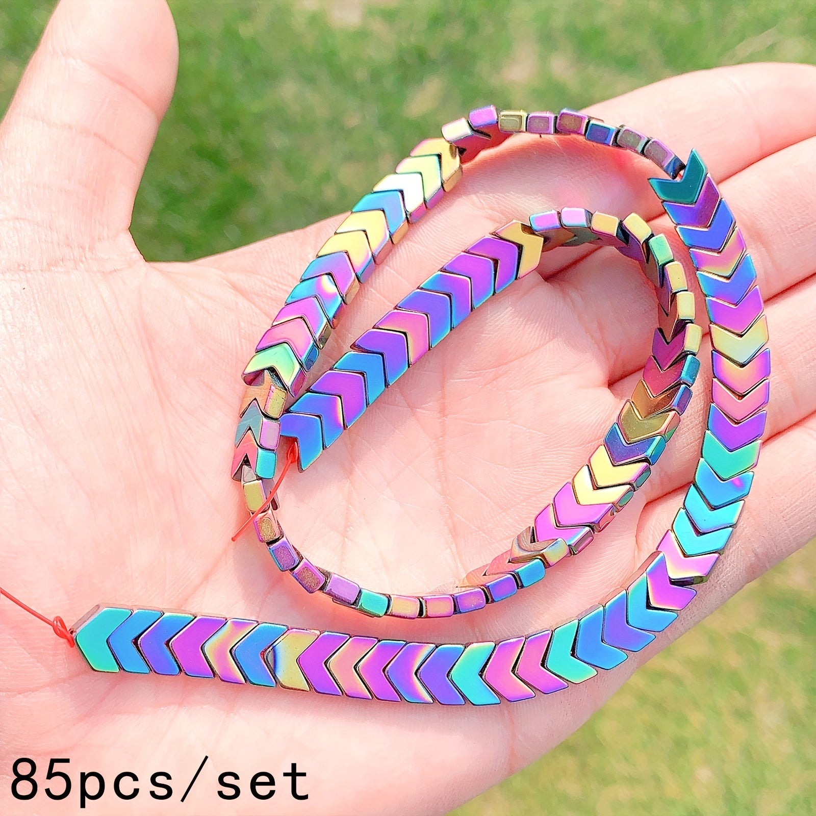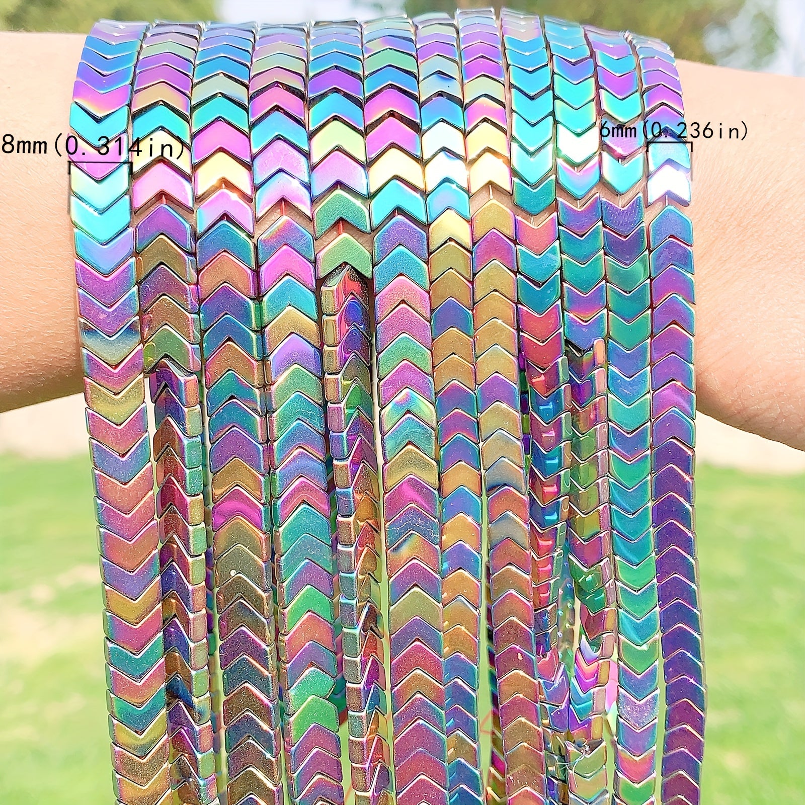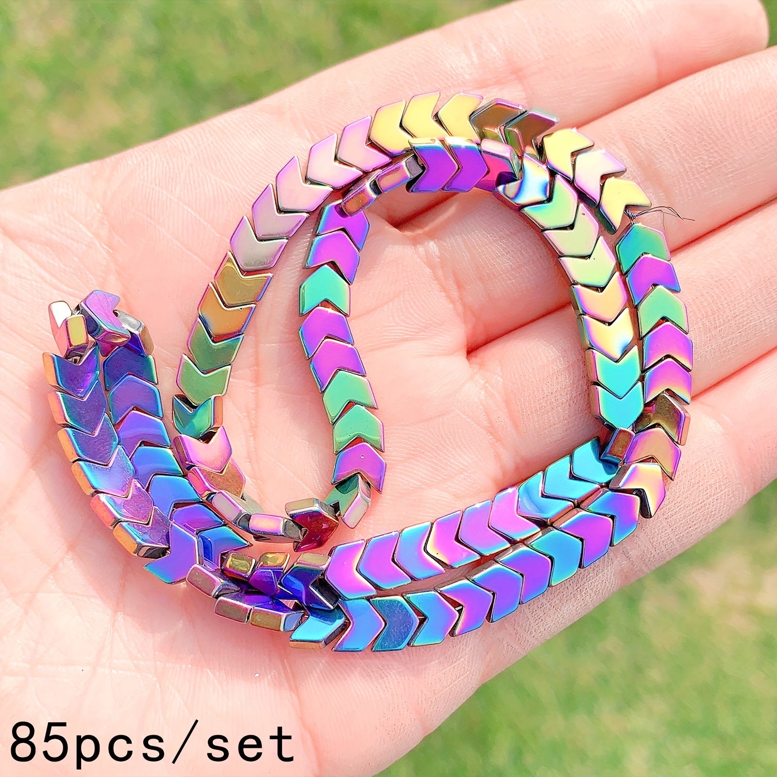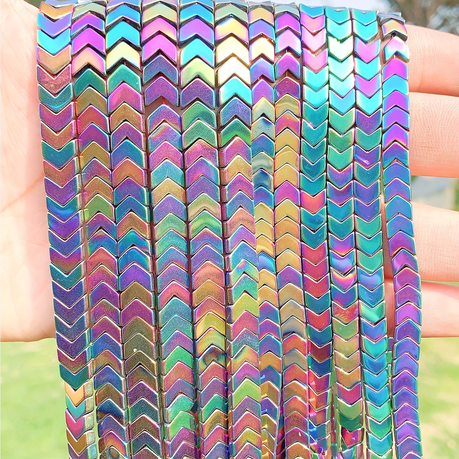 Enhance your jewelry making with this set of arrow-shaped natural rainbow hematite loose beads. Perfect for bracelets and accessories.