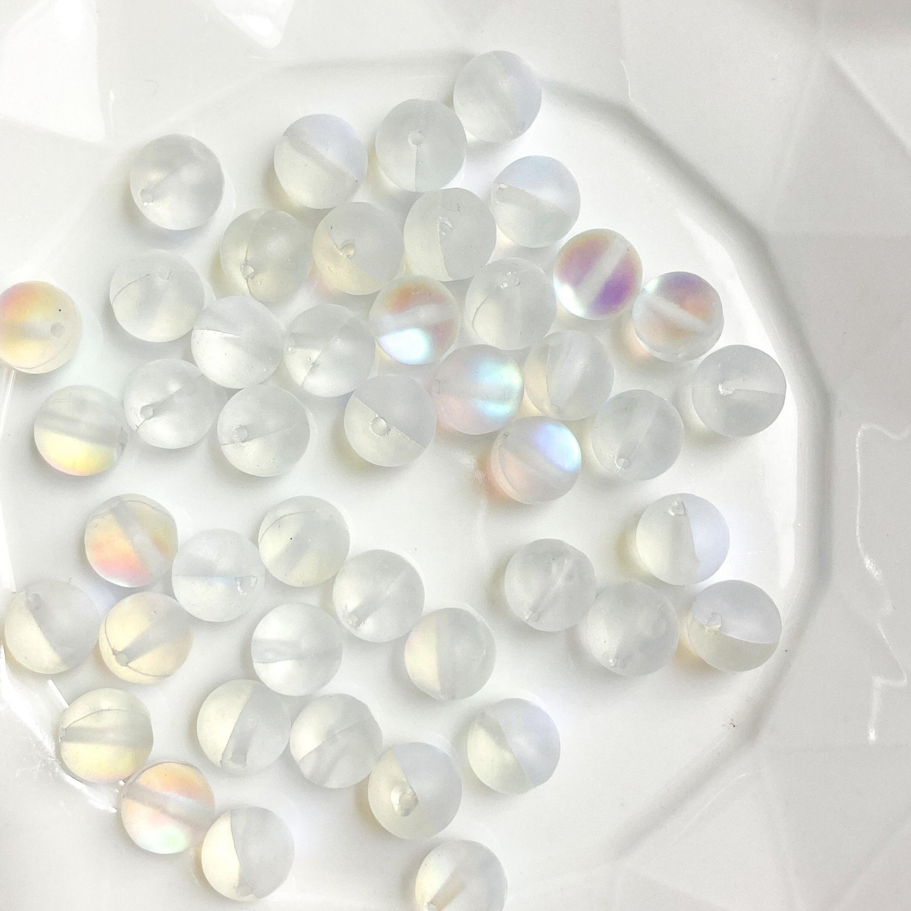 Add a touch of magic to your jewelry projects with these beautiful Aurora Crystal Glass Beads. The beads have a stunning flash mermaid round design with a frosted moonlight stone finish. Perfect for creating eye-catching pieces.