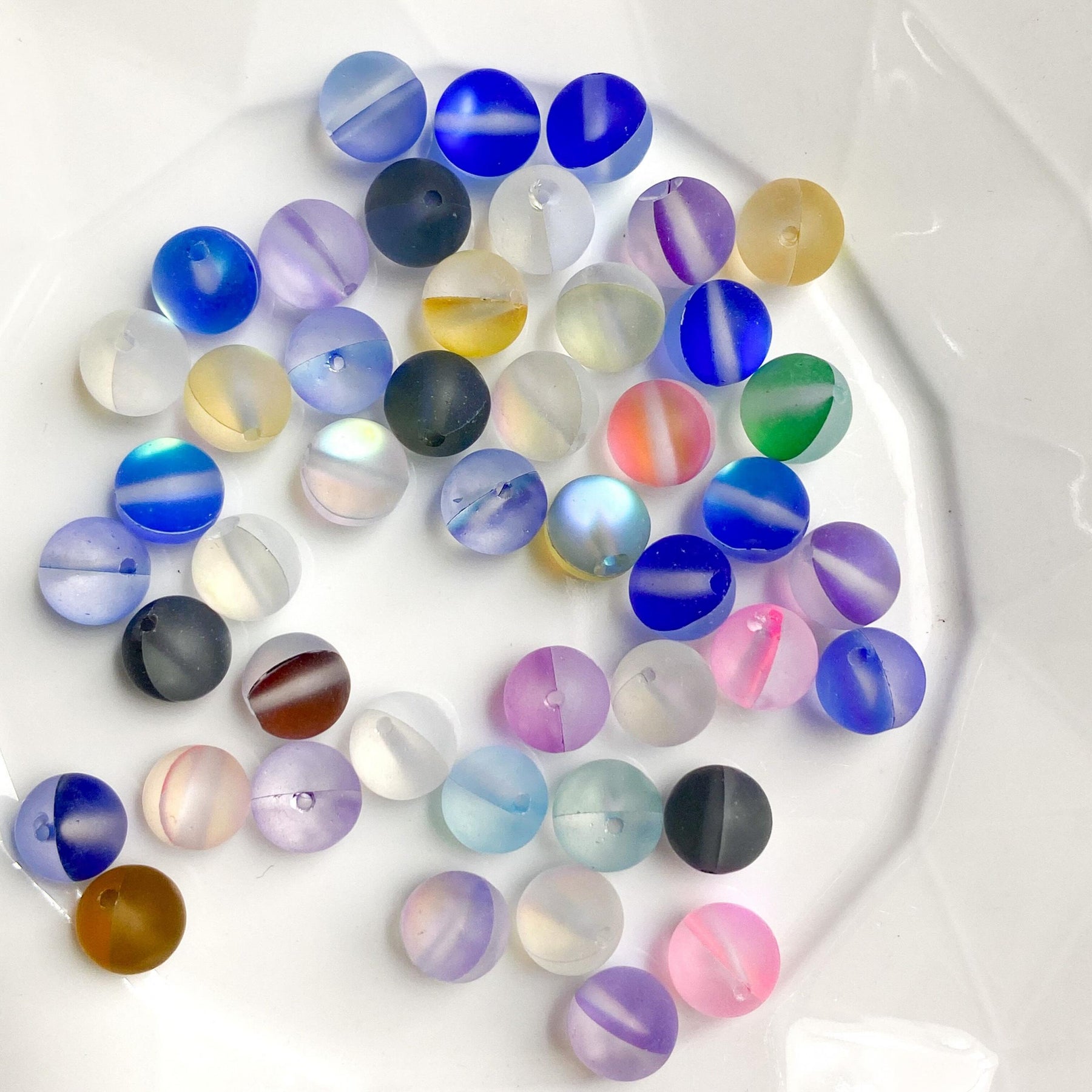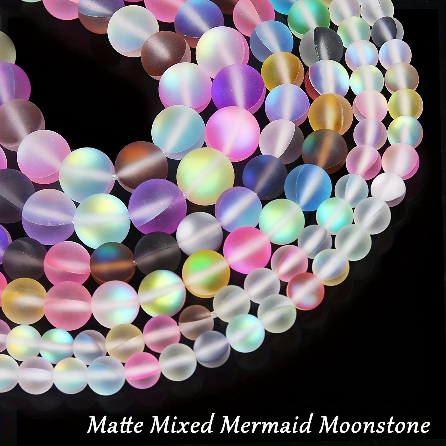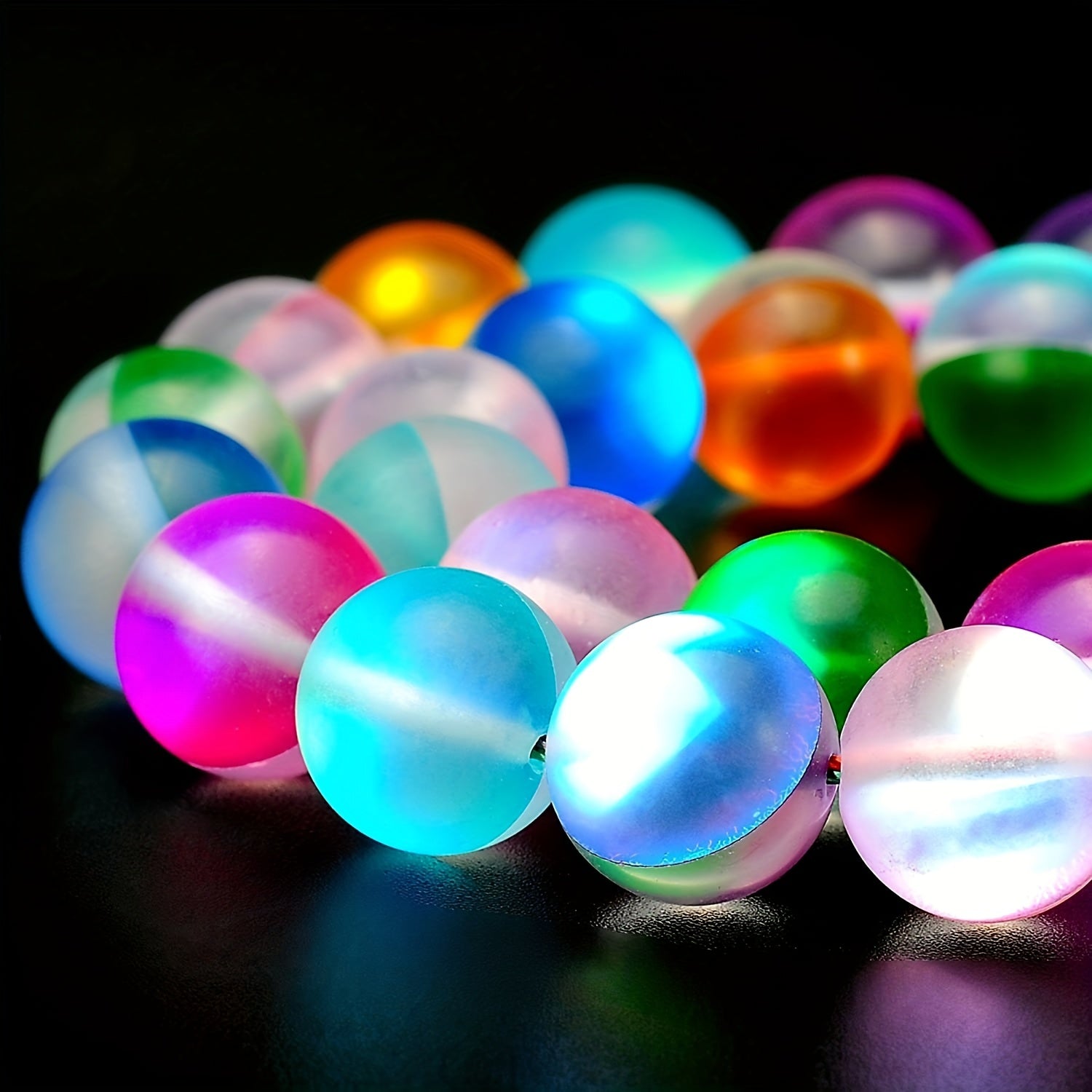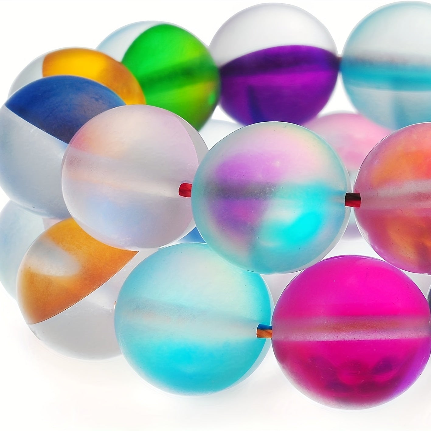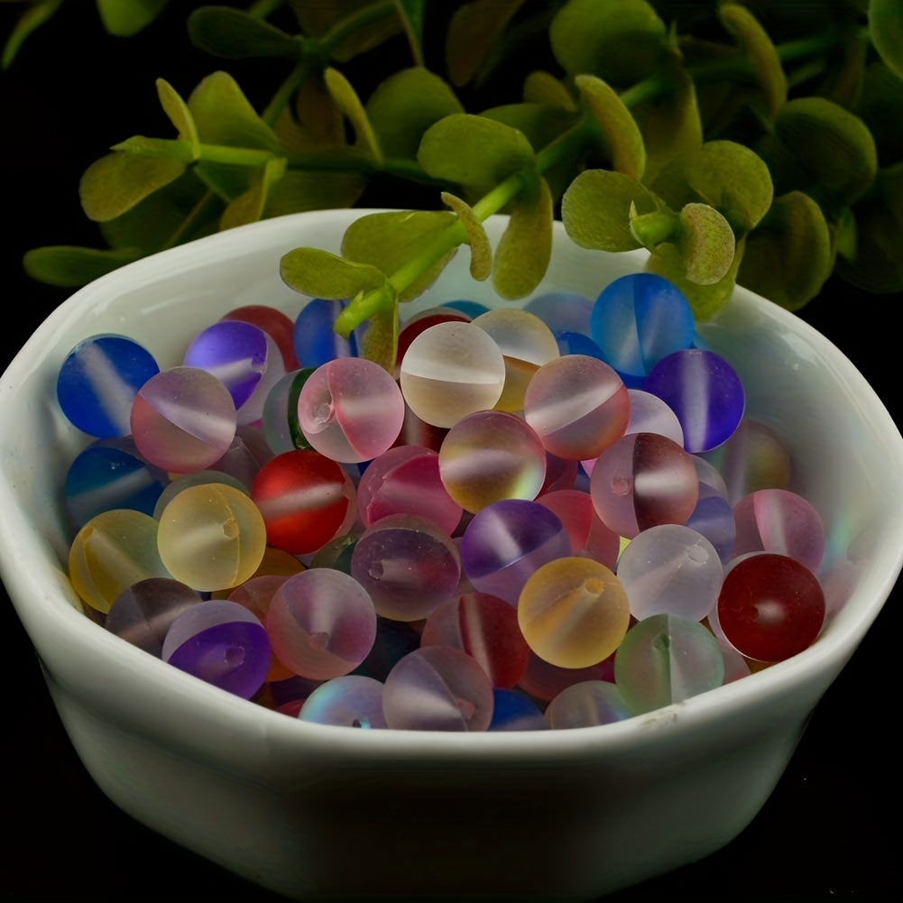 This set of crystal glass beads includes 60 pieces of 6mm beads and 45 pieces of 8mm beads. The beads have a beautiful aurora color and a frosted moonlight stone finish, perfect for jewelry making.