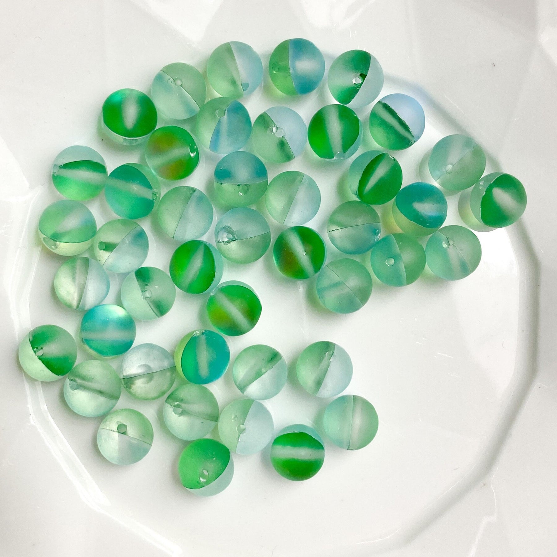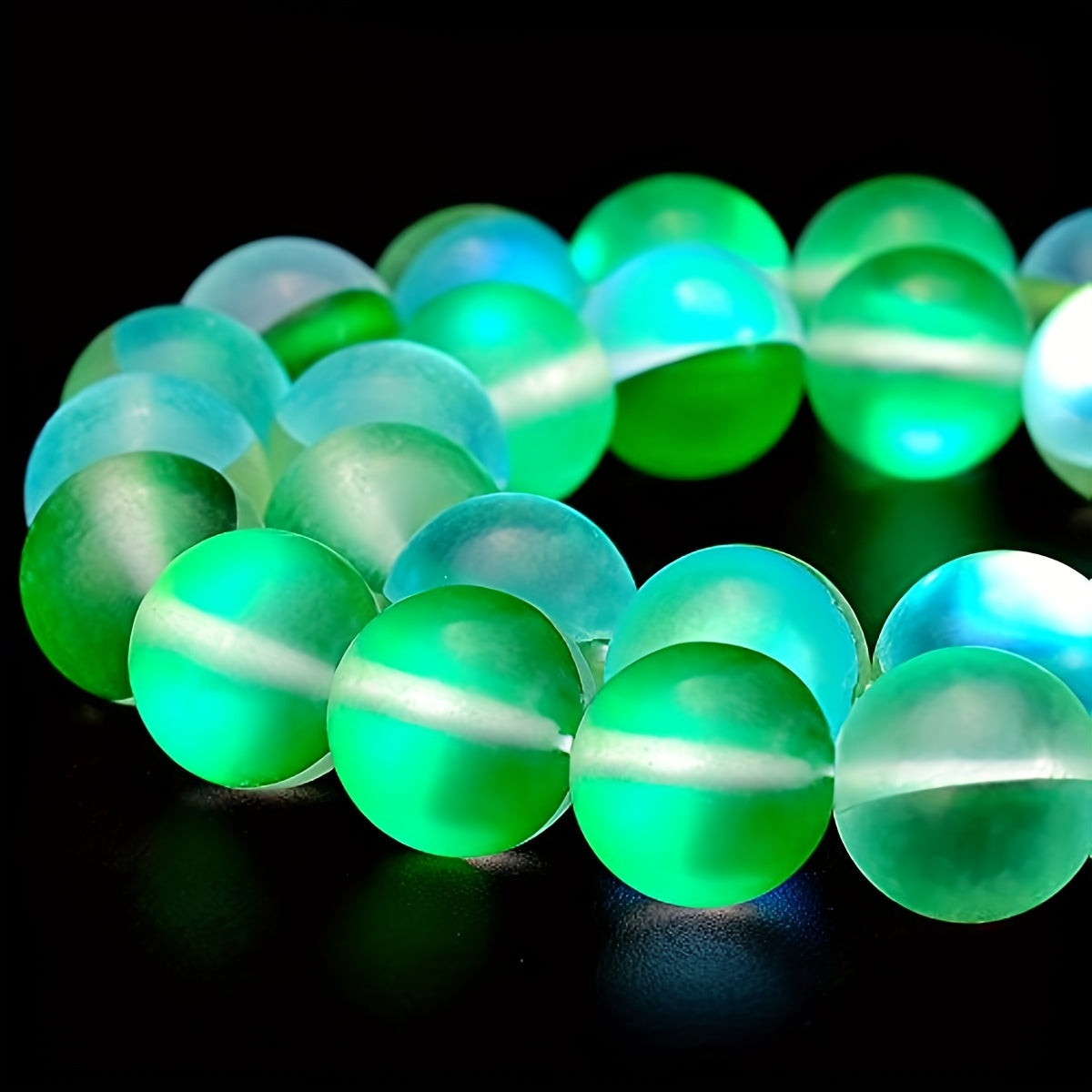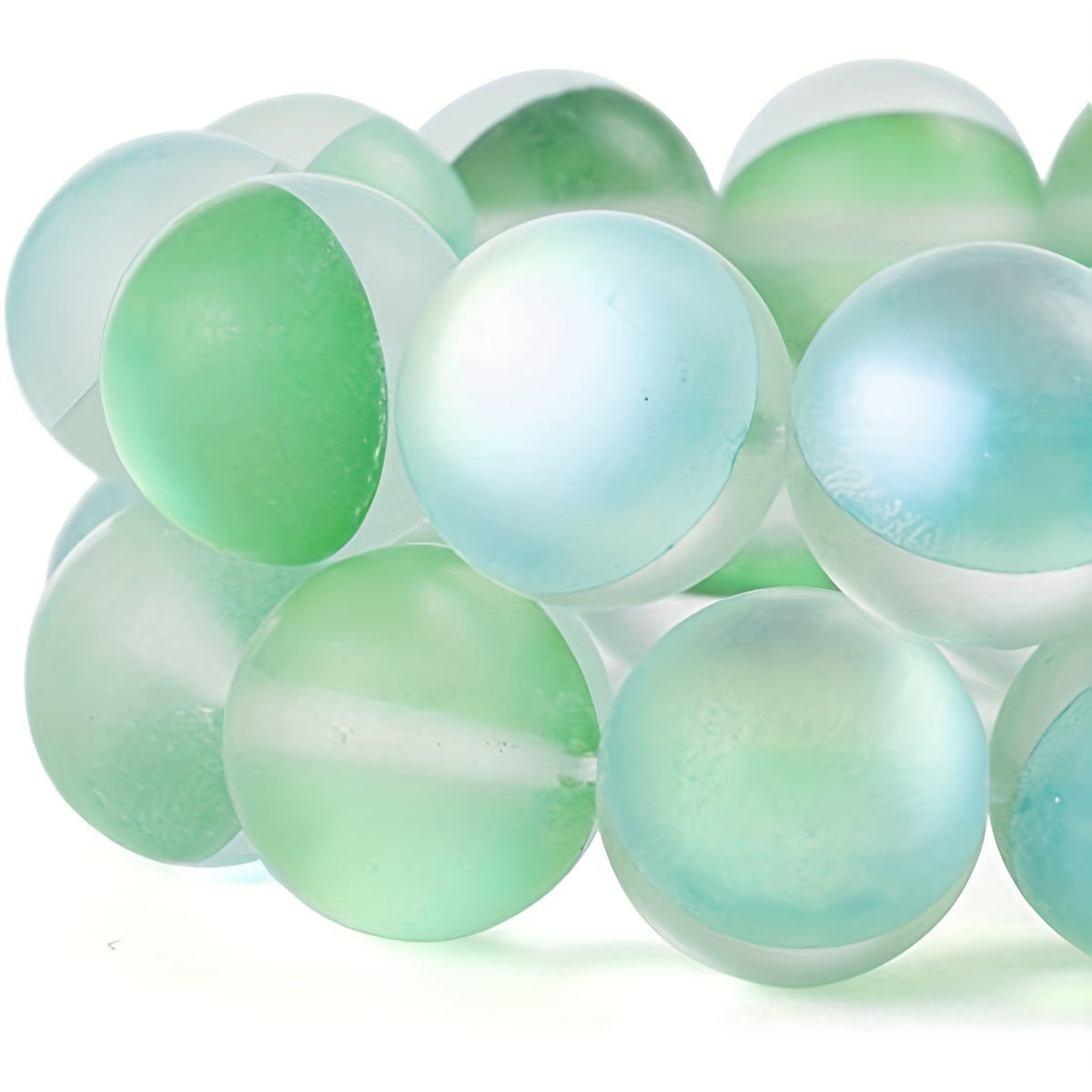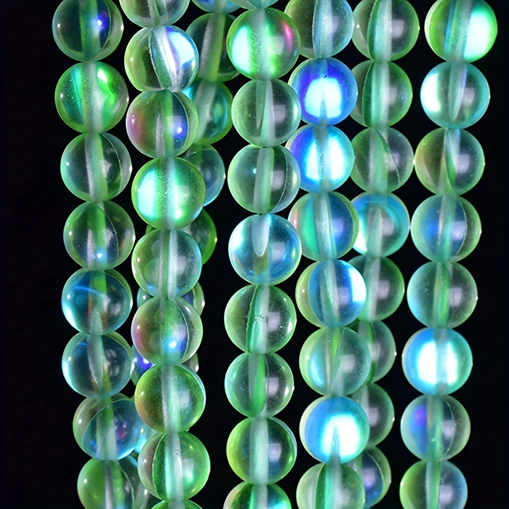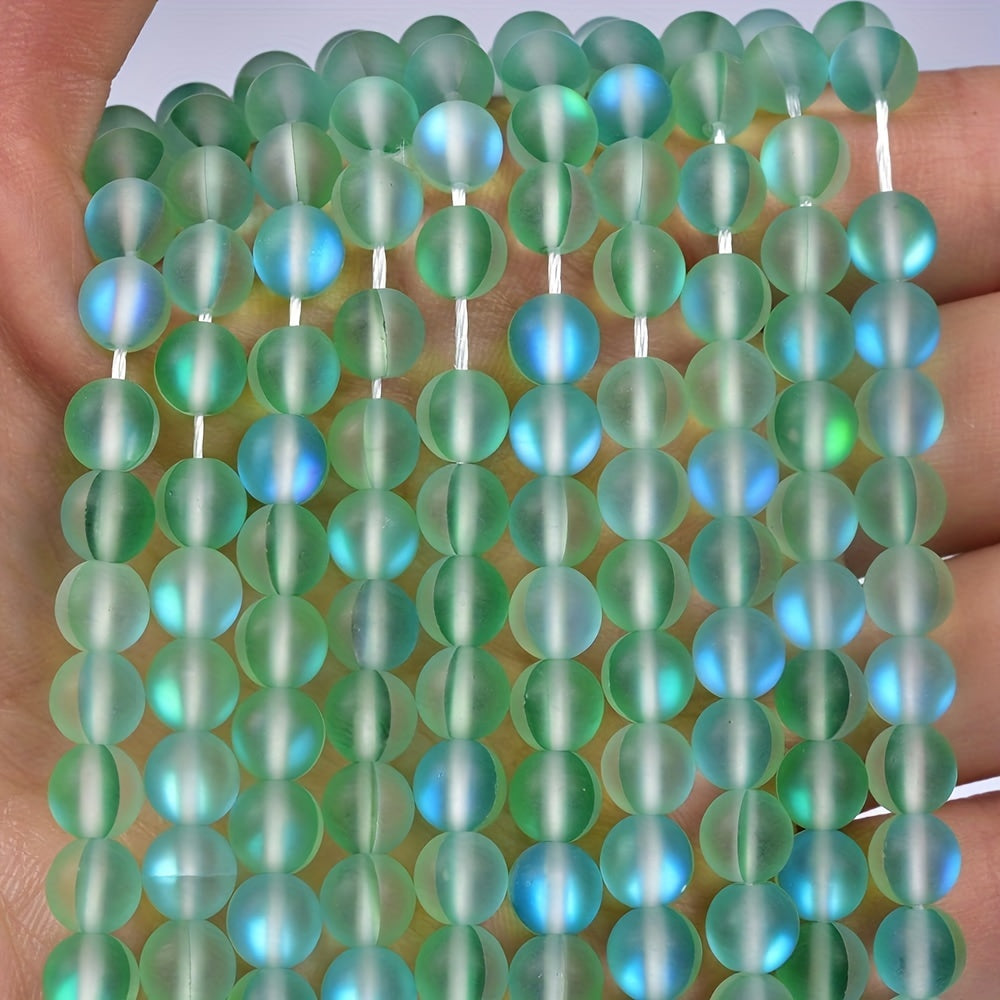 Enhance your jewelry projects with these exquisite Aurora Green Crystal Glass Beads, perfect for creating dazzling pieces. The set includes 60 pieces of 6mm beads and 45 pieces of 8mm beads, featuring flash mermaid hues and frosted moonlight finish.