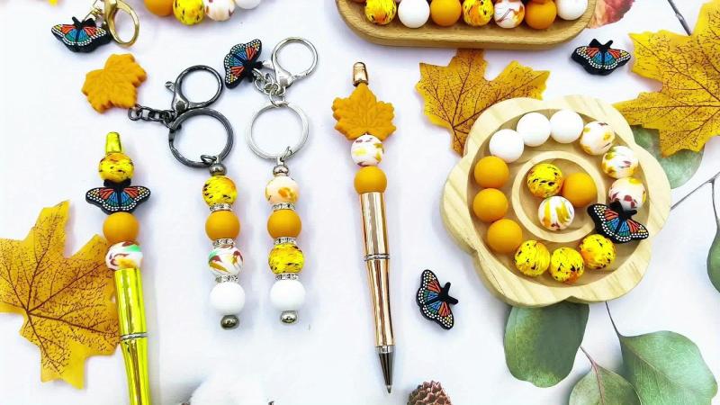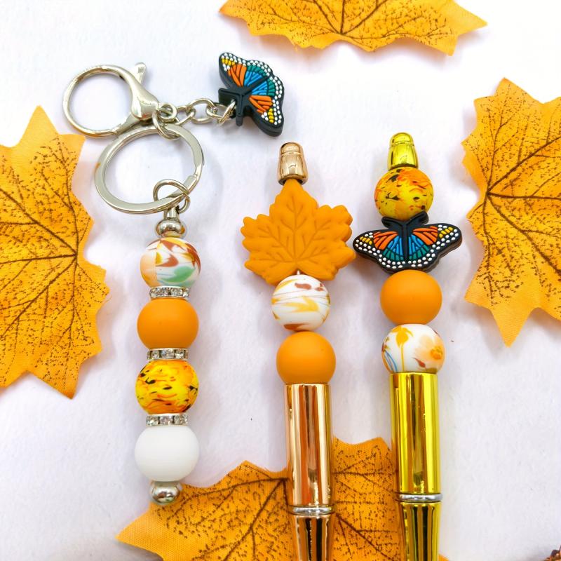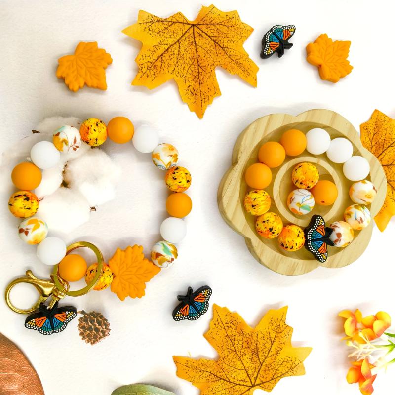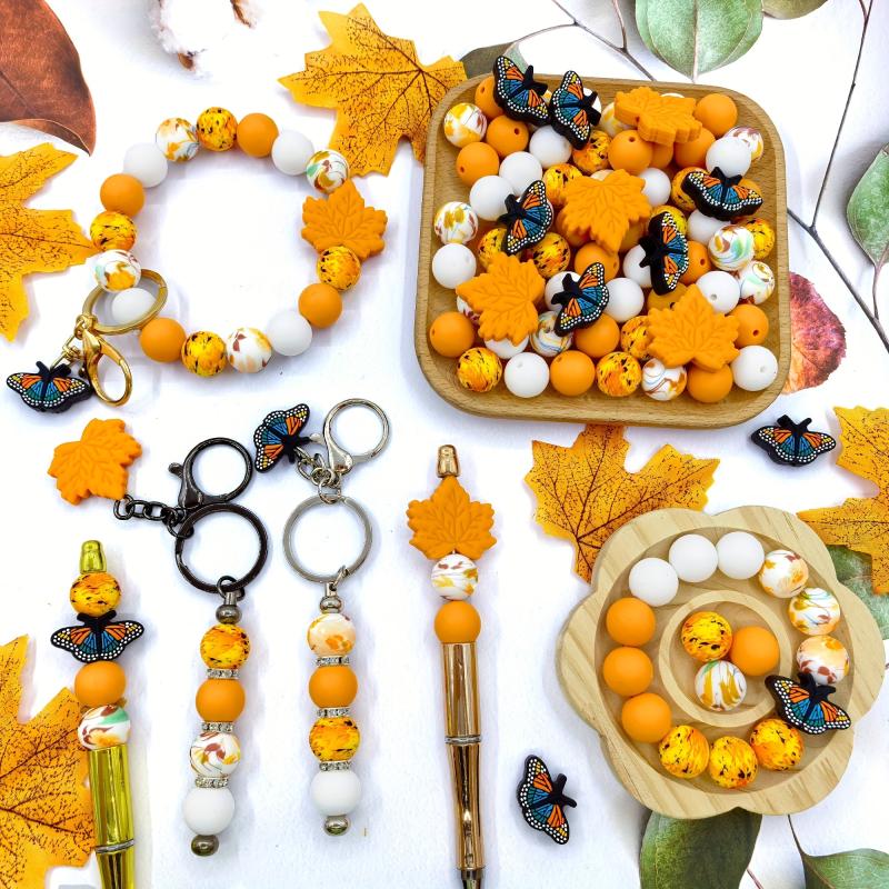 Create beautiful jewelry with this autumn-themed silicone bead set. Perfect for earrings, necklaces, bag chains, and phone charms.